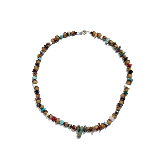 現地のネイティブアメリカンが家族代々で手作りしているインディアンジュエリー。 こちらはターコイズなどの様々な天然石とシルバー、天然のシードがミックスされた一本。 size : 43cm(留め具も含む) ◾️お客様ご都合での返品は一切受け付けていません。ご了承下さい。