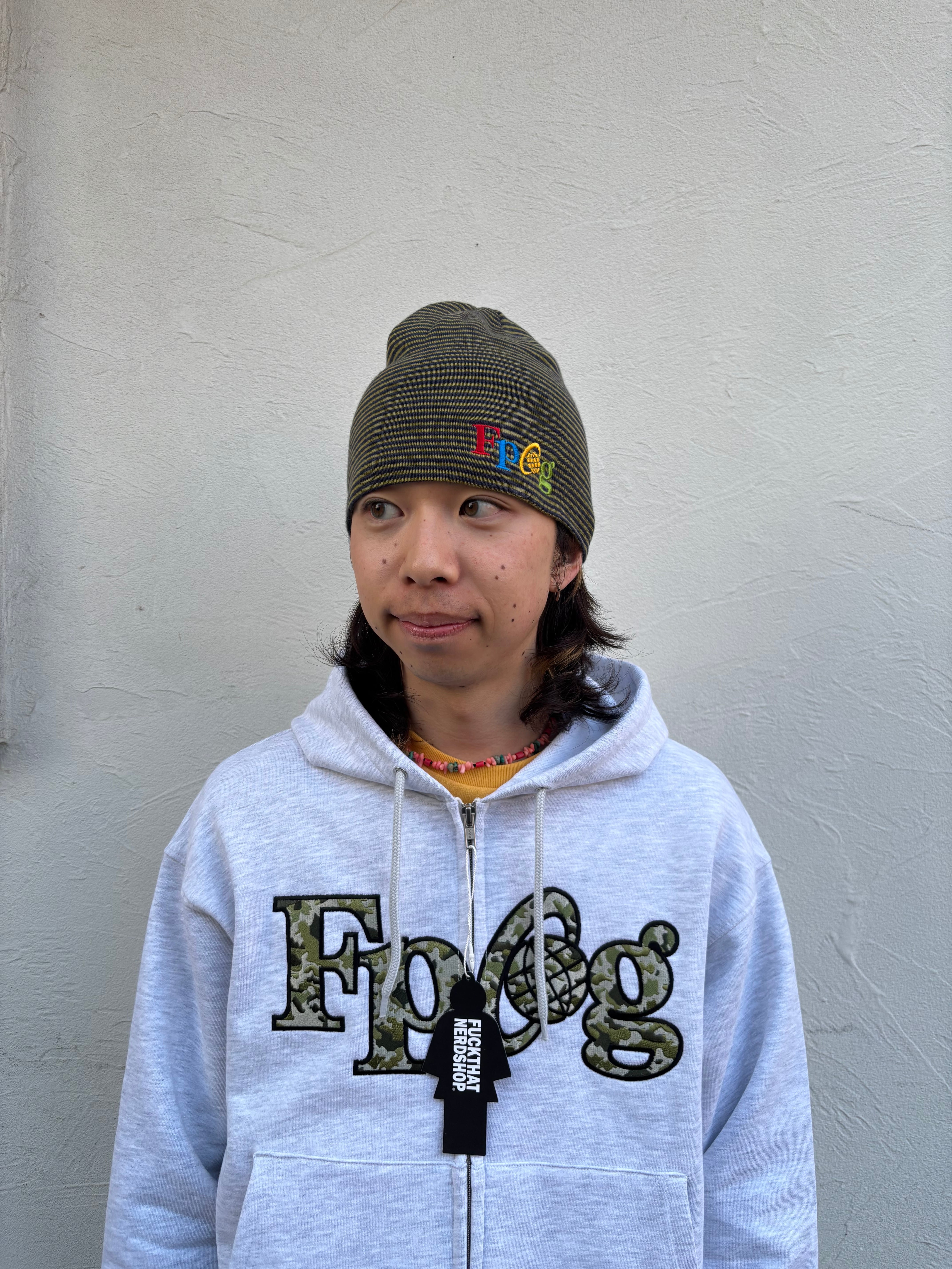 薄手で柔らかいボーダービーニーに、FPOG刺繍。