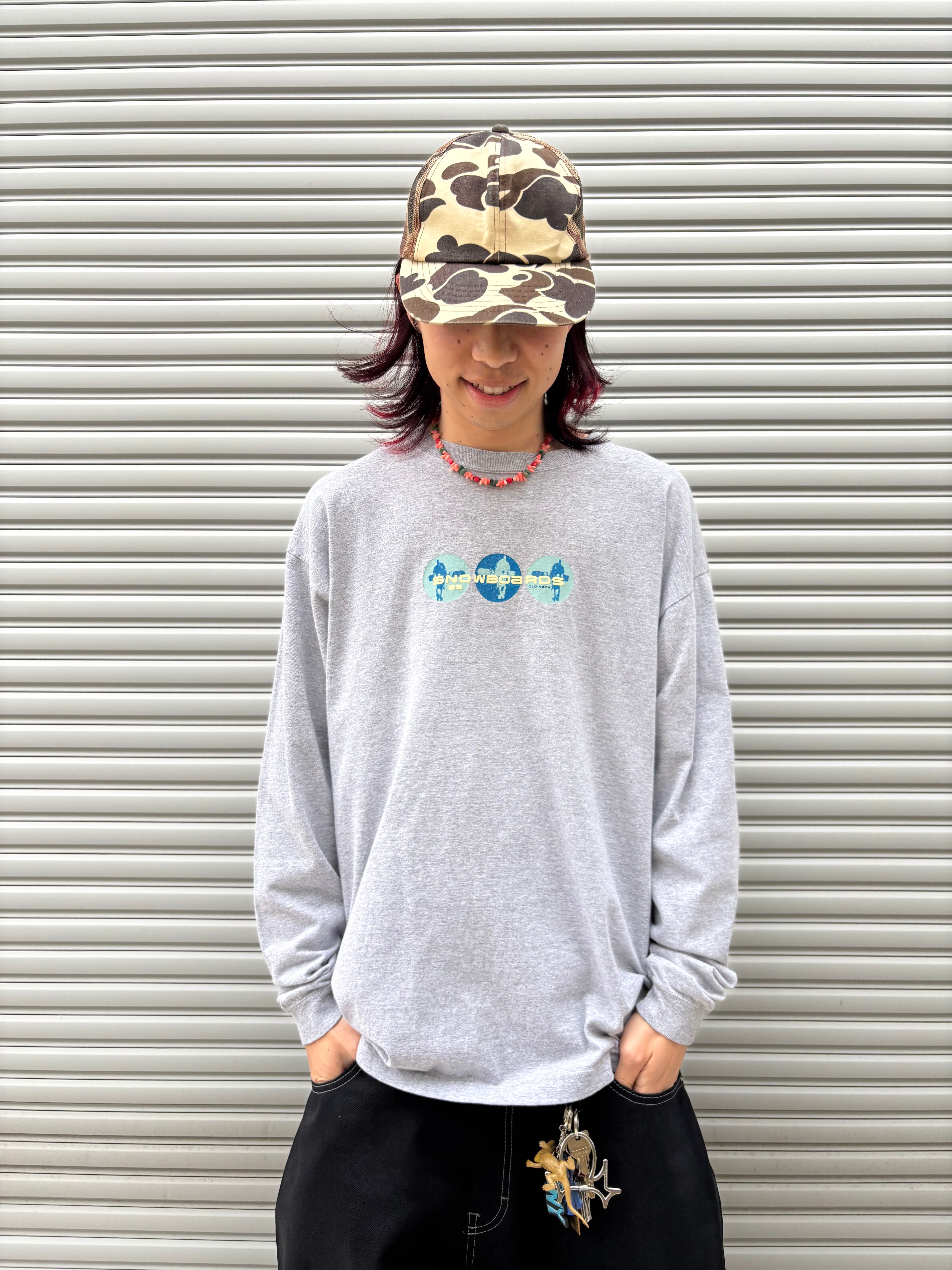 OLDNAVYのスノボラインのロンTとかいう幻レベルの1枚。しかもアメリカ製でプリントも超絶イケてます。ボディも古着っぽい良い色味のグレーでサイズ感も最高です。結構ニッチな1枚ですが僕らはそういう服ばっか着るので是非みなさんにも味わってもらいたいです。