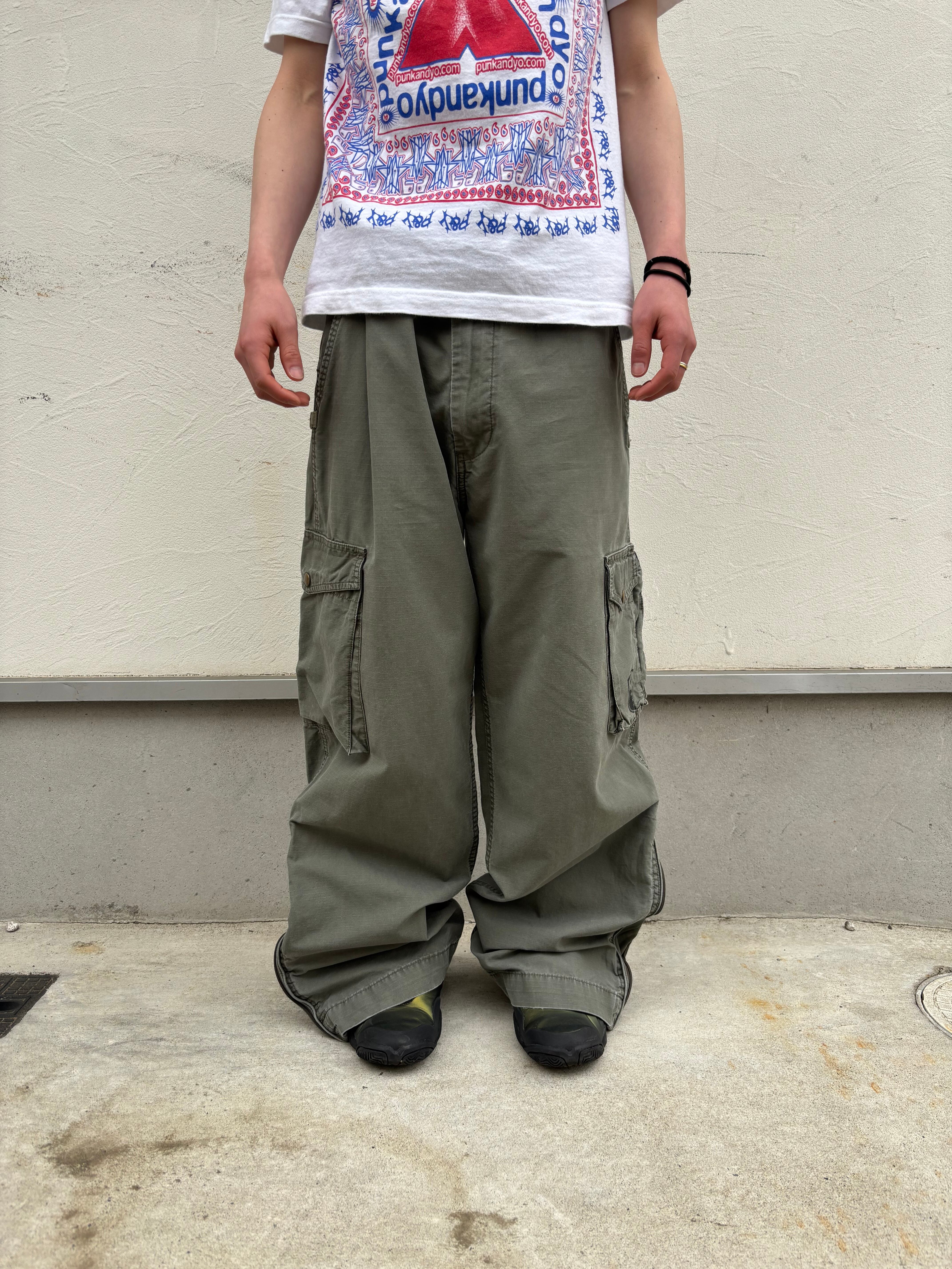 リーバイスの珍ラインWORKWEAR、ワークウェアにしてはオシャレすぎるデザインとギミック感がまさに気分です。カーキのカーゴって結局すごい使いたいタイミングがあるので一本持っておくとコーデの幅が広がります。