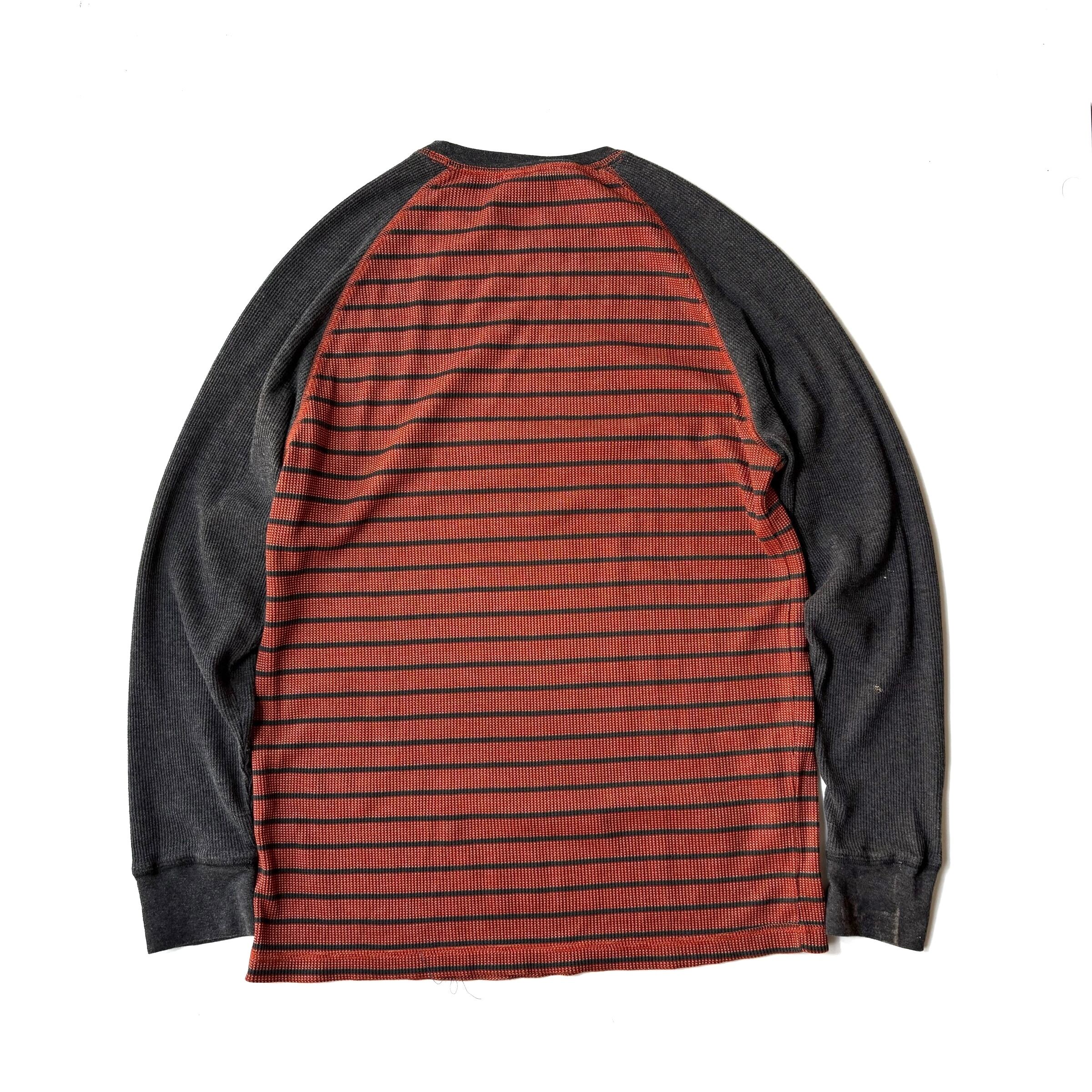 Teeに重ねてきれば良い色味のグレーのサーマル、ジップフーディーからチラ見せしたらボーダーのサーマル、一枚で何度でも美味しい使い勝手しかないサーマルです。サイズ感も申し分なしです。