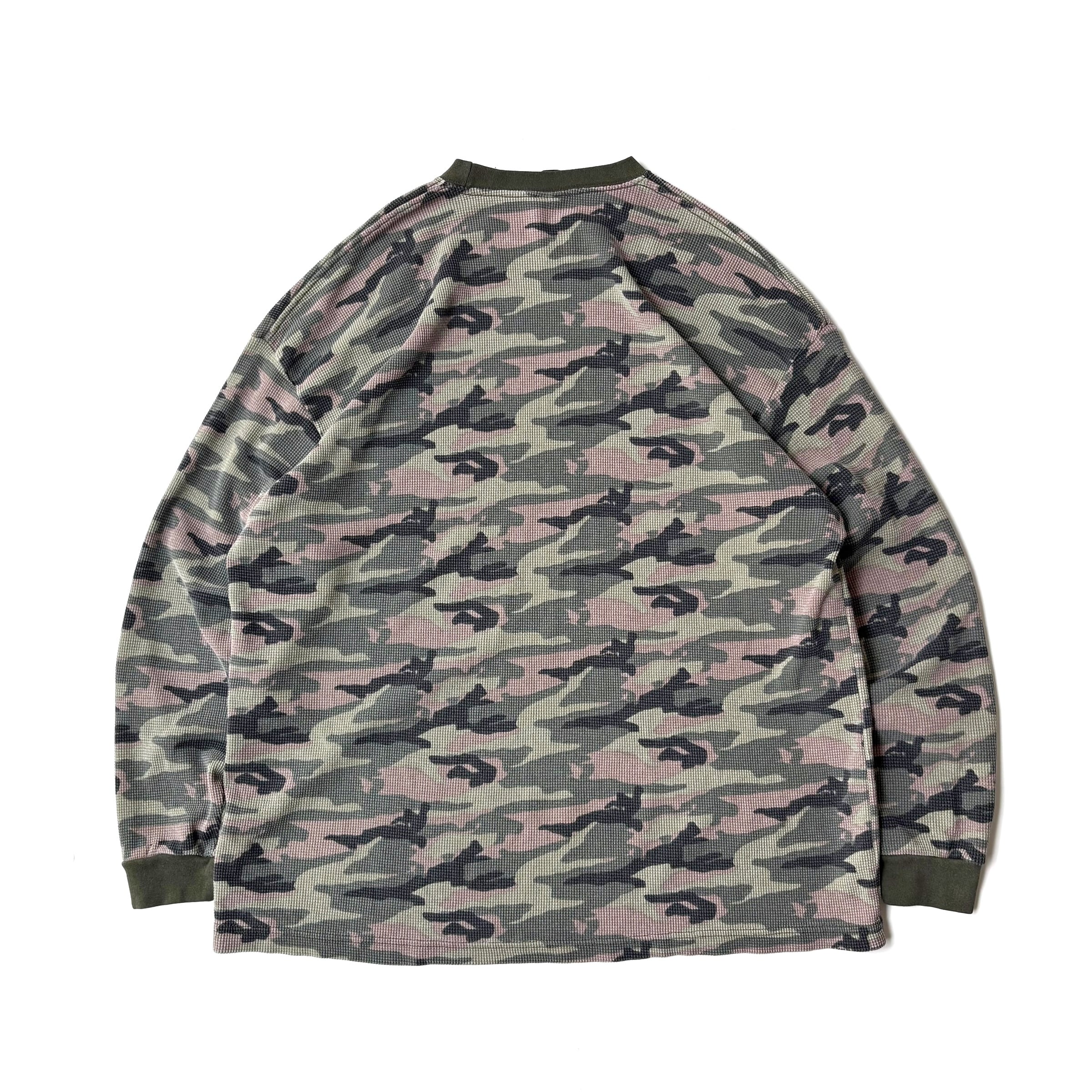 色味よし素材感よしサイズ感よしのカモサーマル。大きいサイズのトップスが気分な我々にはもってこいなサイズ感でTeeの下はもちろん、一枚でもしっかりかっこいいサーマルです。