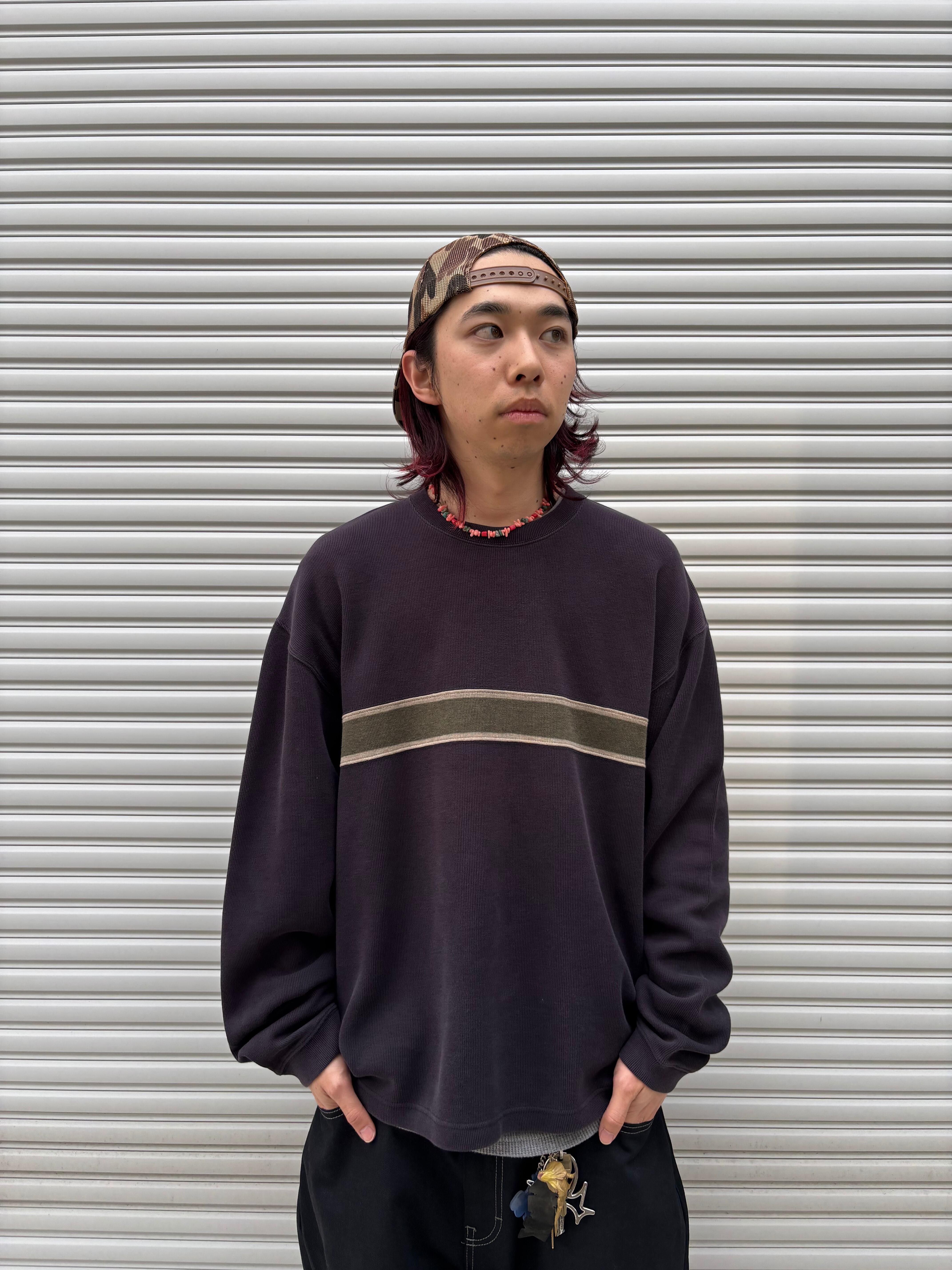 アバクロらしい落ち着いた色味でまとめられたボーダーニットスウェット。ピッチの太さも絶妙で小物やパンツで色を拾いやすくなってます。生地感も薄すぎず厚すぎずでこの時期にもってこいの一枚です。