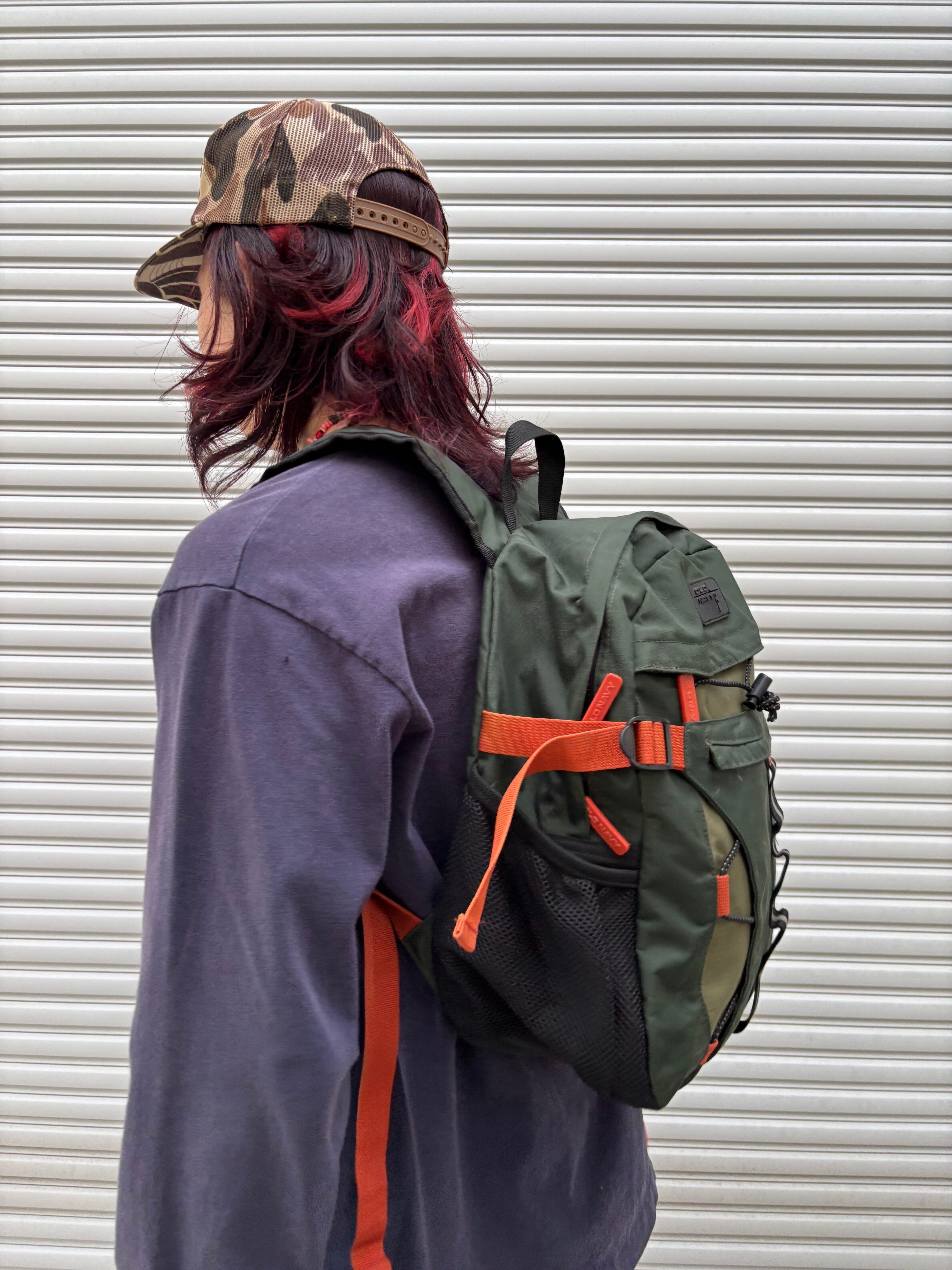 OLDNAVYコレクターの我々でも初見だったこちらのバックパック。深いグリーン×オレンジという流石の色使い、リップストップナイロンでテック感もマシマシ、溢れんばかりのポケットで使いやすさも抜群、見た目以上に物も入る機能性とかっこよさを両方持ち合わせたありがたい逸品。