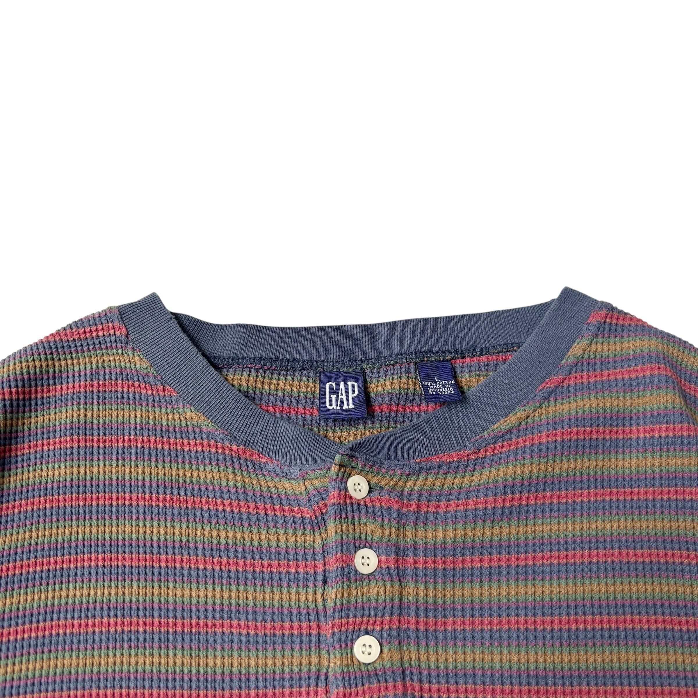 この年代のGAP特有の色使いで綺麗にまとまったボーダーが美しいサーマル。柔らかく伸縮性のあるコットン地でかつ超ボックスシルエット、着やすさ抜群の最高な一枚。