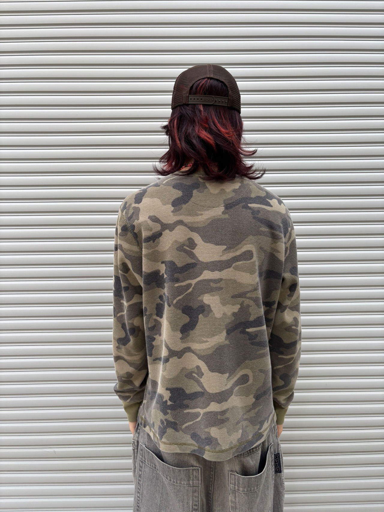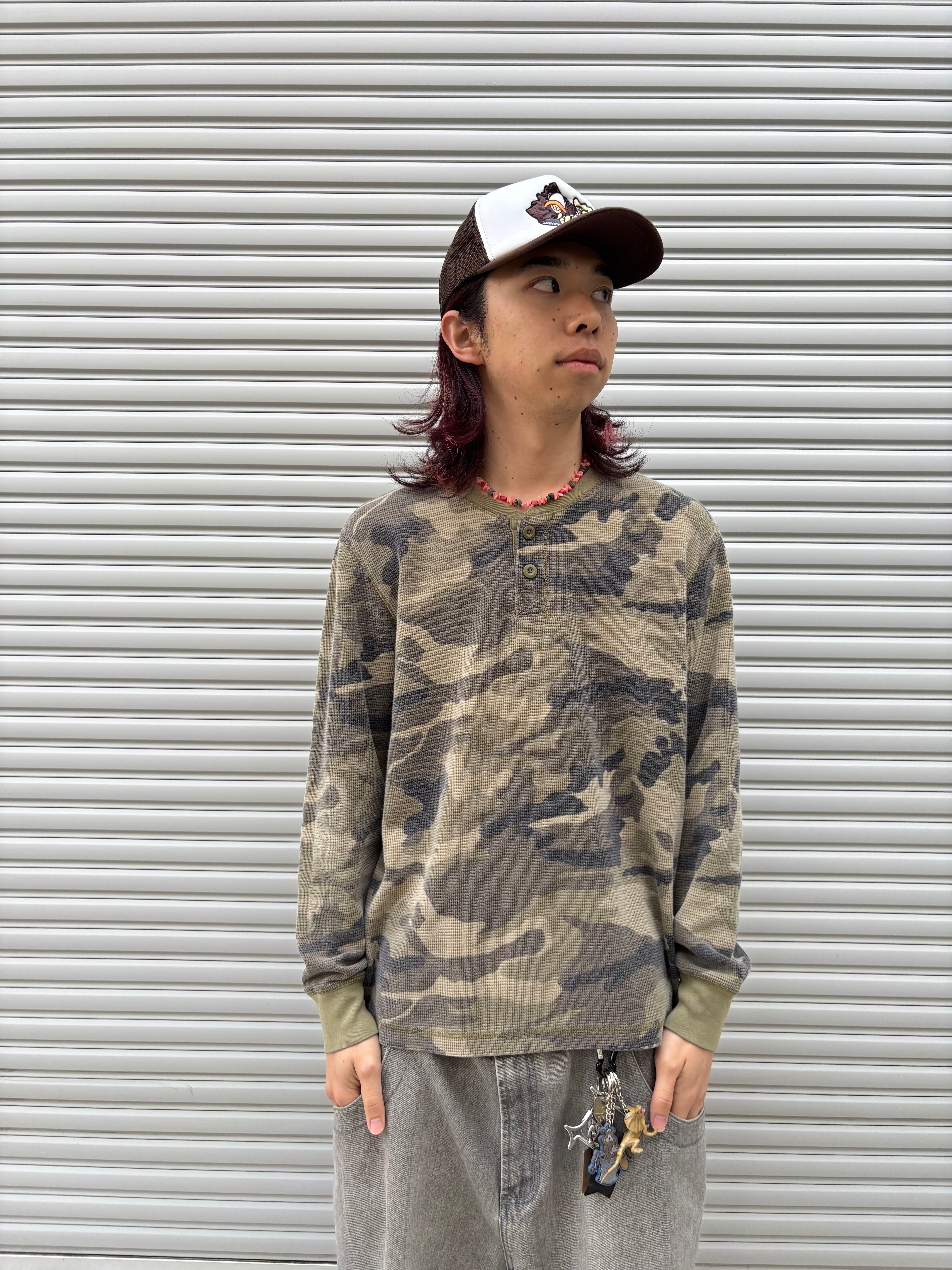 カモ柄のサーマルは冗談抜きで何枚持ってても良いです。自分も3枚体制ですが夏以外はずっとカモサーマルローテーションで過ごしています。サイズ感もちょうどよく、ラウンドカットじゃないのでインナーでも一枚でも気軽に着られます。