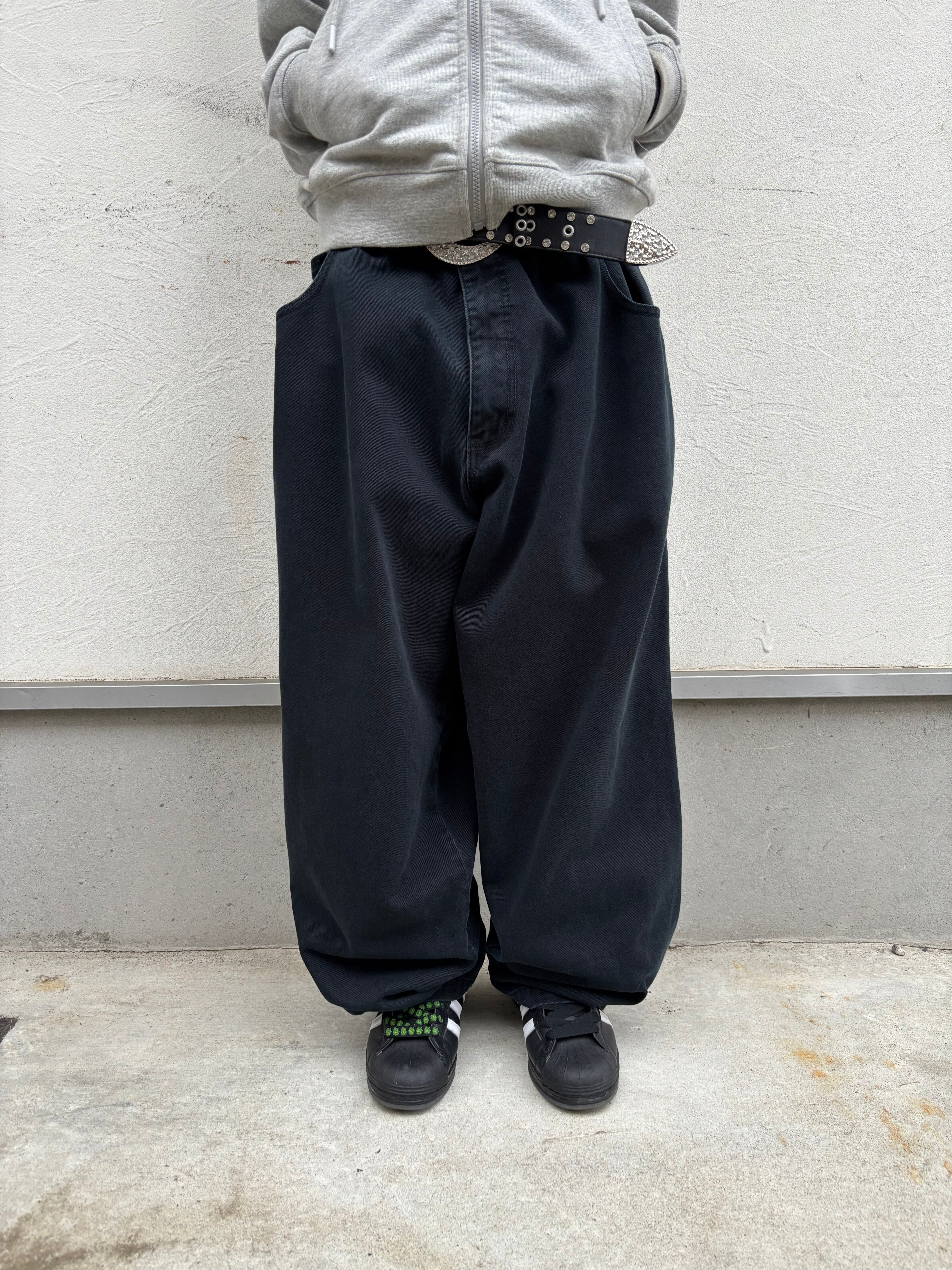 ウエスト通りの超絶ワイドシルエットで尚且つ調子のいいブラック、レングスもしっかりあって持っていたら週4で履くであろう一本。スワッグ感も控えめでバックポケットの刺繍が効いててかっこいいです。ガッツリ腰履きしちゃってください。