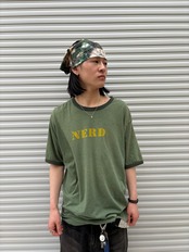 サイズ大きめでピタッとしたリンガー感が一切なく普通のTeeの感覚で着られる1着。配色もプリントセンスも抜群で普通のTeeじゃつまらなく感じてきた時に気分を変えられるTeeです。