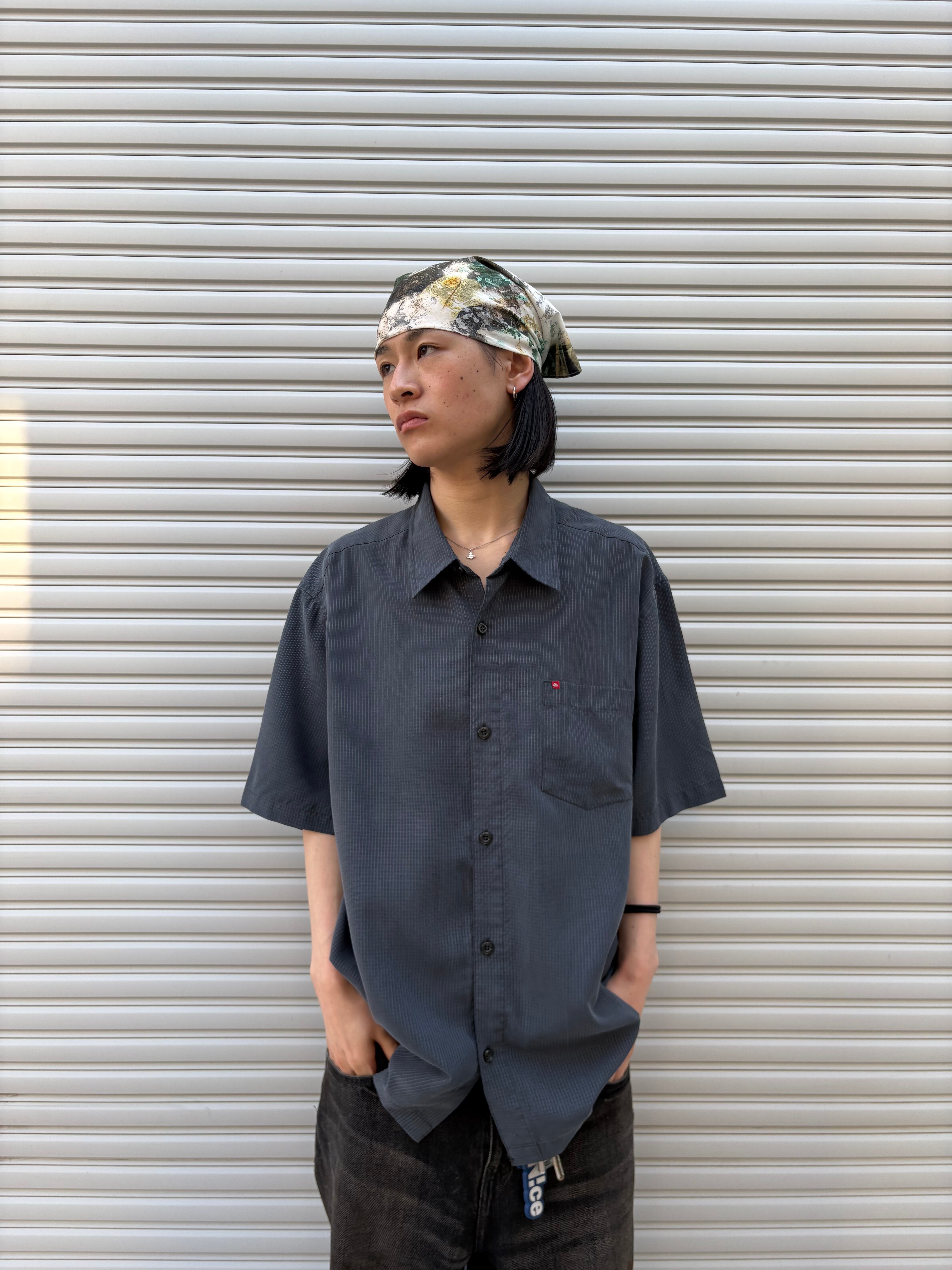 深いネイビーに細かいチェック、ゆったりとしたサイズ感でクイックシルバーらしい、夜の海を思わせるようなシックなシャツ。胸元と裾の小さなロゴがいいポイントになっててかっこいいです。
