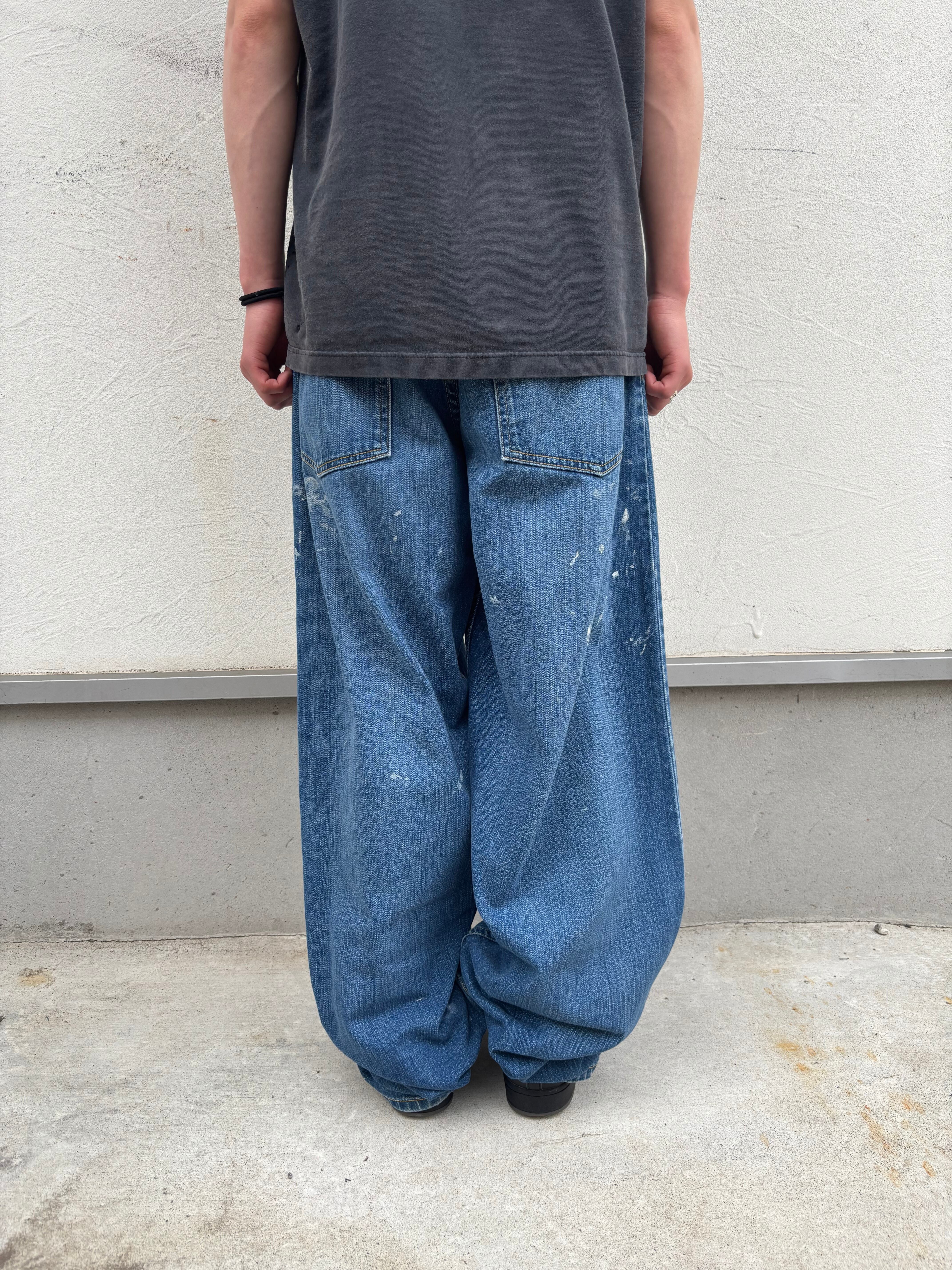 ペンキ飛びまくりでとてつもない雰囲気を手に入れた00sシルバータブのバギー。太さのわりにレングスが長めなのでしっかり足元で溜まってくれるタイプのデニム。色味も残ってるので色んなTeeにハマってくれそうです。