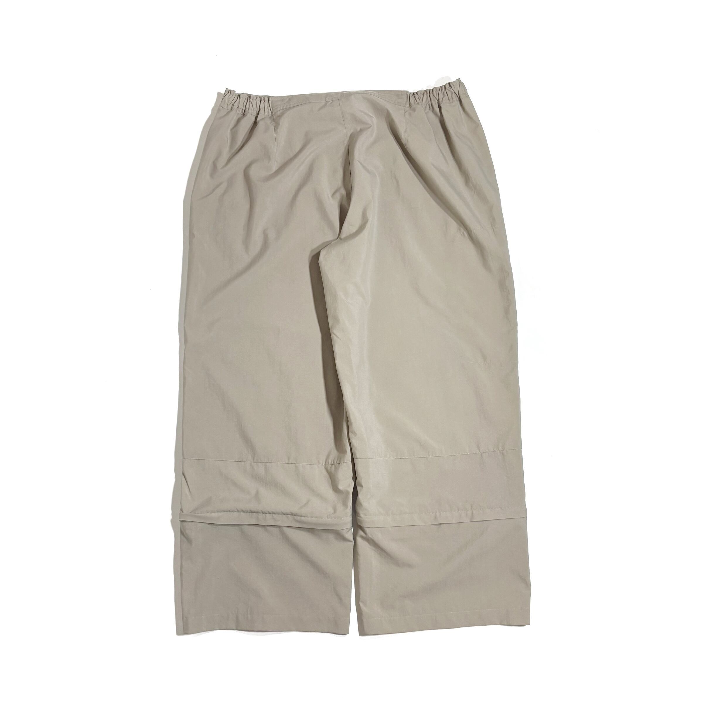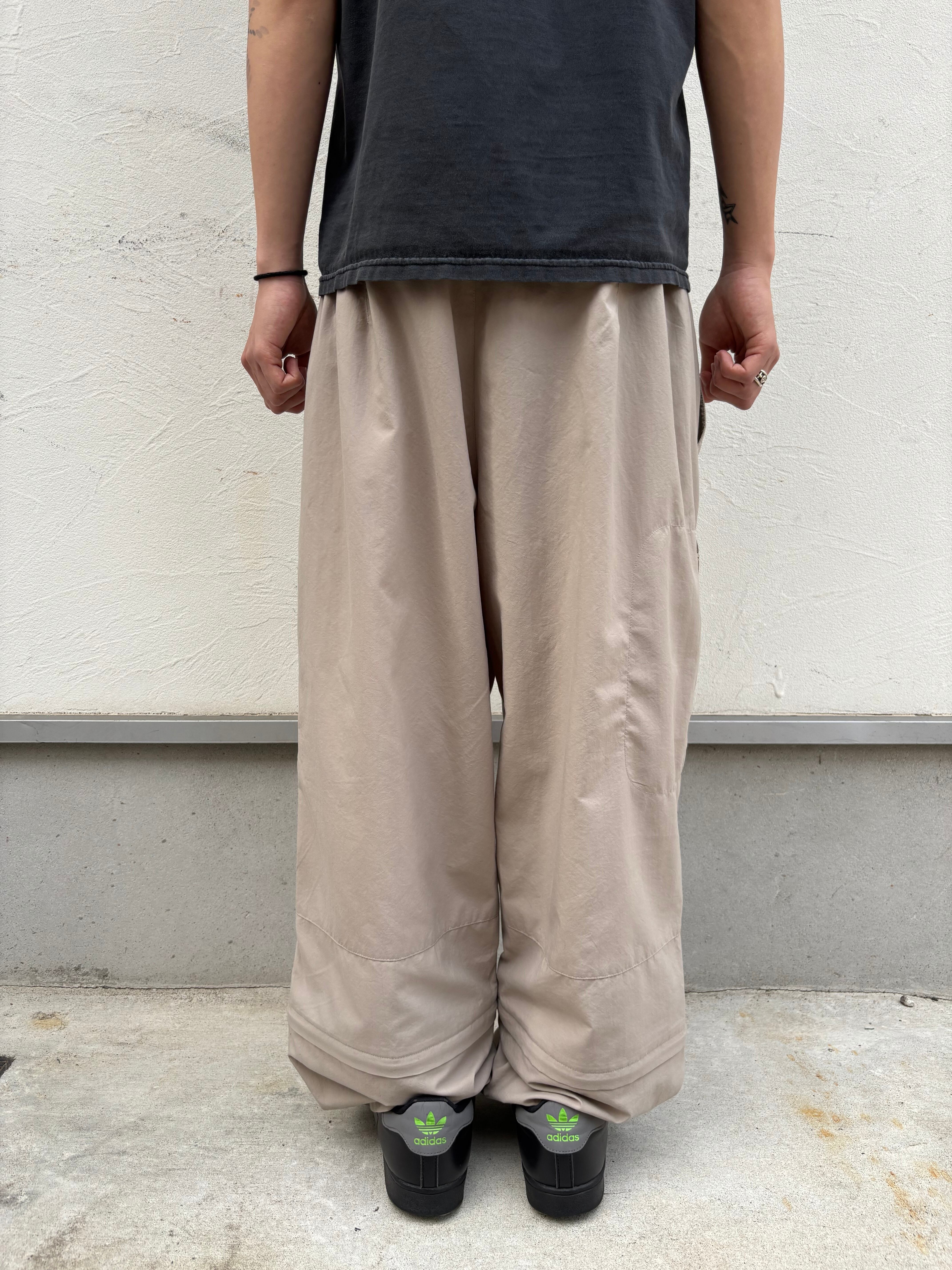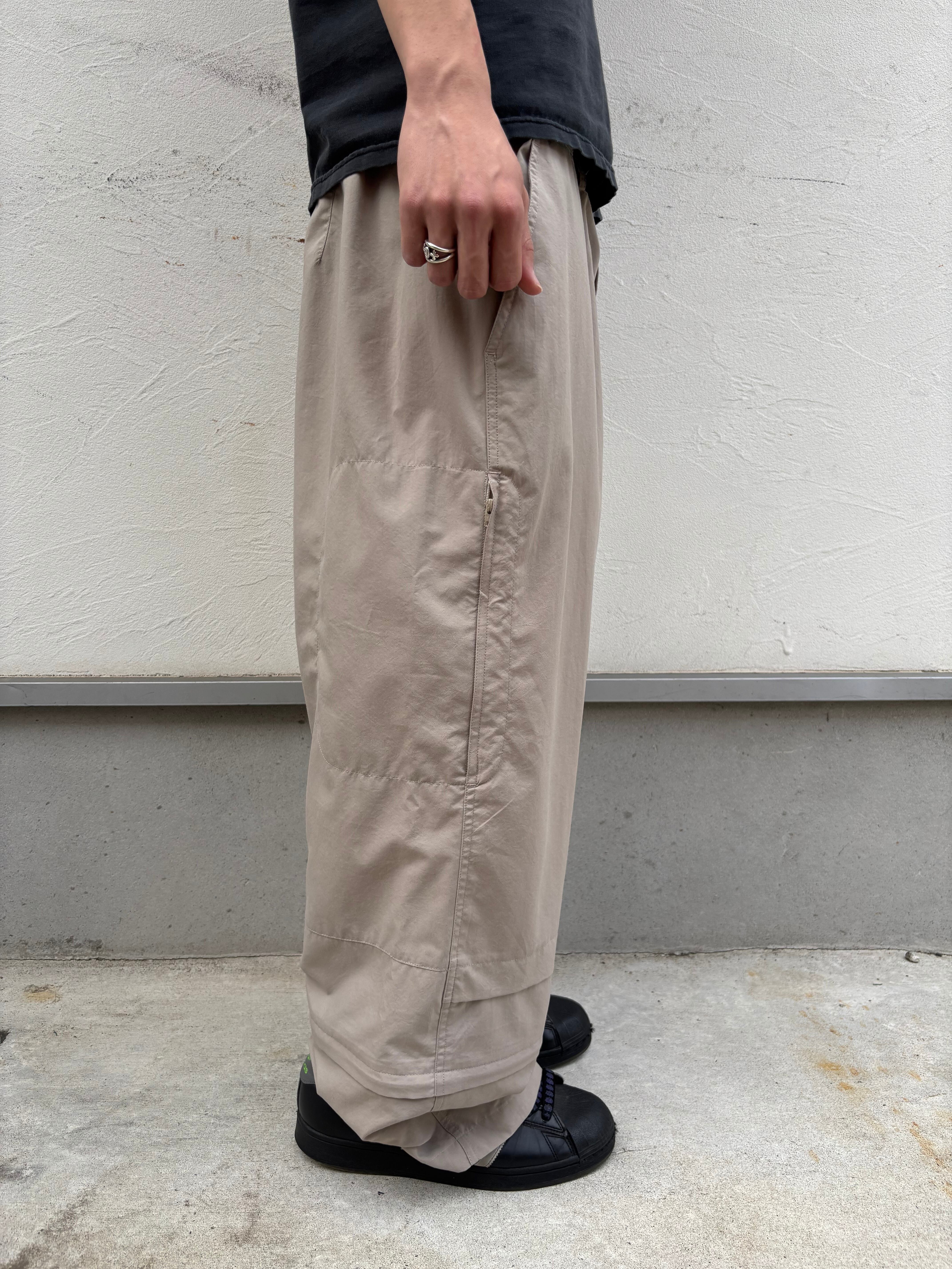 一見普通のパンツに見えますが八分丈くらいで切り離せるデタッチャブルや、右腿付近の隠しポケット、異常に太い裾幅など実は良いポイントしかないパンツ。レディースもメンズも太く履けます。