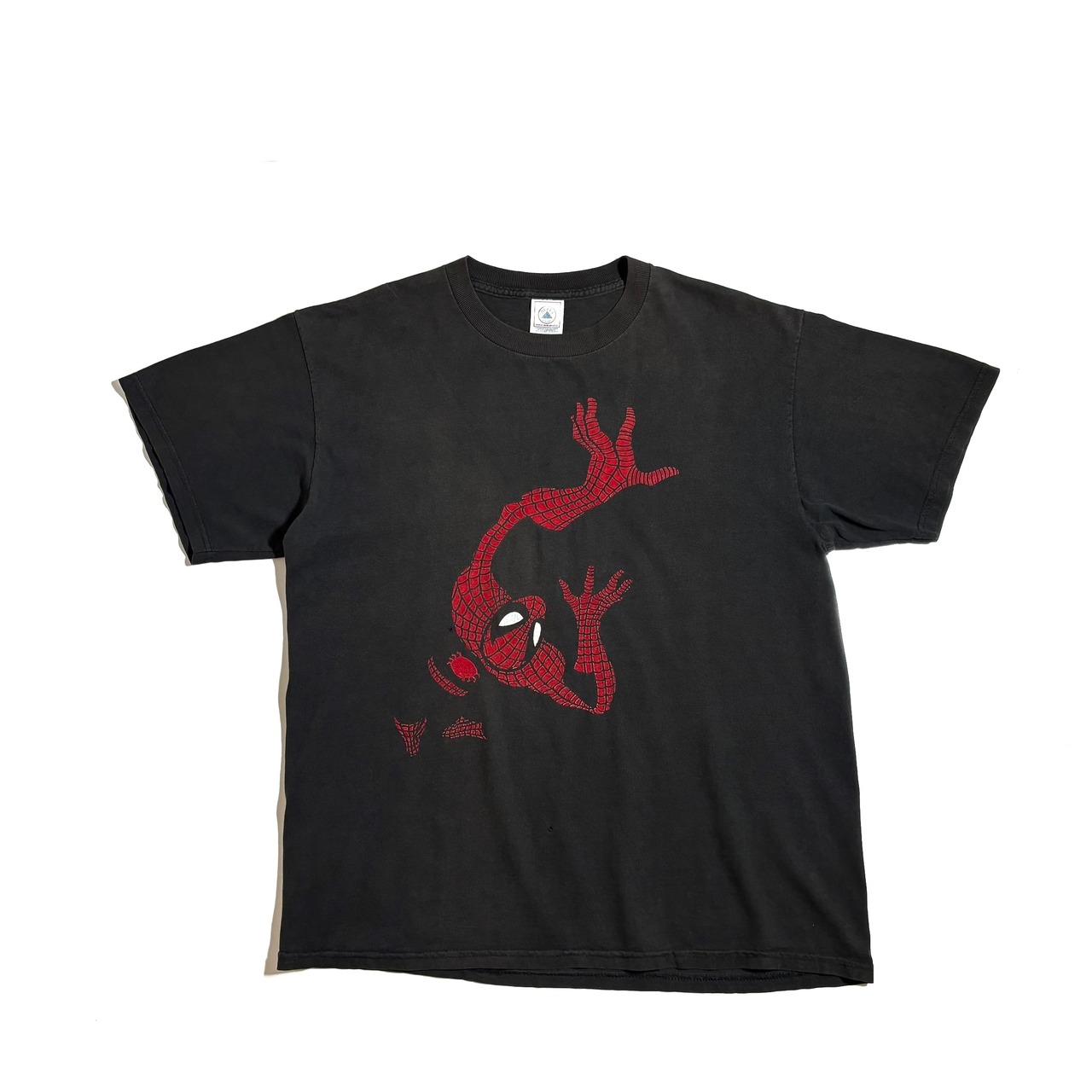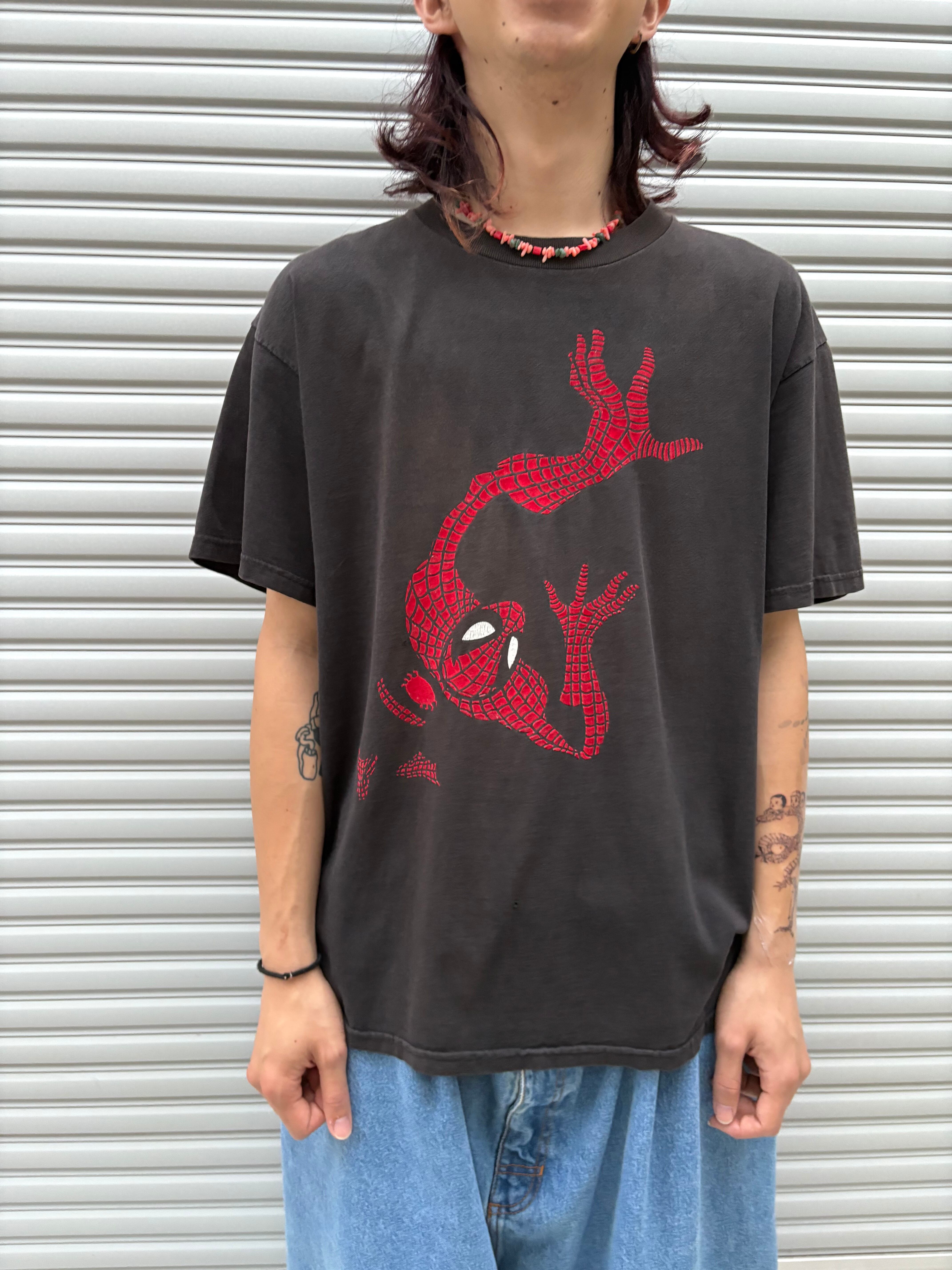 少し色あせたブラックのボディに赤のフェルト地で描かれたスパイダーマンがとてつもなくカッコイイ1枚。絵柄もスパイダーマンTeeの中では個人的にダントツで良く、サイズ感も短丈で最高です。