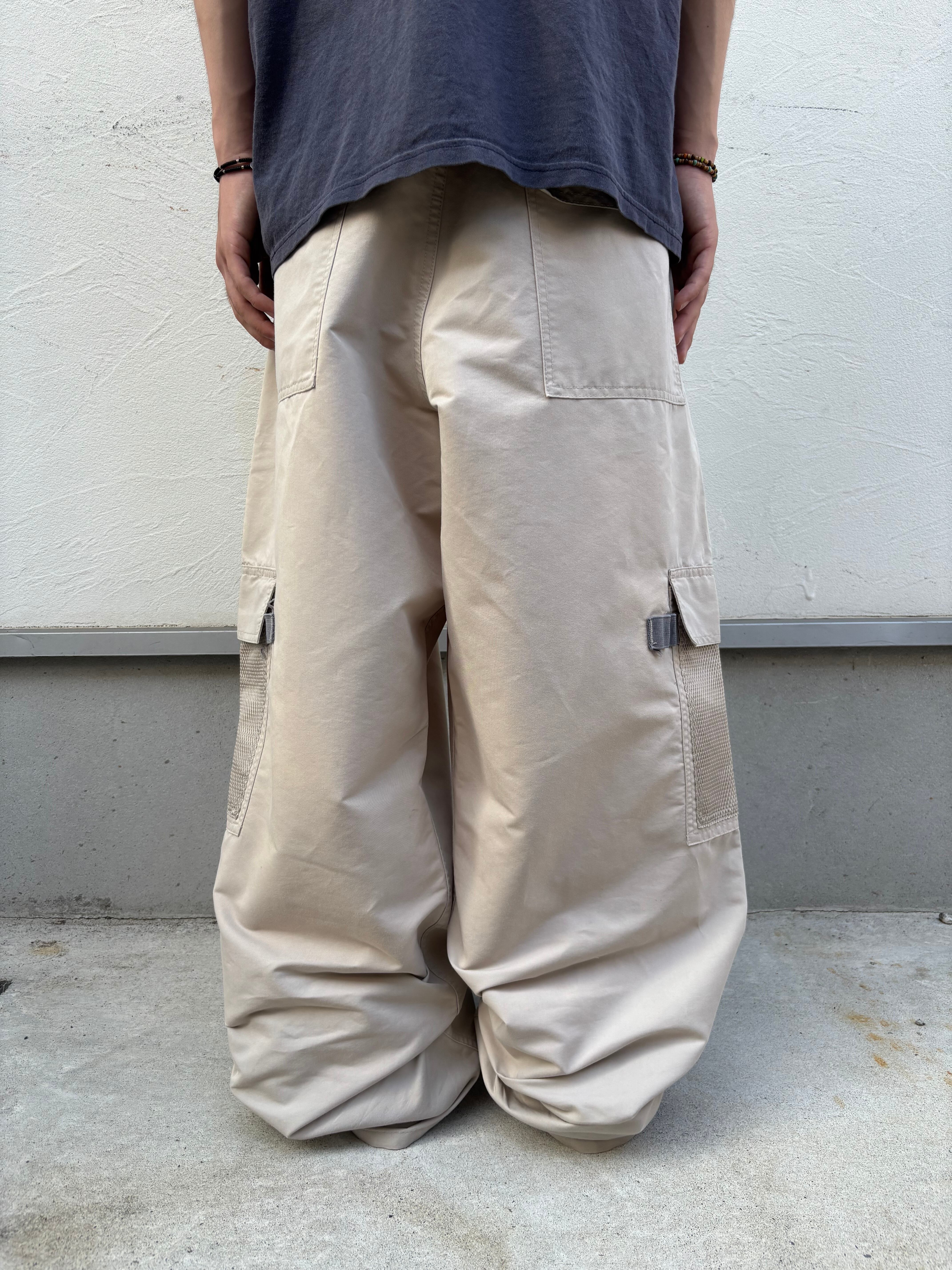 そもそも見ないタイプのシルバータブのカーゴでしかもサイズも40×32とかいう最強の1本。カーゴポケットはメッシュのタイプで大きく、シルエットも超絶バギー。素材感もサラサラで夏も余裕で履けそうなのがありがたいです。