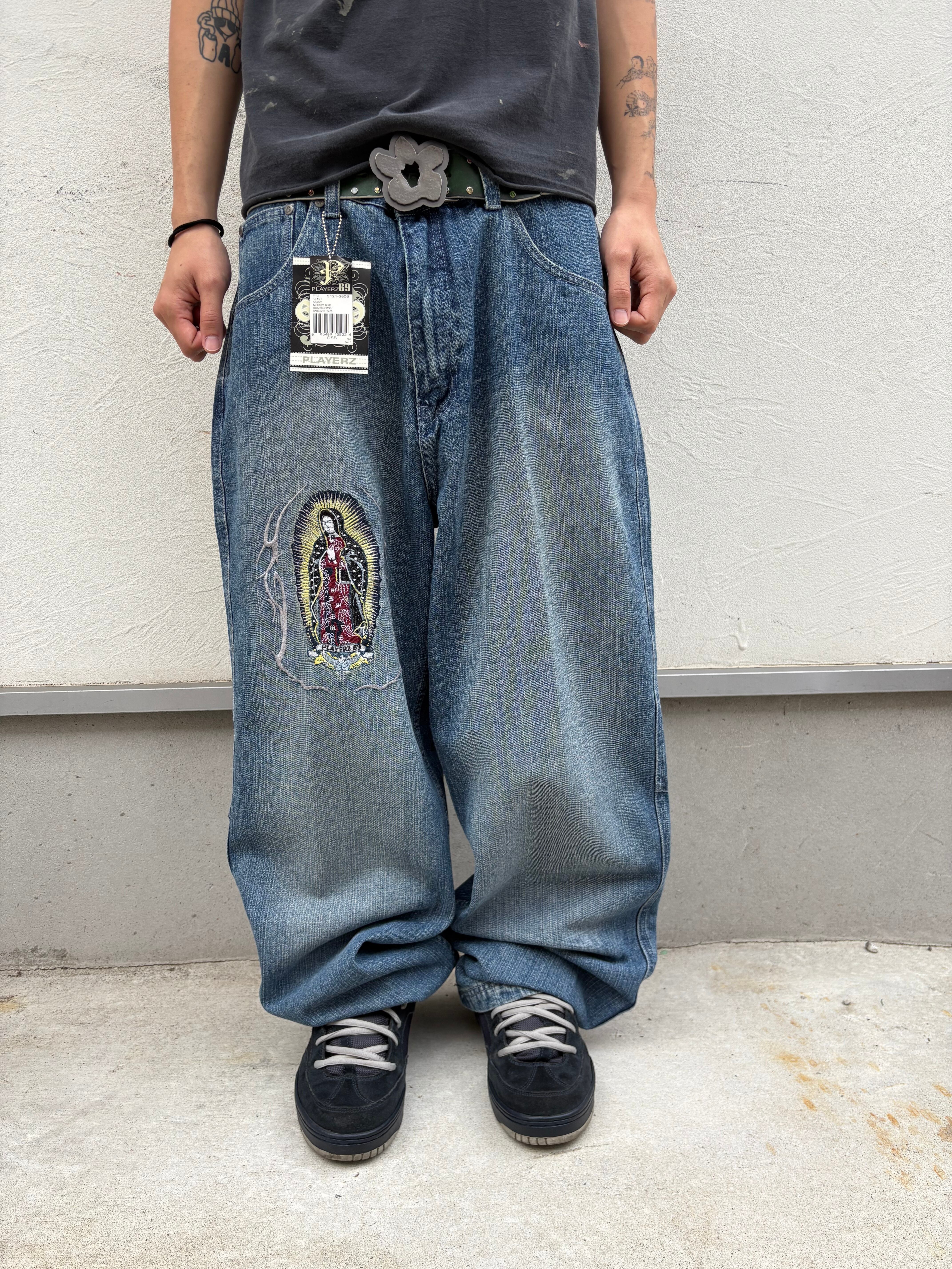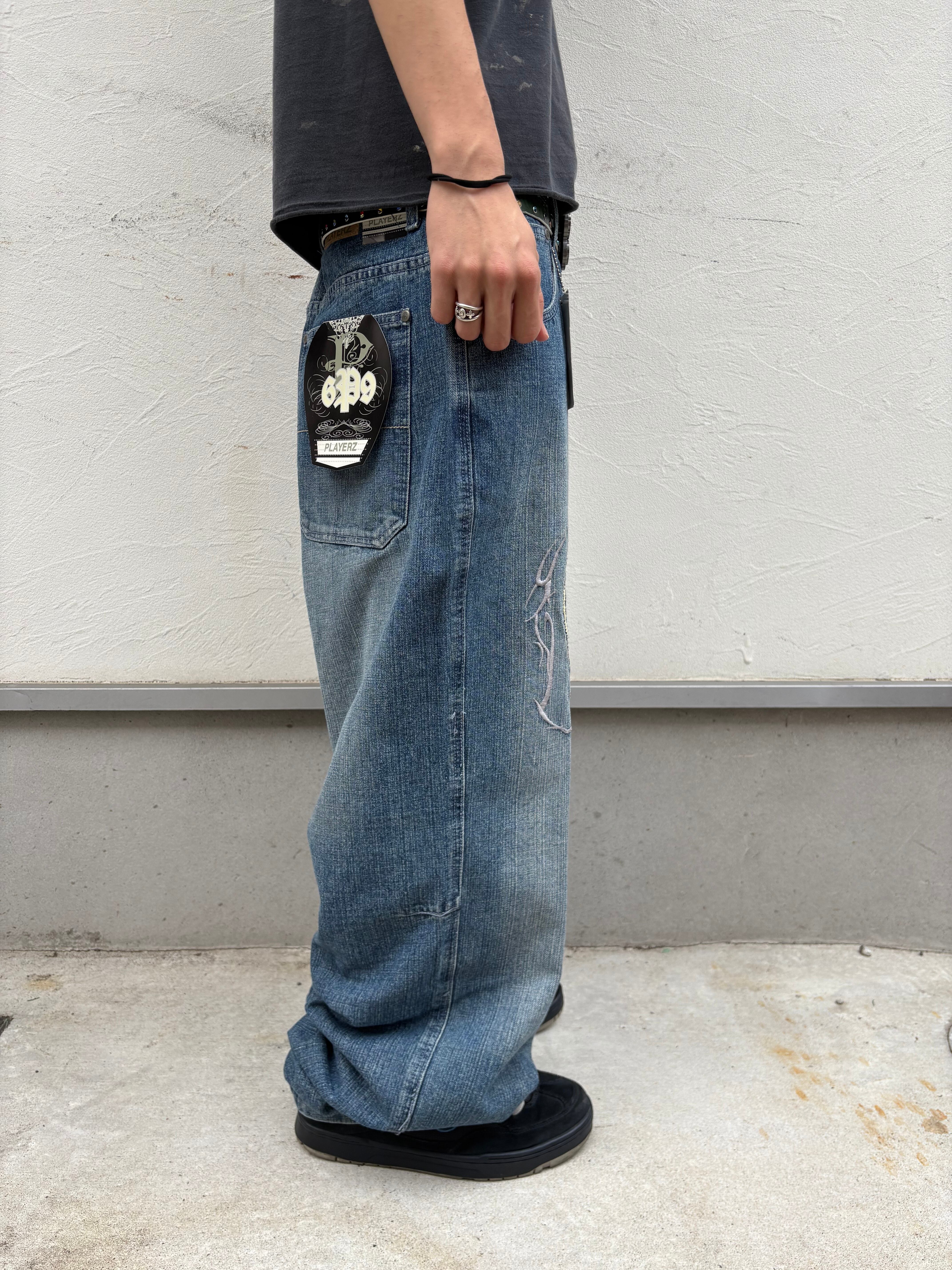 90~00s DEADSTOCK PLAYERZ69 Embroidered Super Baggy Denim