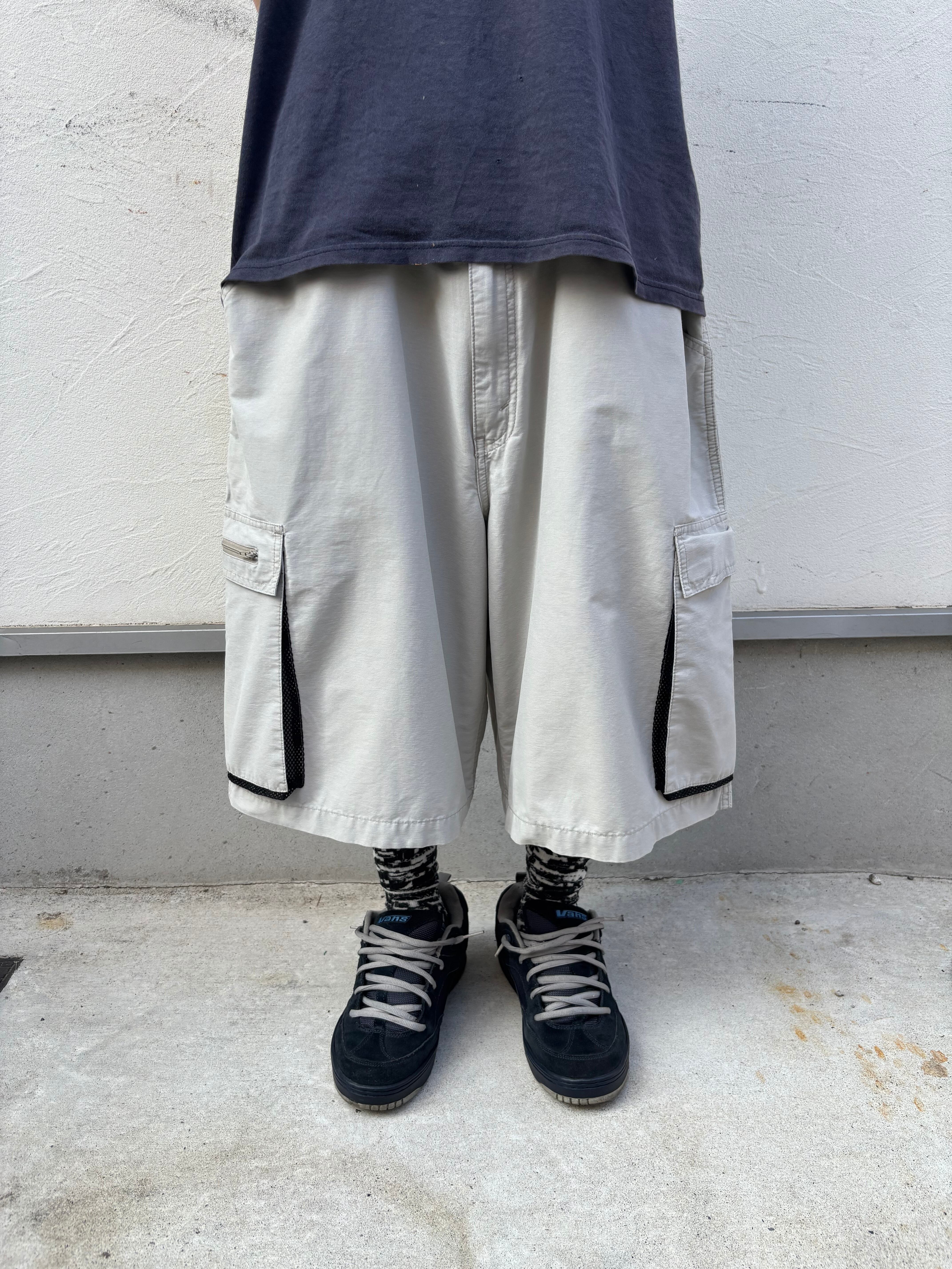 シルバータブで個人的に1番好きなコットンナイロンシリーズ。やっぱりデザインが最高で、マチがメッシュ素材になっている大きなカーゴポケットや、フラップに付いた隠しポケット、バックポケットのラバーロゴ、それでいてしっかりビッグサイズ。色味も落ち着いたベージュで、この夏活躍間違いなしです。
