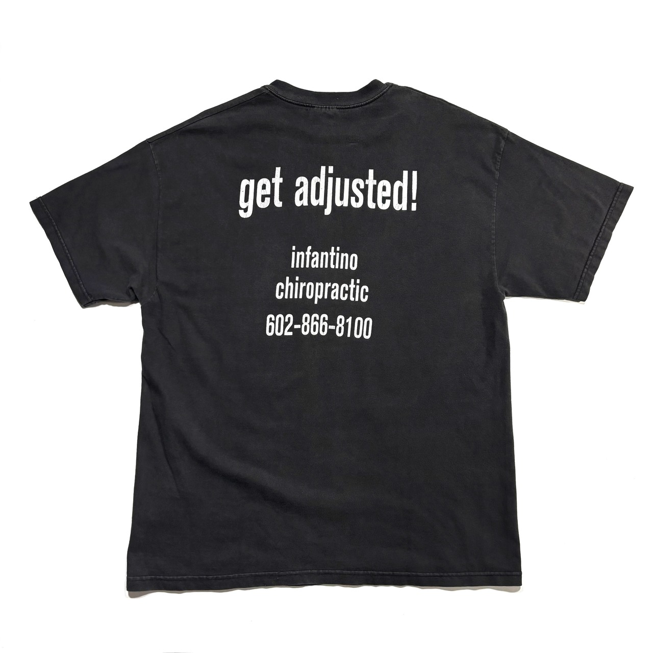 亜脱臼した?といつものgot系パロディのプリントがフロントに施され、バックでカイロプラクティックで治そう!的な感じで上手く広告活用しているTee。その流れも良いし、一発で分からない英単語なのも個人的にクールで良いです。サイズも実はめっちゃいいです。