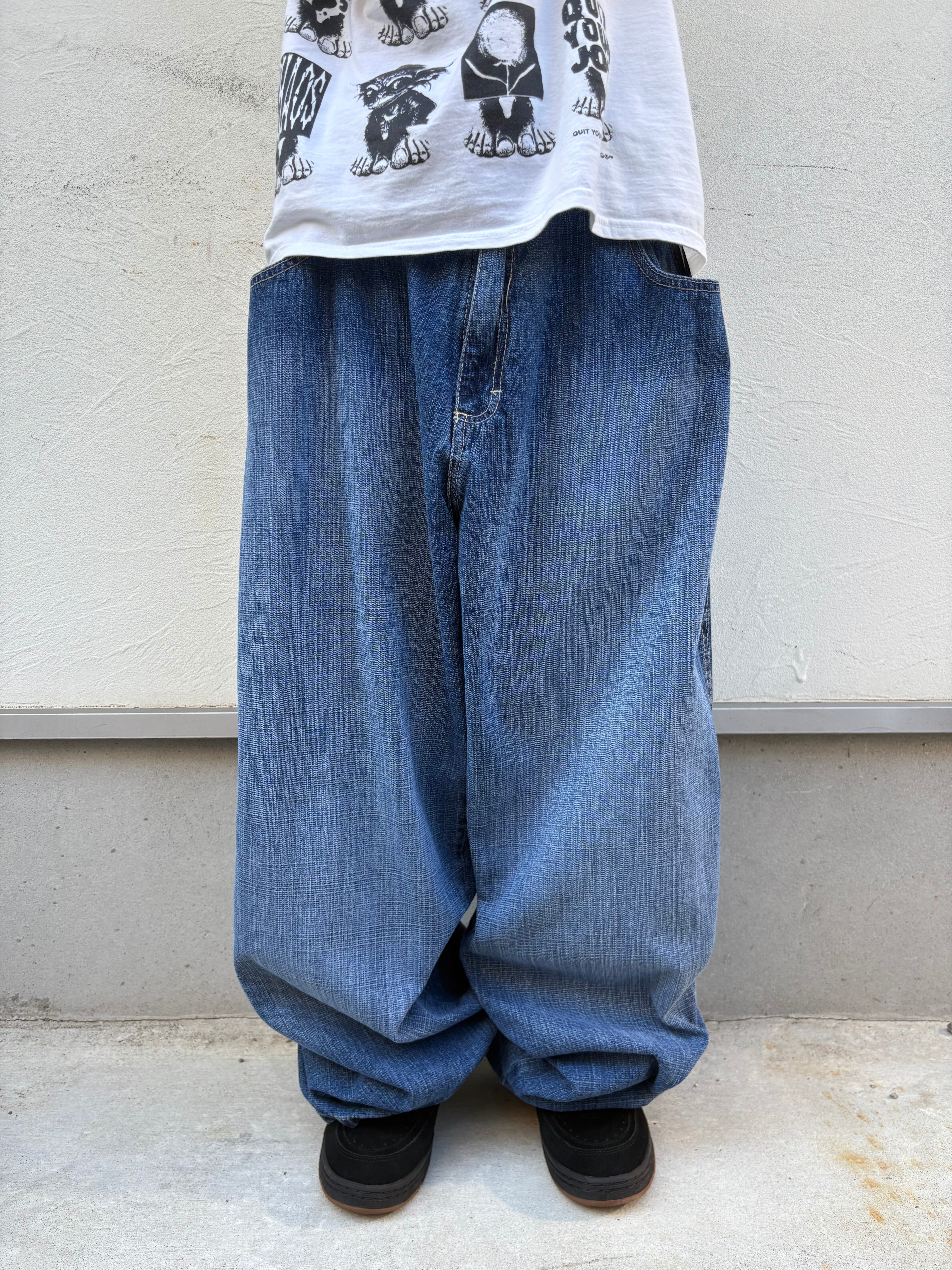 いかにも90~00sっぽいタグにバックポケットの刺繍、色落ち具合、そしてスーパーバギーなサイジング、このクオリティのデニムをデッドストックで楽しめる奇跡の1本。その割に生地が柔らかく、まだまだ育てていける至高のデニムです。