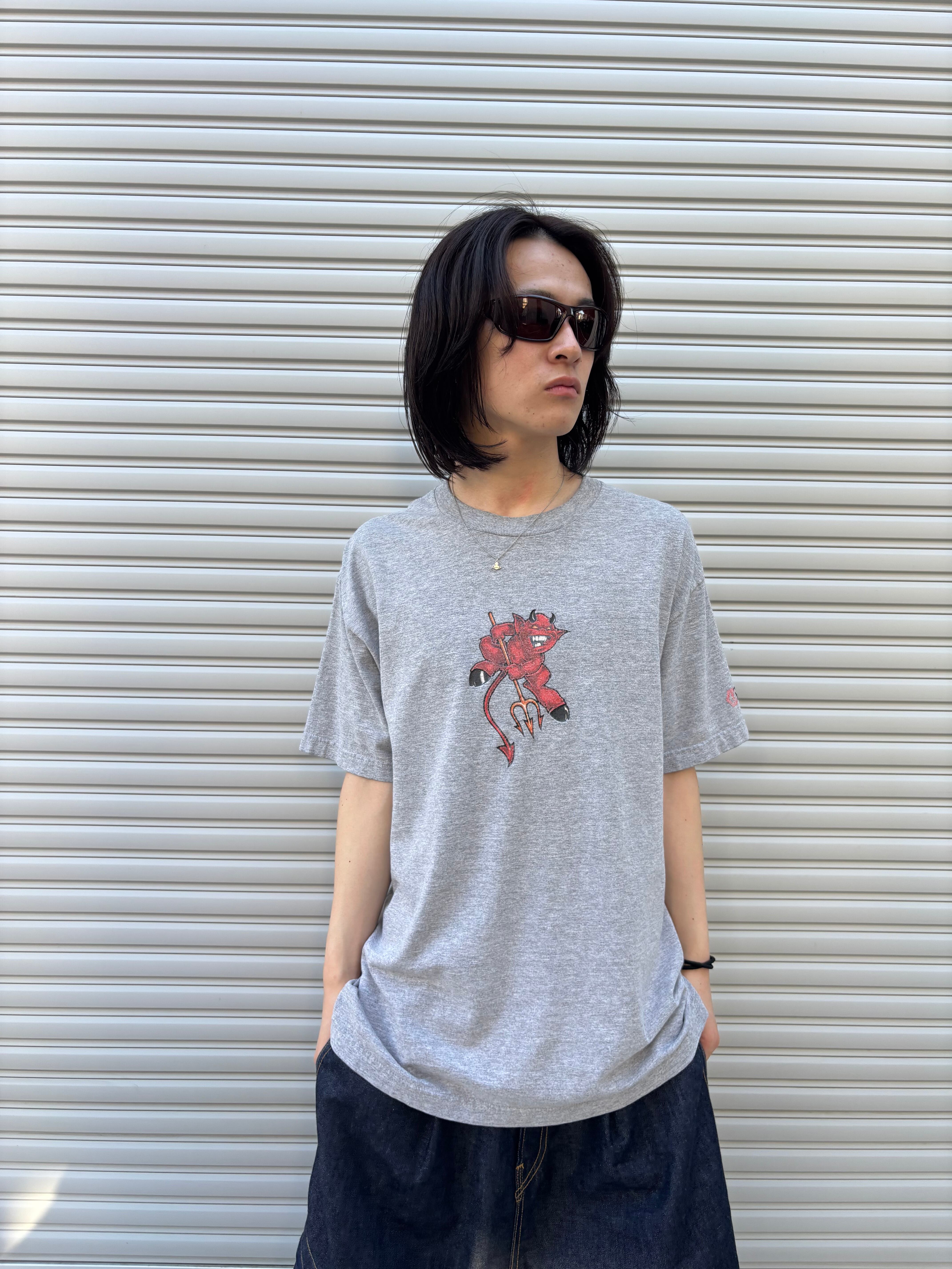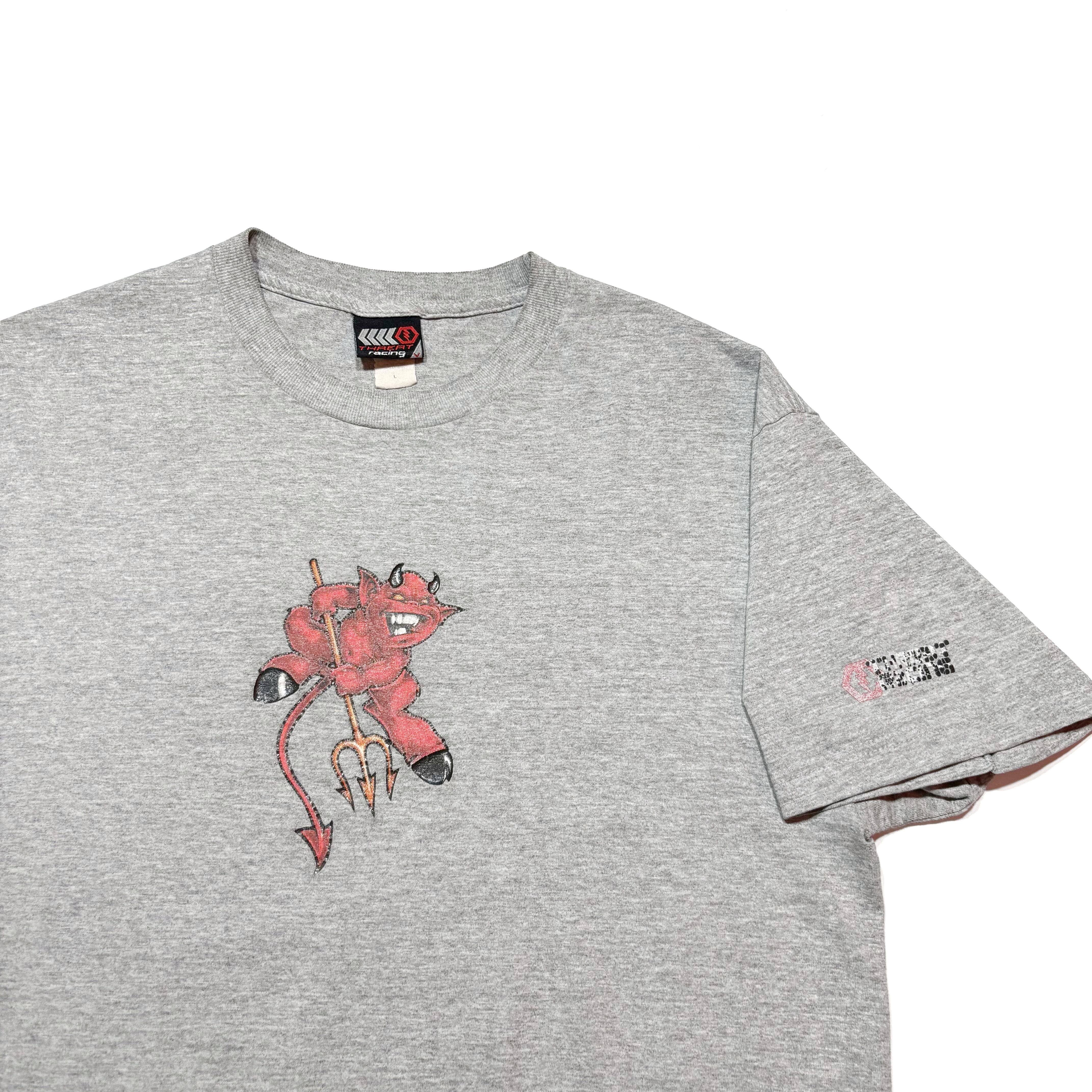 レーシング系のTeeとは思えないオールドスケートの雰囲気漂いまくりのデビルグラフィックが描かれた超絶イケてるTee。プリントのカスレももはや付加価値。これはこの夏着たい至高のグレーTeeです。