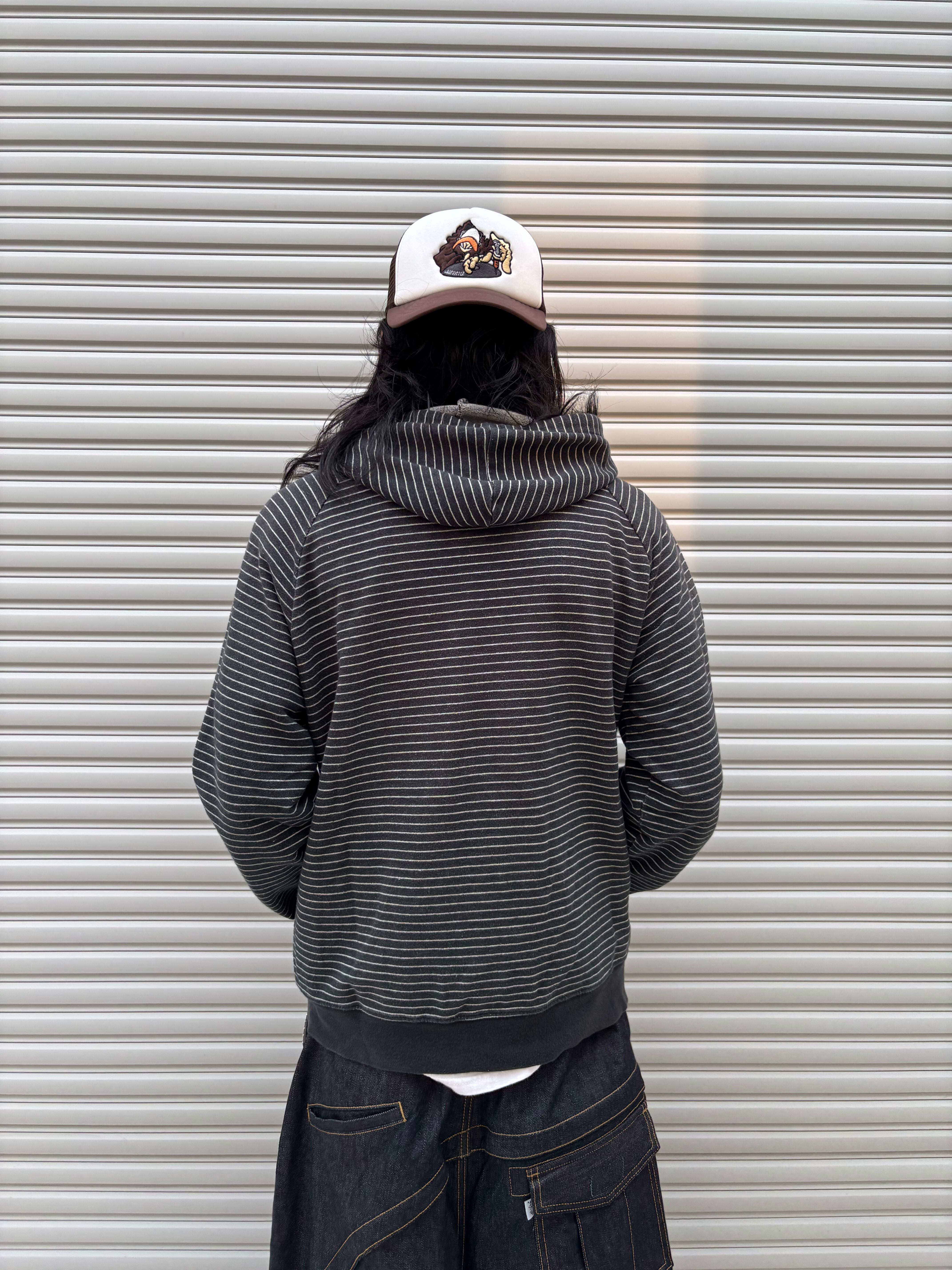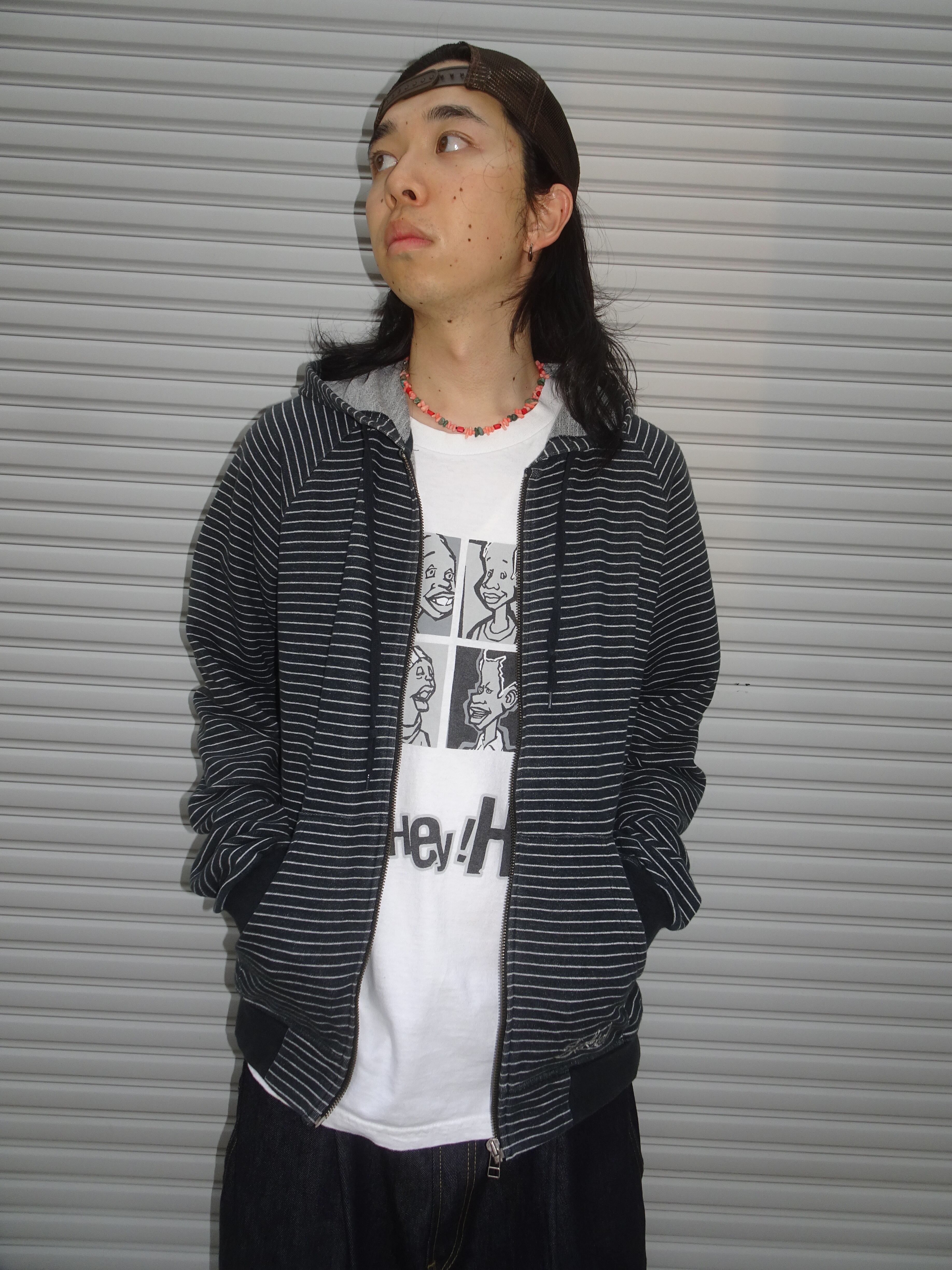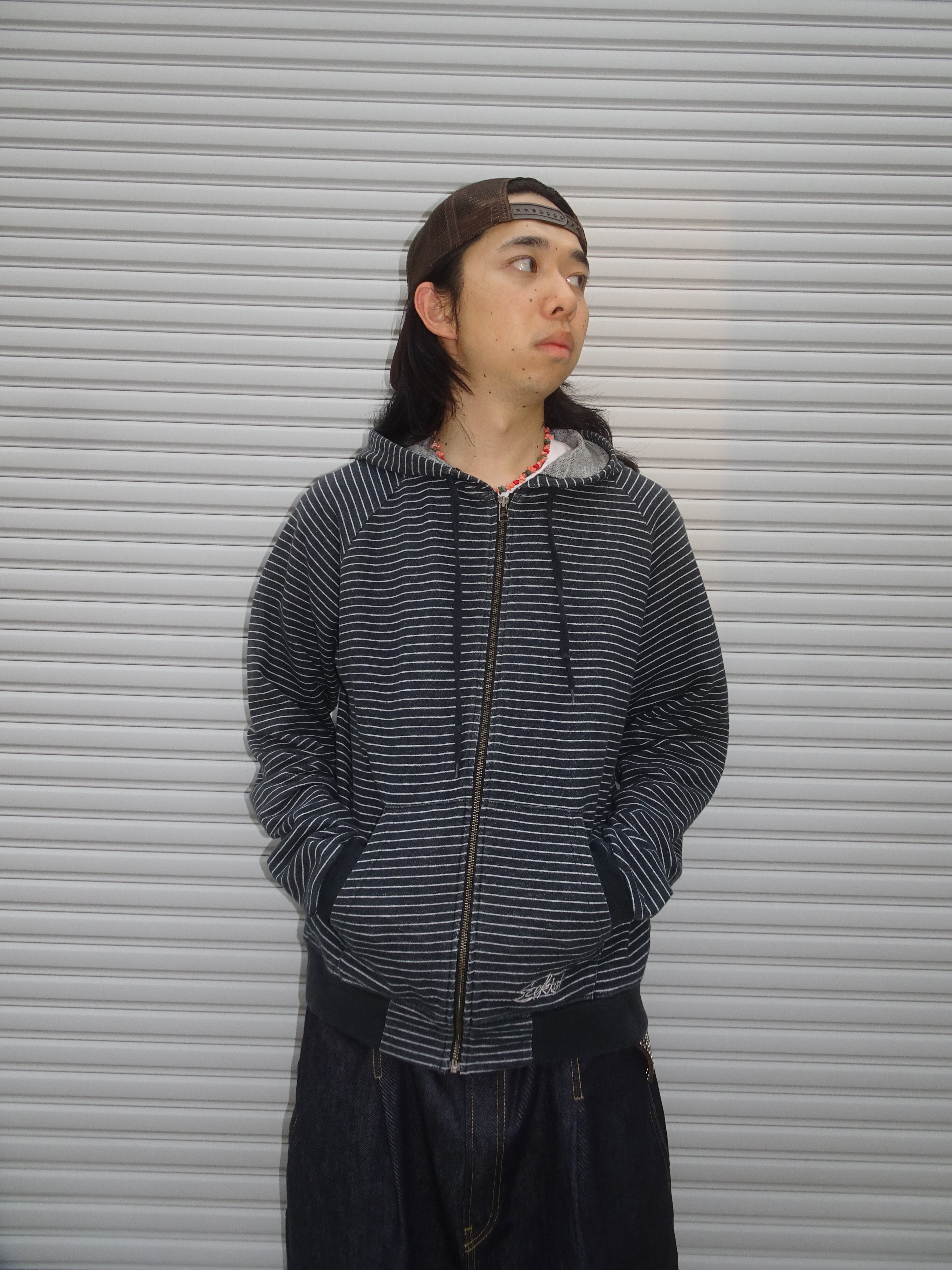 アメリカでも意外と見ることの無いスケートブランドEZEKIELのボーダージップフーディー。ピッチ細めでデザイン性高め、尚且つモノトーンなので可愛さとかっこよさのバランスが完璧です。サイズ感もちょうどよく、秋が楽しくなる1枚です。