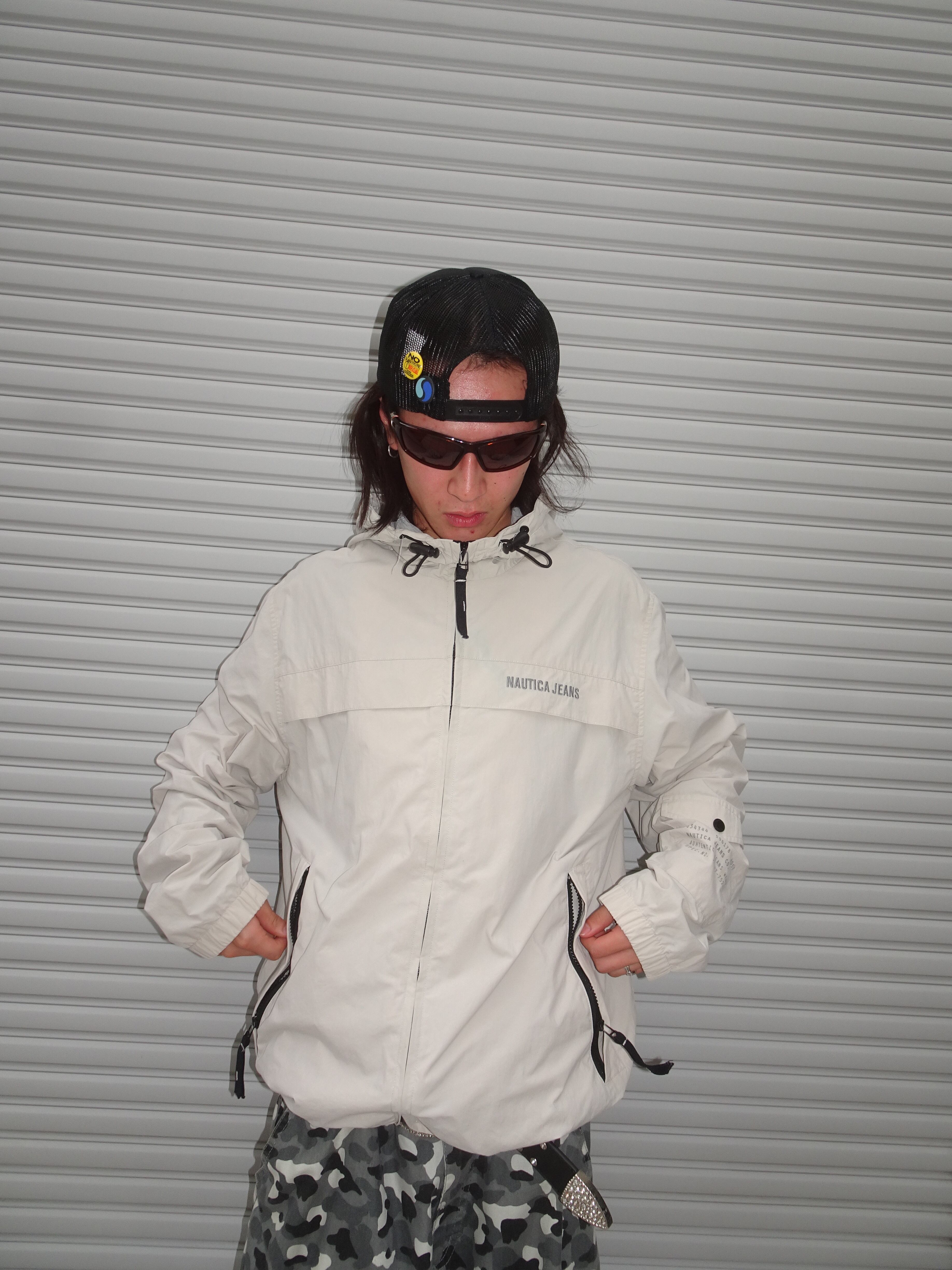 落ち着いた色味のホワイトにしっとりかつシャリ感のあるナイロンの素材感が最高にマッチしているジャケット。NAUTICAJEANSらしいギミック感もあり、サイズ感も抜群、裏地のコットンもサラサラで秋冬にしっかり活躍してくれる1枚です。