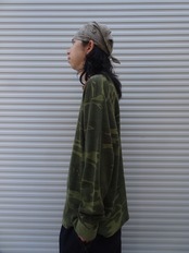 カモ柄のサーマルは冗談抜きで何枚持ってても良いです。自分も3枚体制ですが夏以外はずっとカモサーマルローテーションで過ごしています。サイズ感もちょうどよく、色味も良い具合に落ちたカモなので秋冬ファッションに落とし込みやすい1枚です。