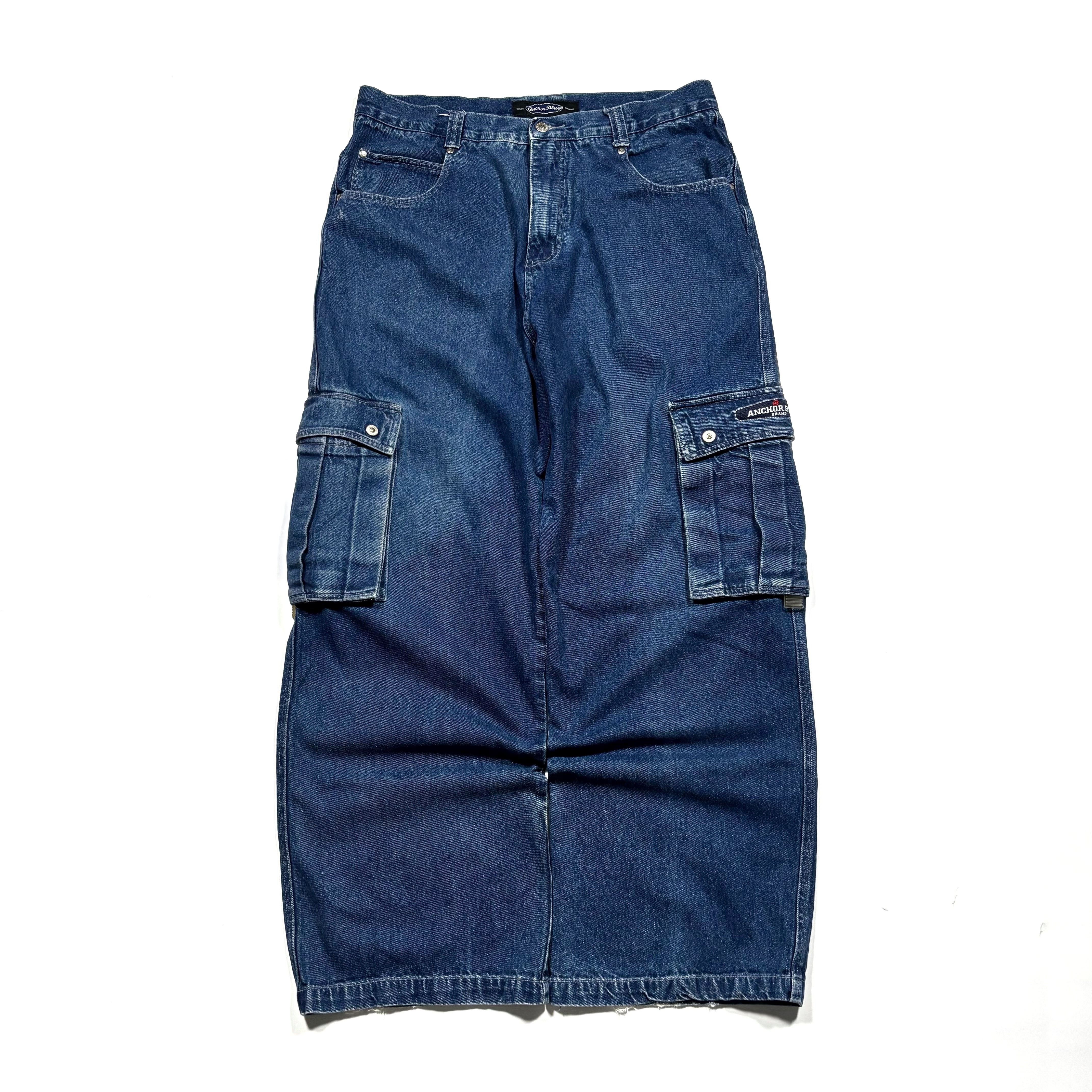 数あるアンカーブルーのパンツを見てきましたがこれは完全初見です。大きなカーゴポケットにロゴ刺繍、しかもポケットをめくると更なる隠しポケットが登場。シルエットはいつも通りしっかり太くて安心安全のアンカーブルー設計です。