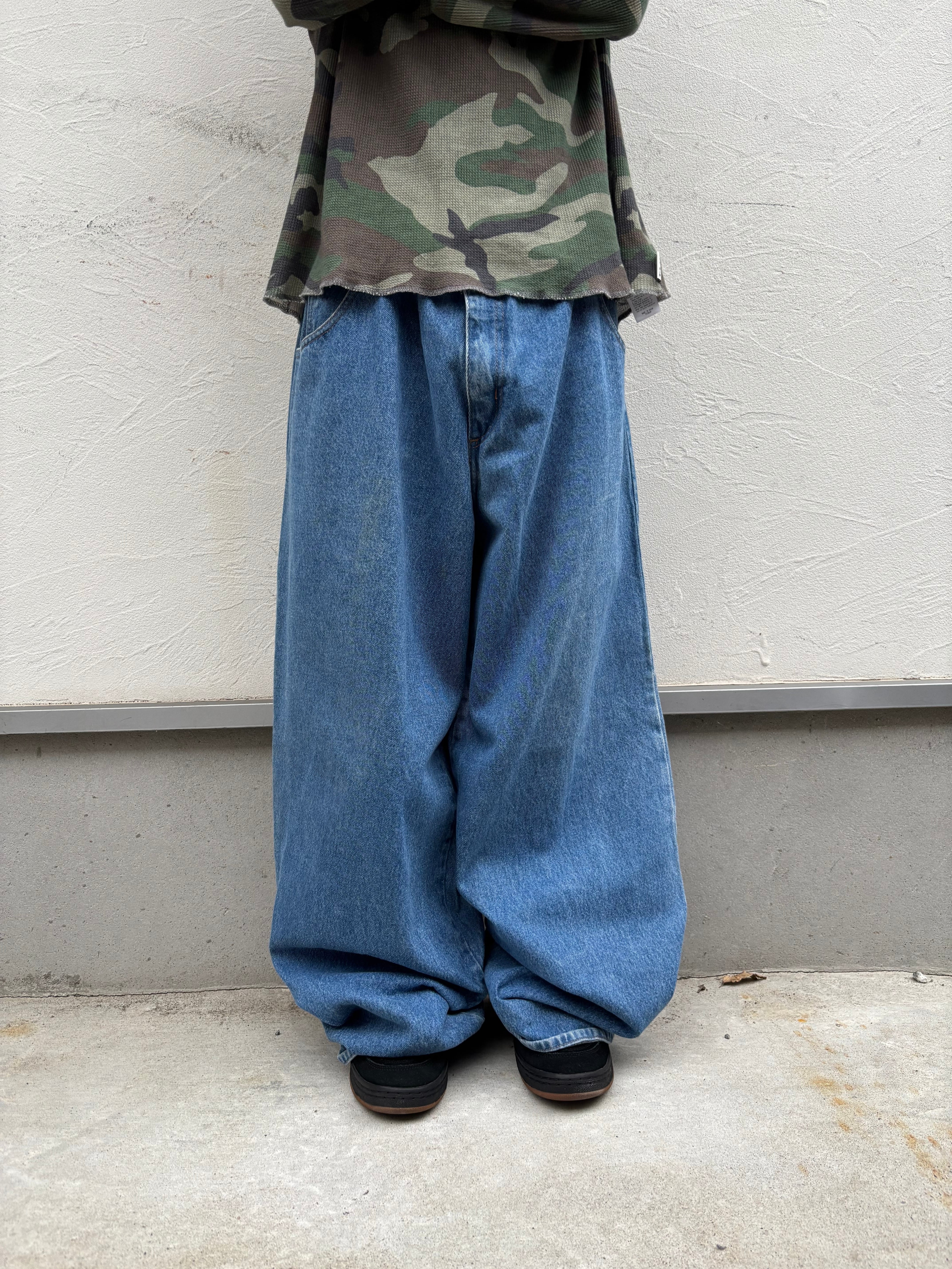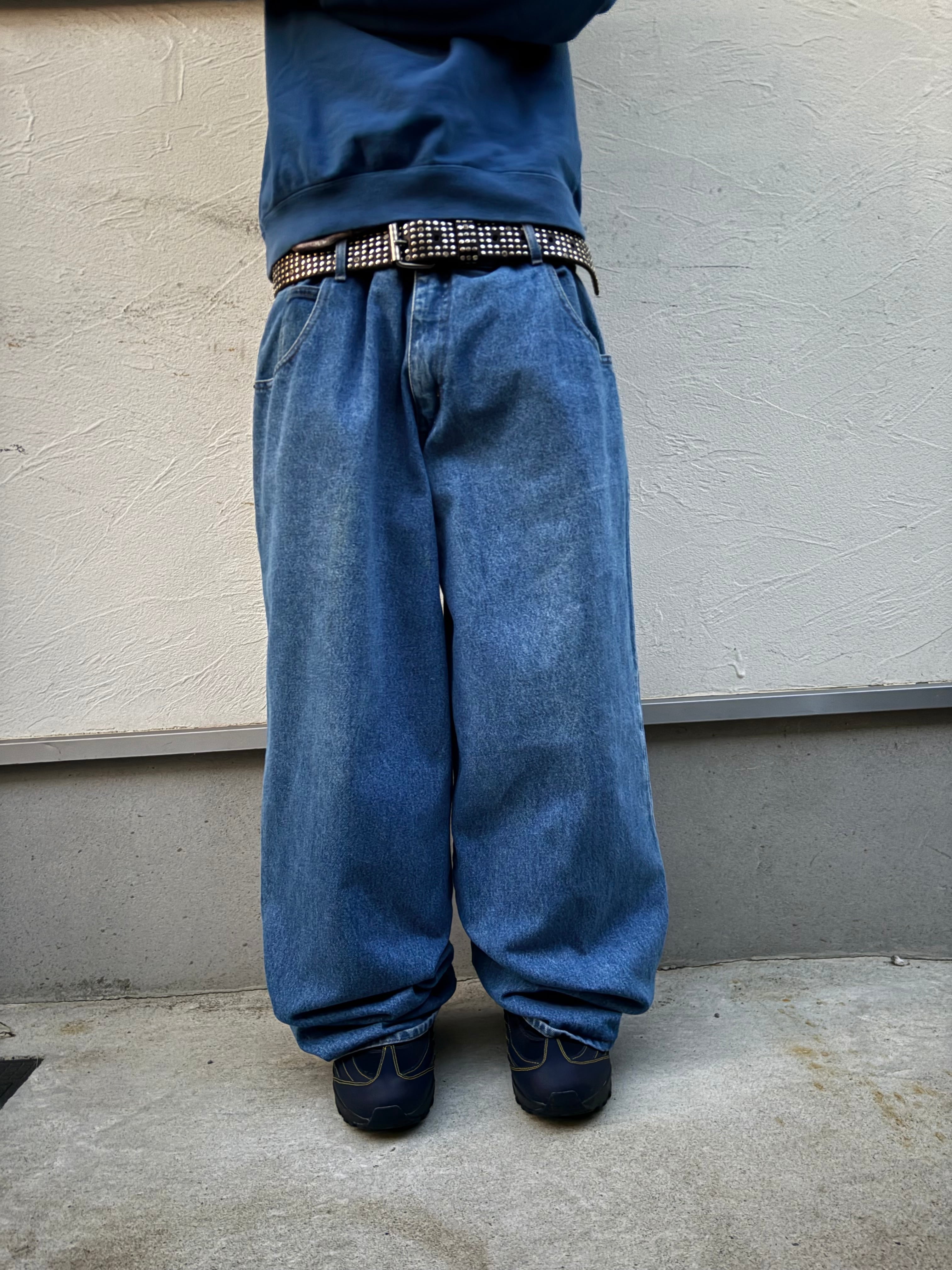 はい来ましたSOLOの超絶ワイドバギー袴タイプのデニム。僕らの“バギー選考”の基準は今のところSOLOの寸法になっているのでこれ履いておけば我々のバギースタイル。いつものパンツをこれに変えるだけで新しい世界に行けます。