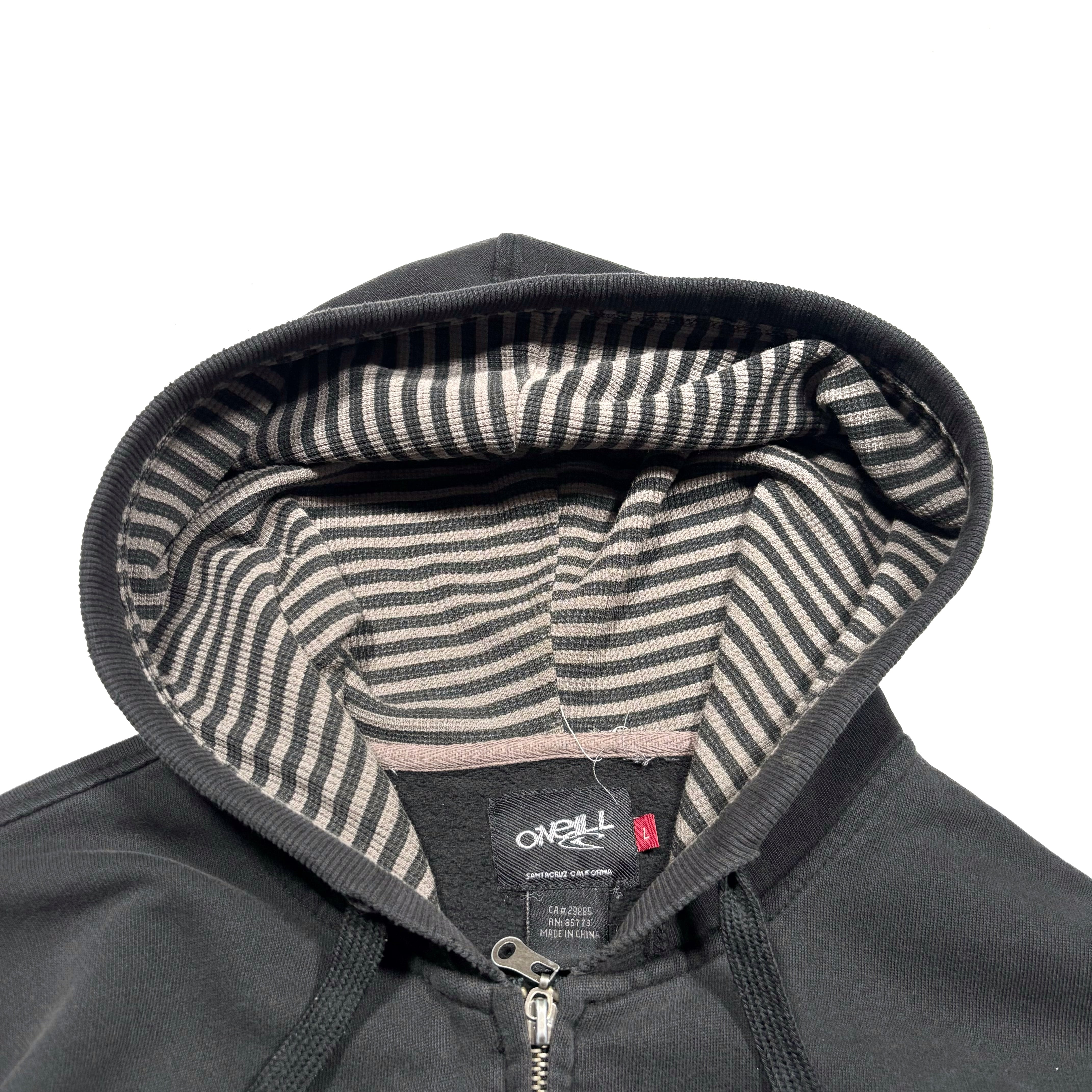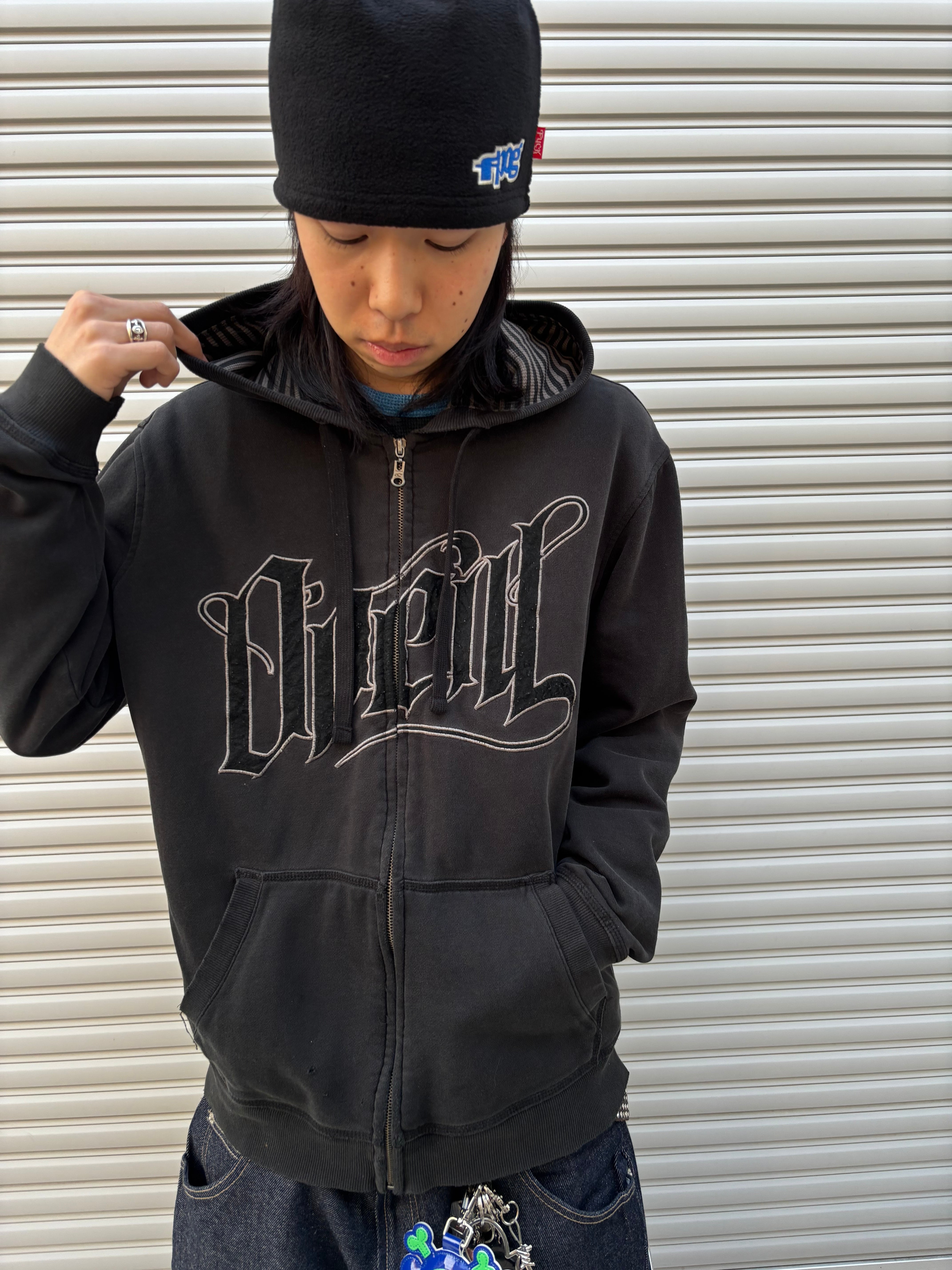 Y2Kノリ100%のロゴにボーダーのサーマル素材のフード裏デザインがカッコ可愛すぎるオニールのジップフーディ。ダークグリーンの色味も最高で、インディゴのバギーデニムと合わせたら更に覚醒しそうです。