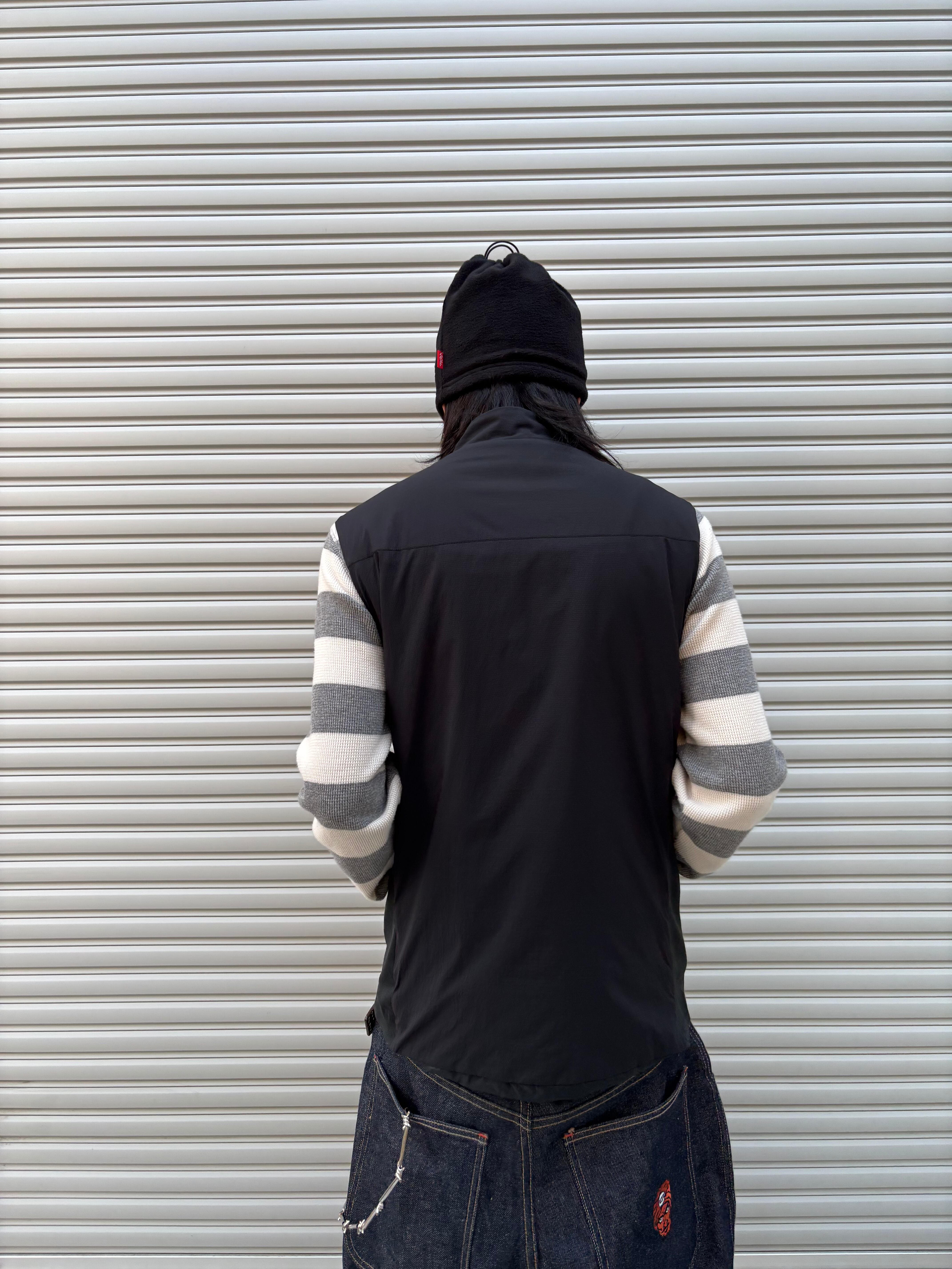 しっかり紺タグでちょい古なArc’teryxのatom LT vest。軽くてサラサラなナイロンのシェルに薄いパフで軽さと温かさ両方を手にしたベスト。面は言うことナシのカッコ良さでインナーでもアウターでも使える万能ベストです。