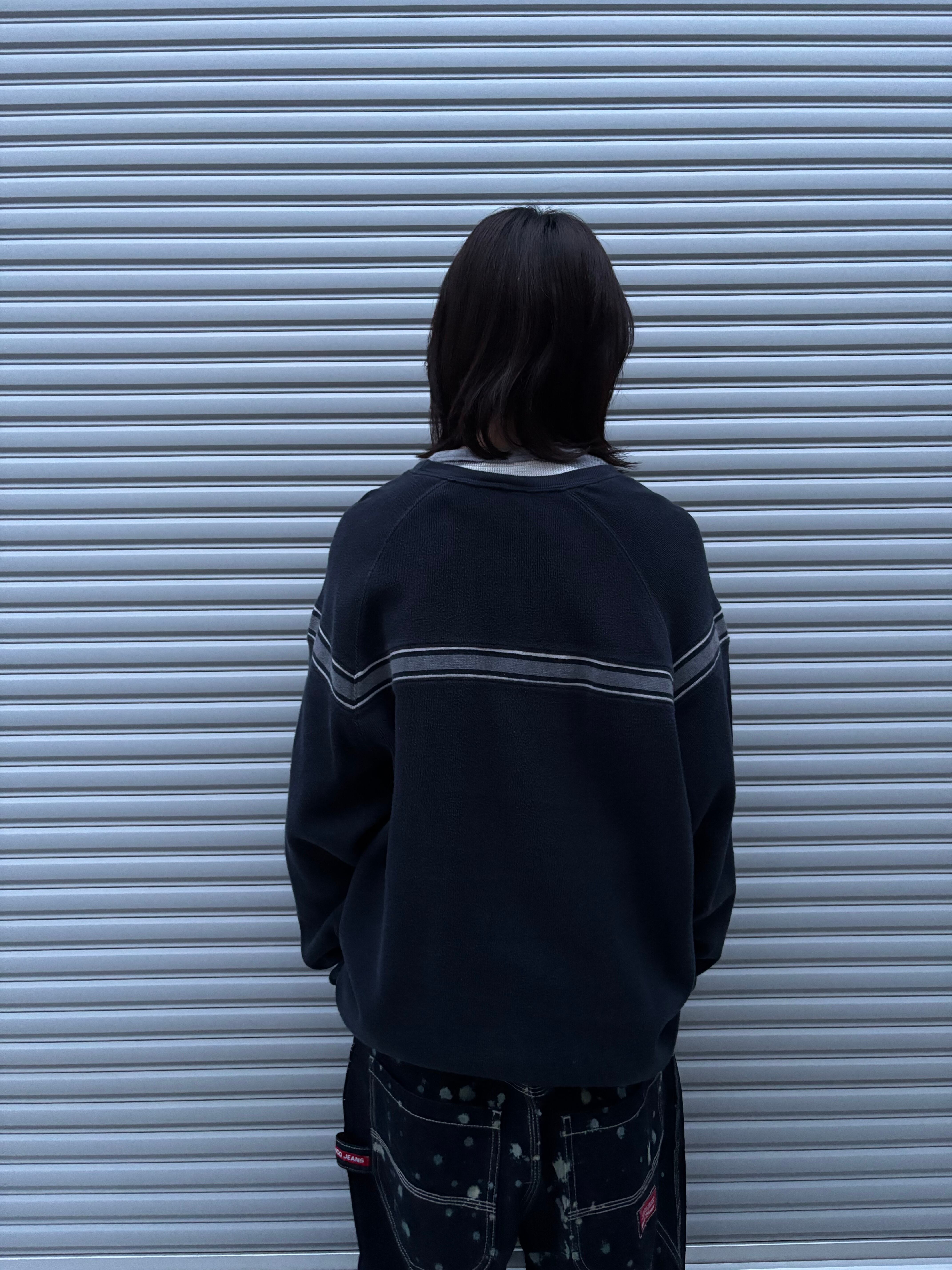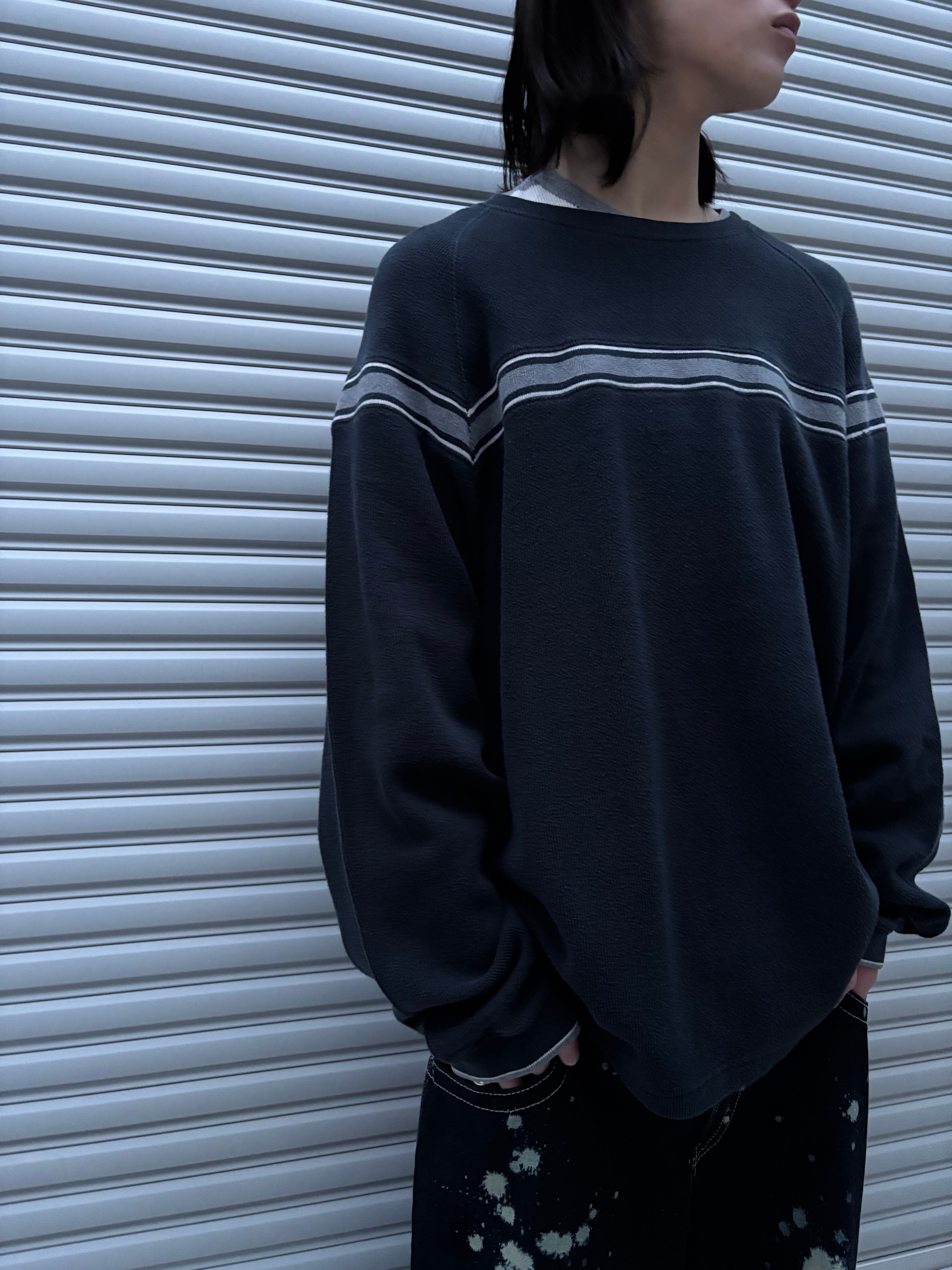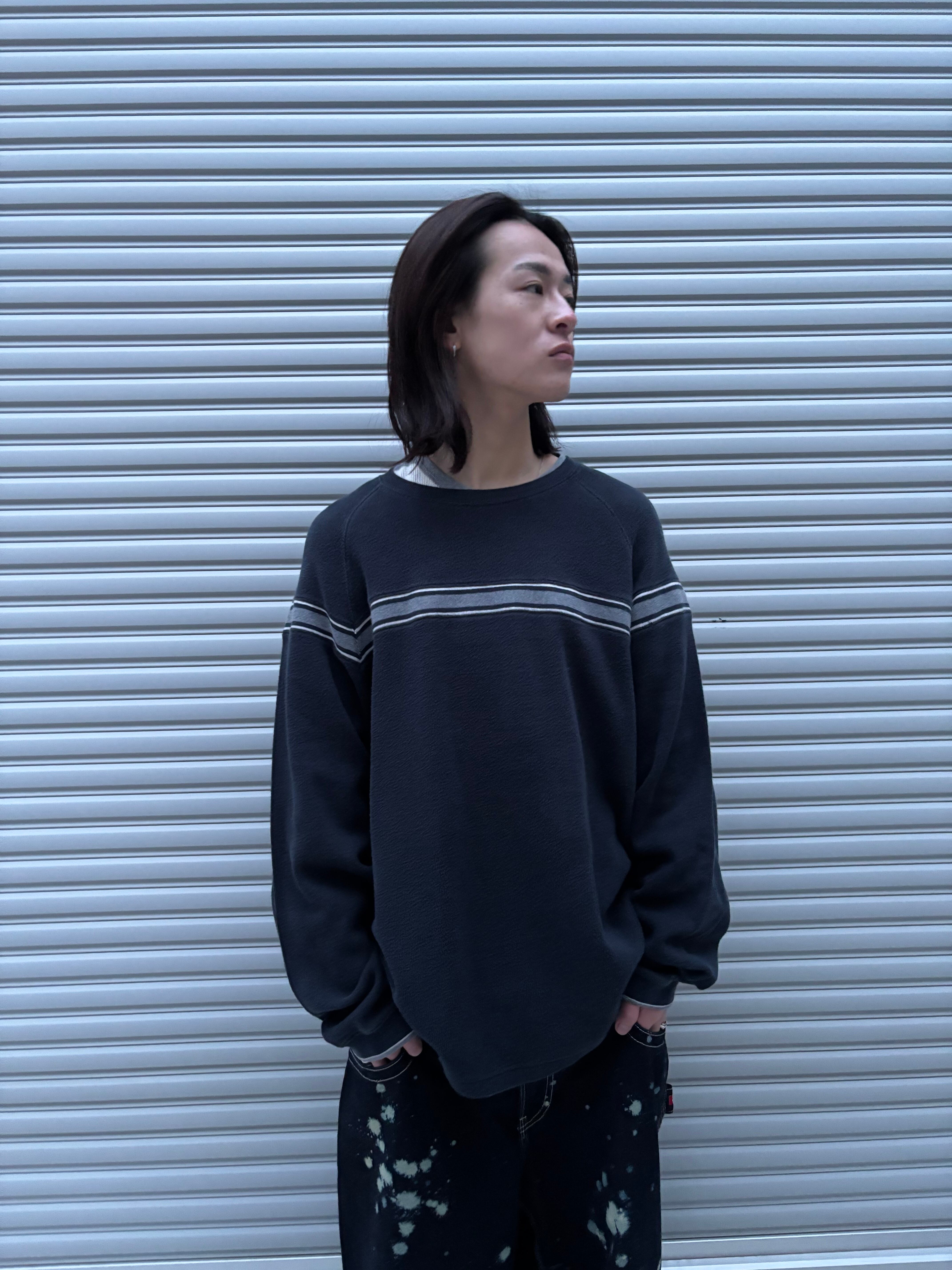 まさにストラクチャーといった色使いのラインニット。ラインニット界隈の中でも僕らが特に好きな袖まで繋がってるタイプかつネイビーという使いやすさしかない1枚。サイズ感も良いのでインナーでも1枚でも楽しめます。