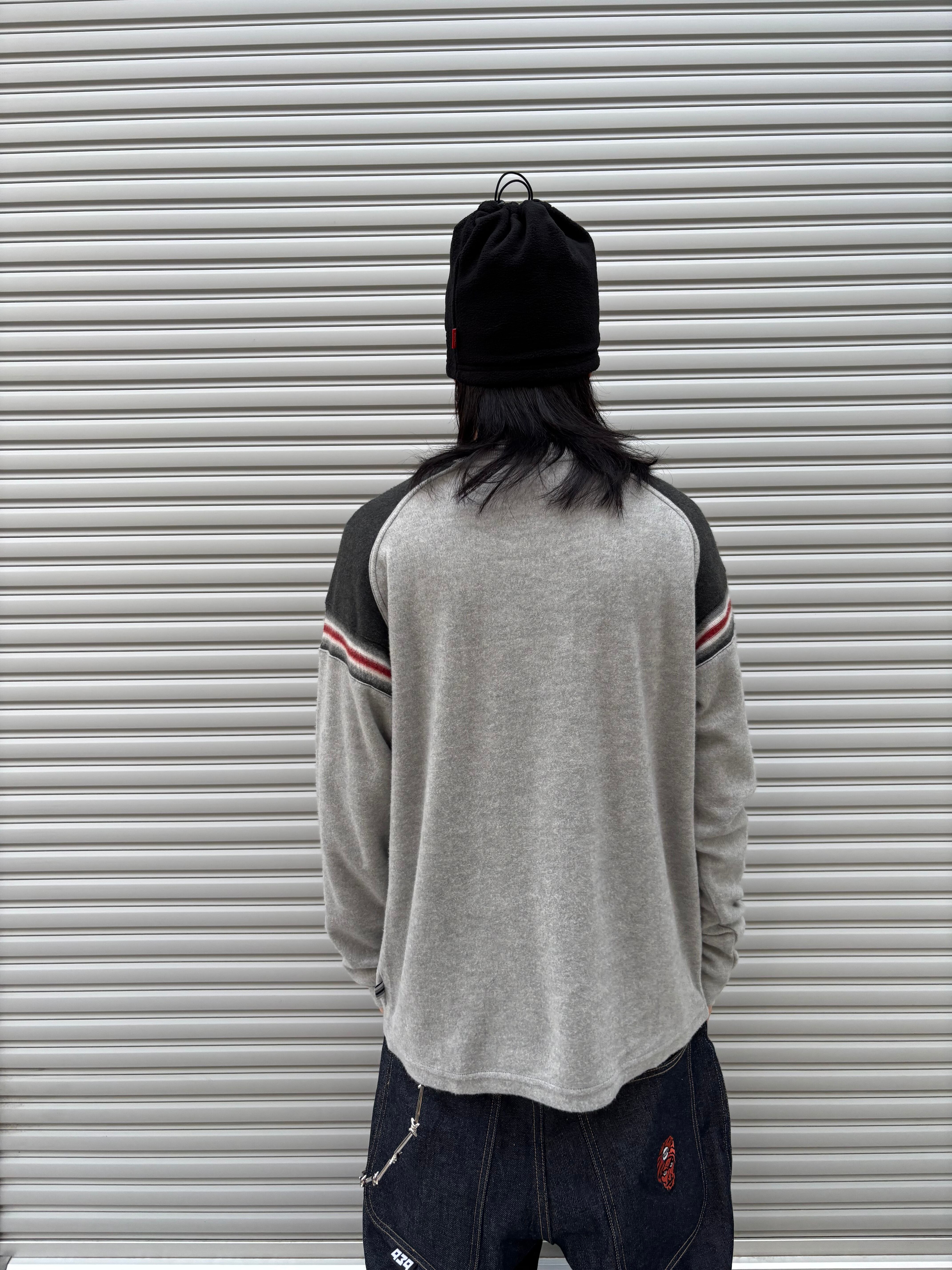 当方こちらのニットのほぼ色違いの様な1枚を私物で所持しておりますが秋冬はリアルに週3くらいで使ってます。丁度良い薄さで温度調節しやすく、アウター脱いだ時ちゃんとイケててめちゃくちゃ使えます。シンプルにカッコイイグレーベースとライニング、肩口だけチャコールになっているのもオシャレです。欲しいです。