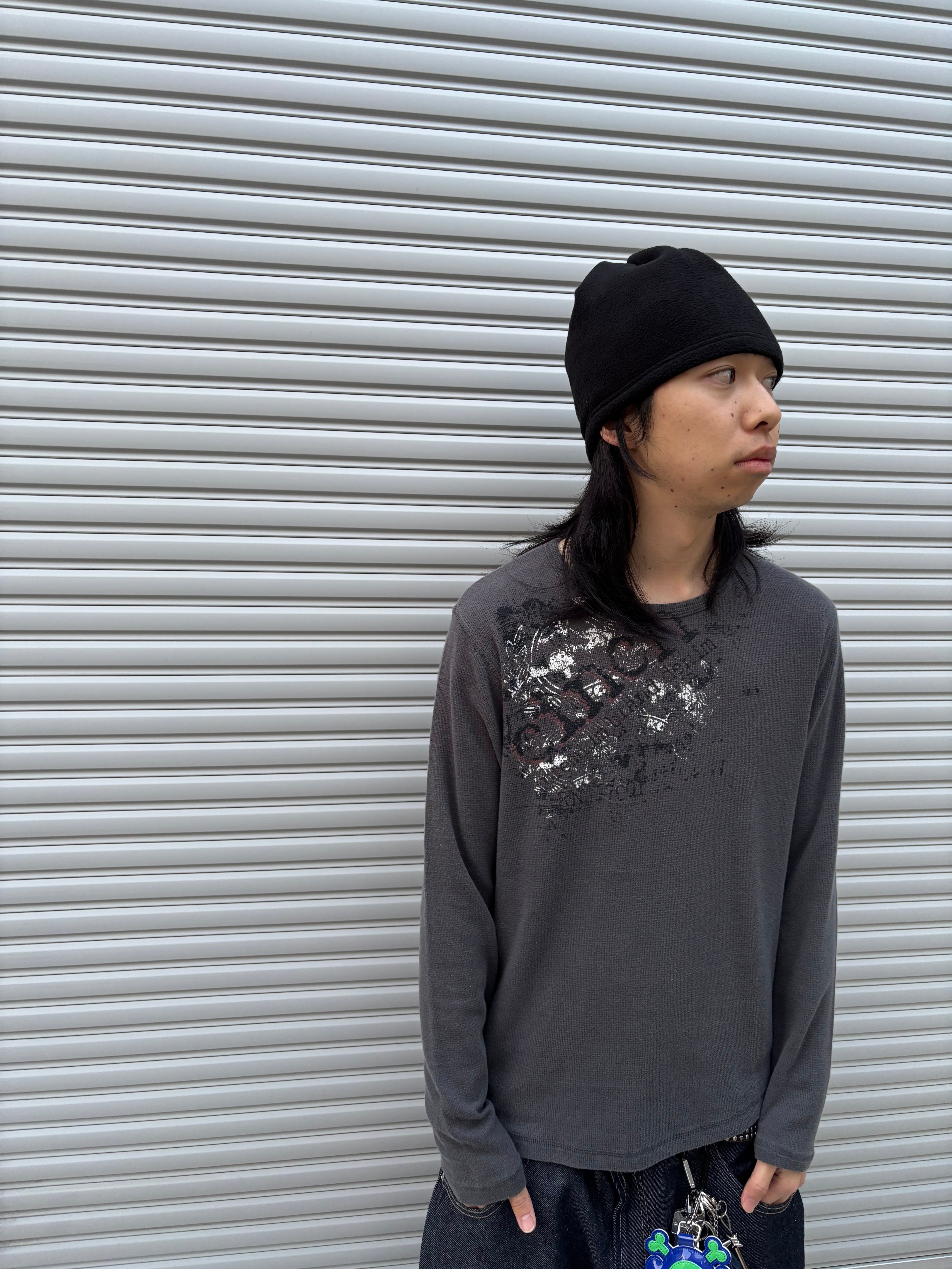 今回アメリカで数枚見つかった超絶Y2Kなデザインのサーマル。やっぱり着たらちゃんとかっこいいし、インナーとしてはもちろん、1枚としての戦闘力が高すぎるのが最高です。サイズ感も申し分ないです。