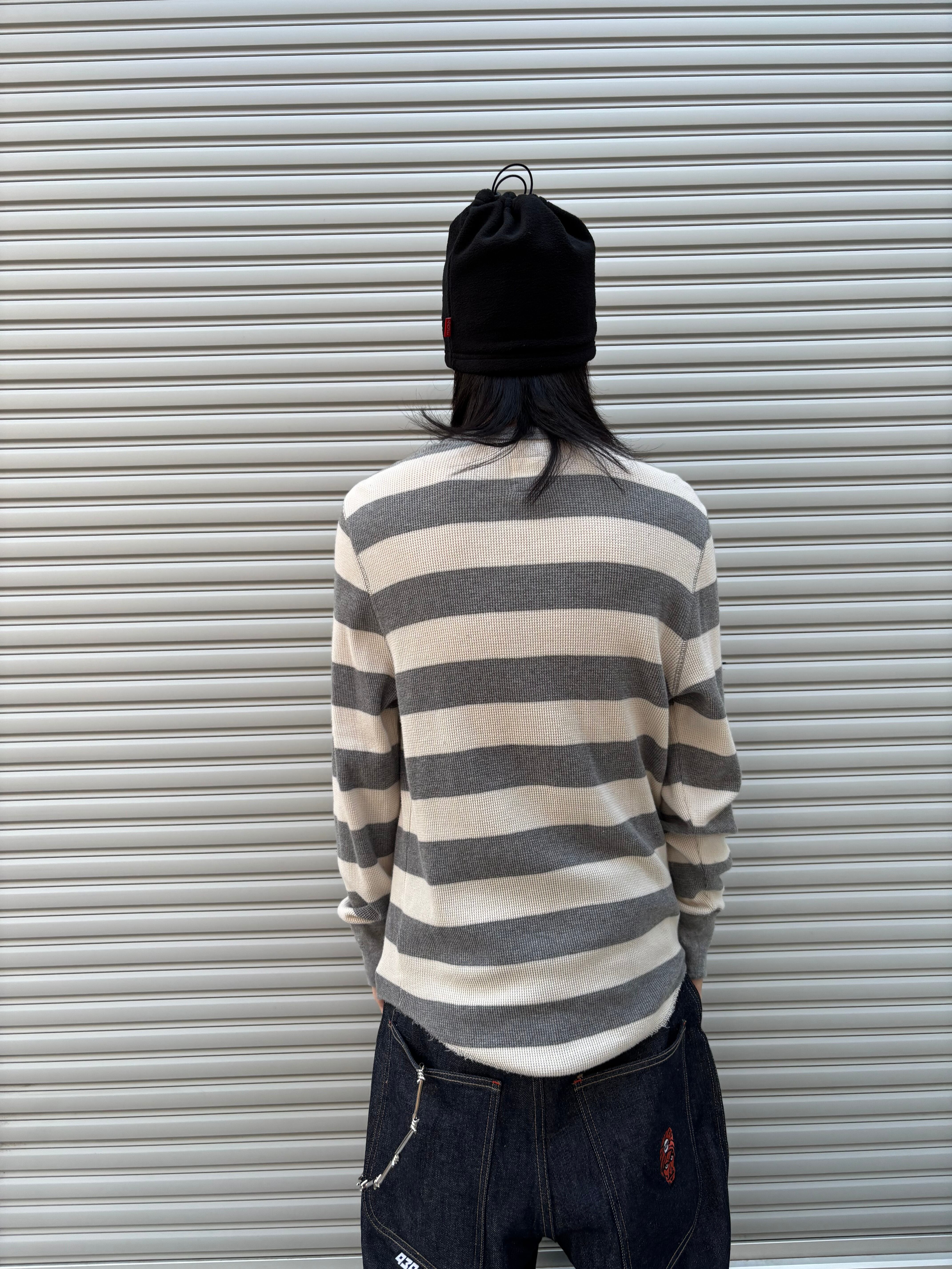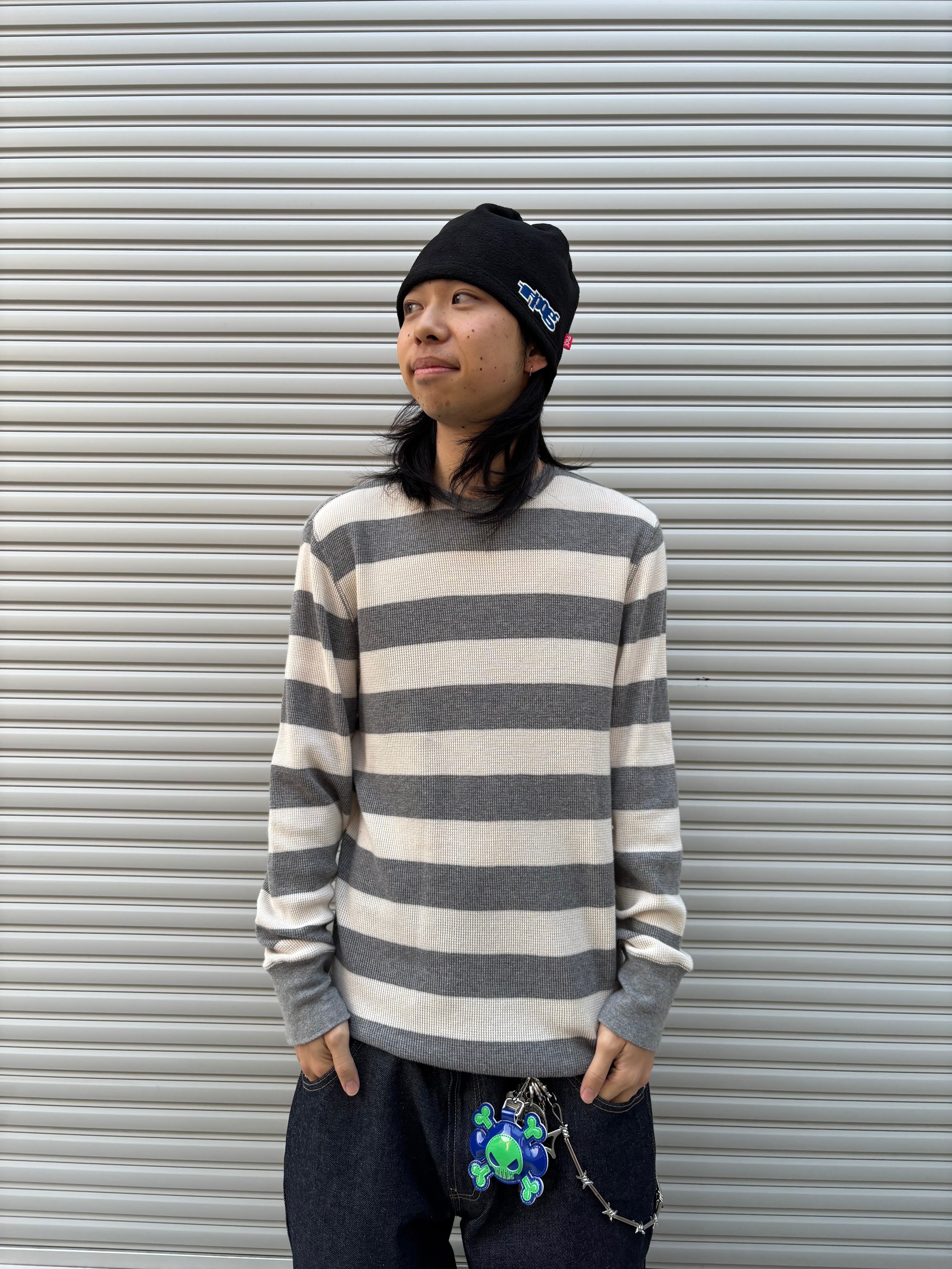 MOSSIMOとFADED GLORYのサーマルは他の会社のサーマルとは一線を画すクオリティで、生地の厚さやモチッと感が段違いです。しかも白×グレーの太ピッチボーダーで使いやすさも抜群。これは無限に使えます。