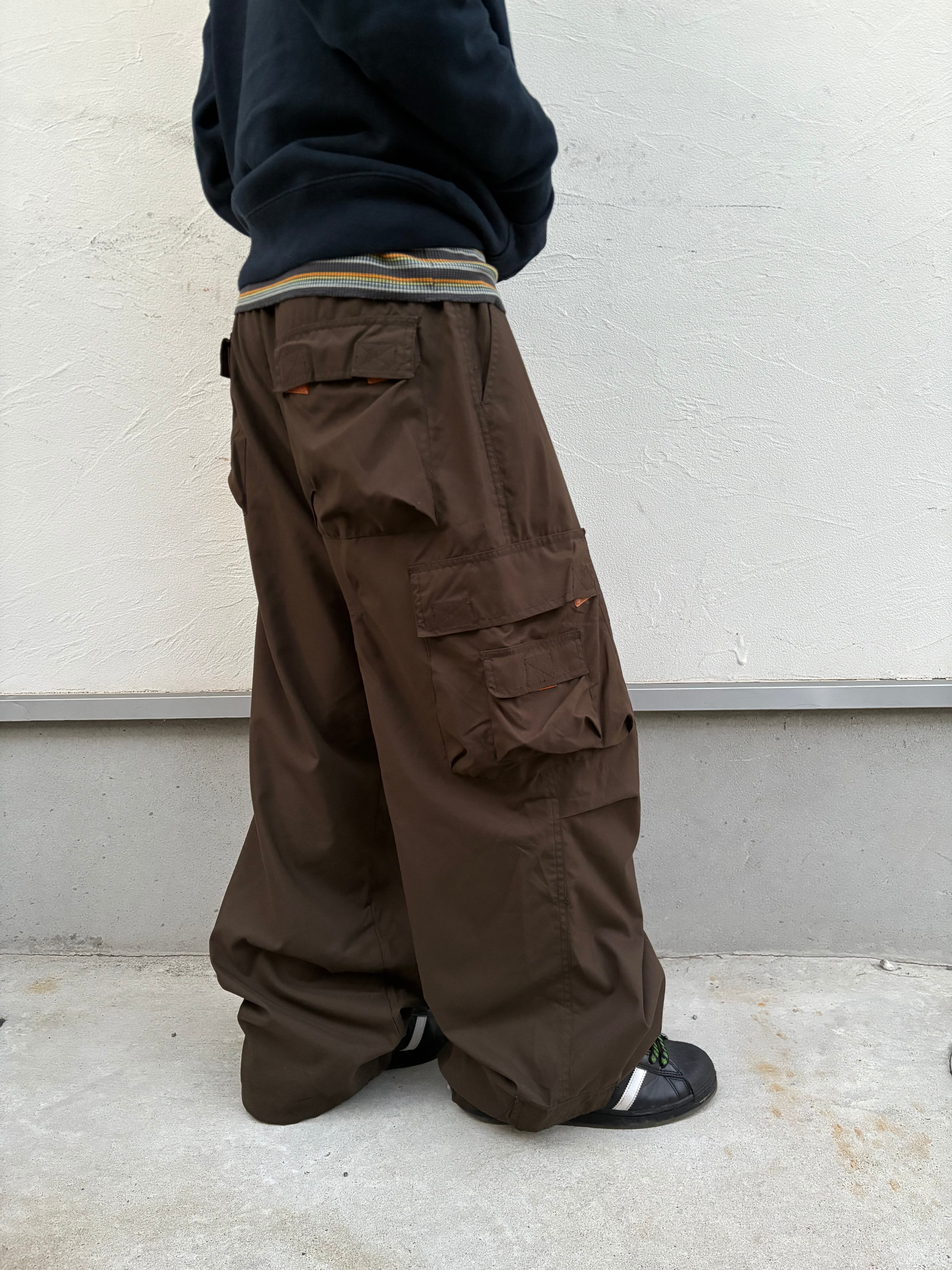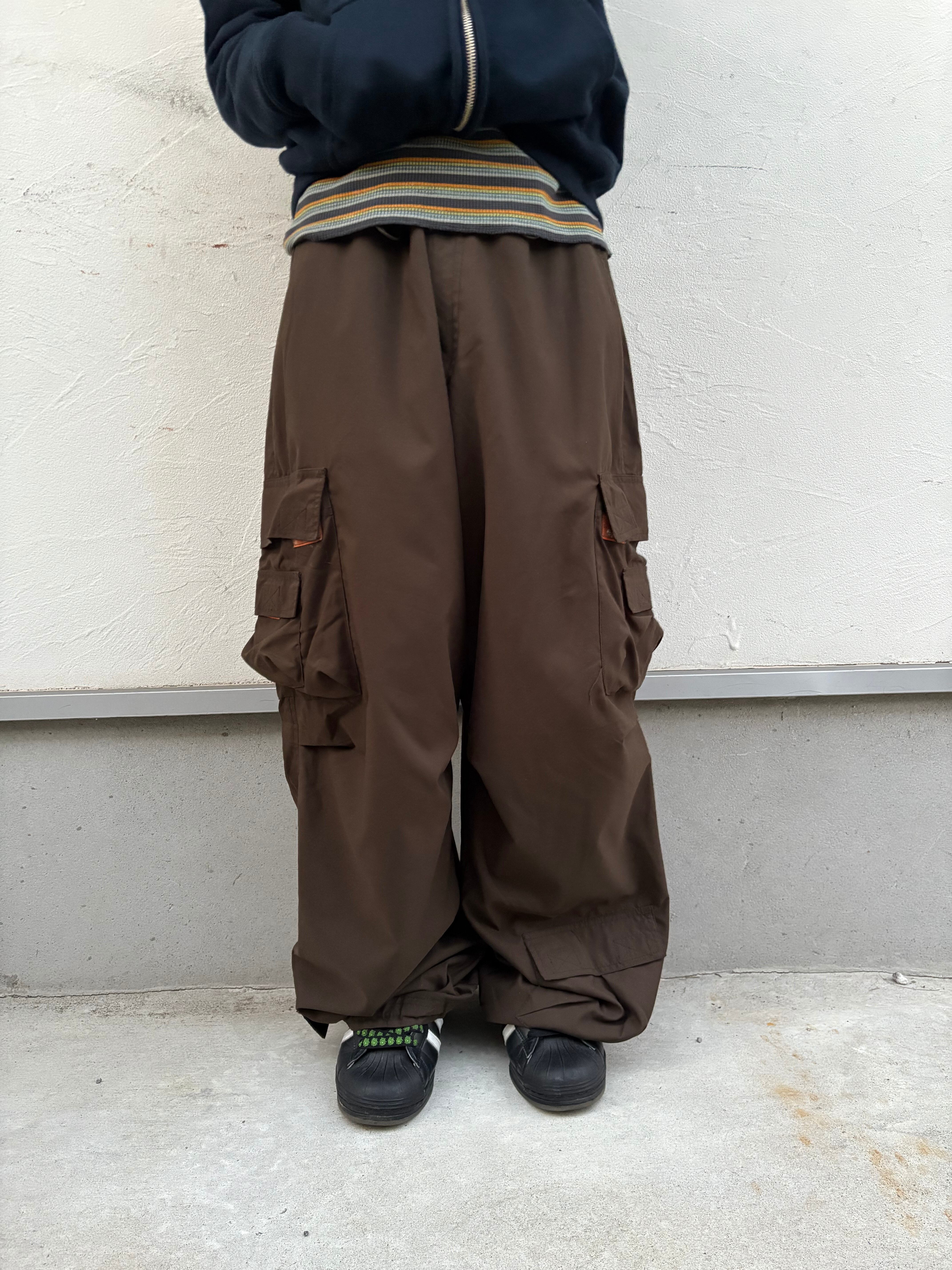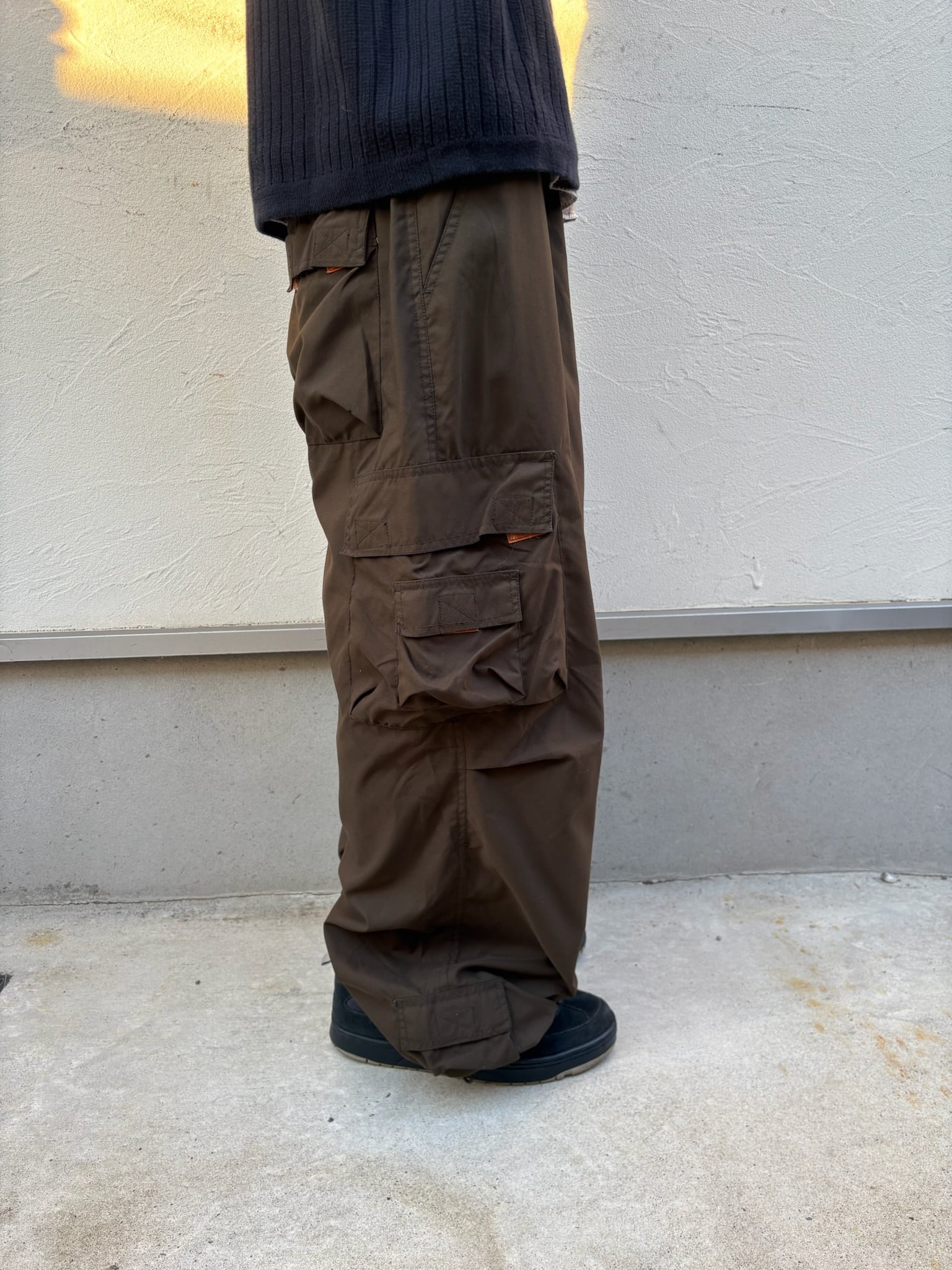まるでOld GAPのパラシュートパンツのような作りに加えて足元の謎ポケットやグッドなオリーブカラーでいい感じに味付けされたCRBのギミックパンツ。166cmから178cmの自分までいい感じに履けるサイズなのもありがたいです。