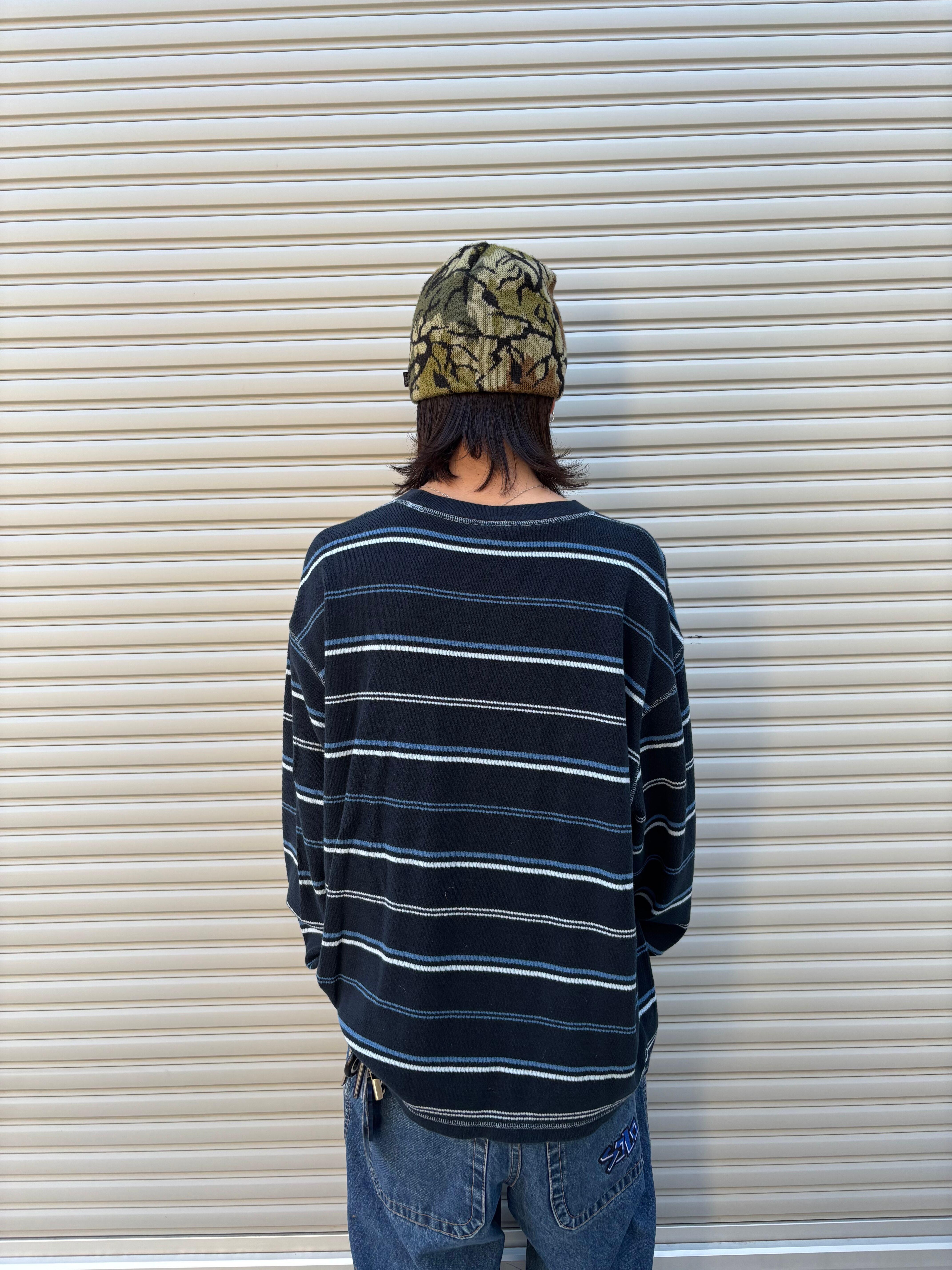 ゆったりサイズ×ナイス配色でインナーはもちろん、1枚でも様になるスグレモノサーマル。身幅袖丈はしっかりXLのサイズ感かつ着丈は短めで超絶ボックスシルエット、ネイビーベースのボーダーも最高に可愛いです。