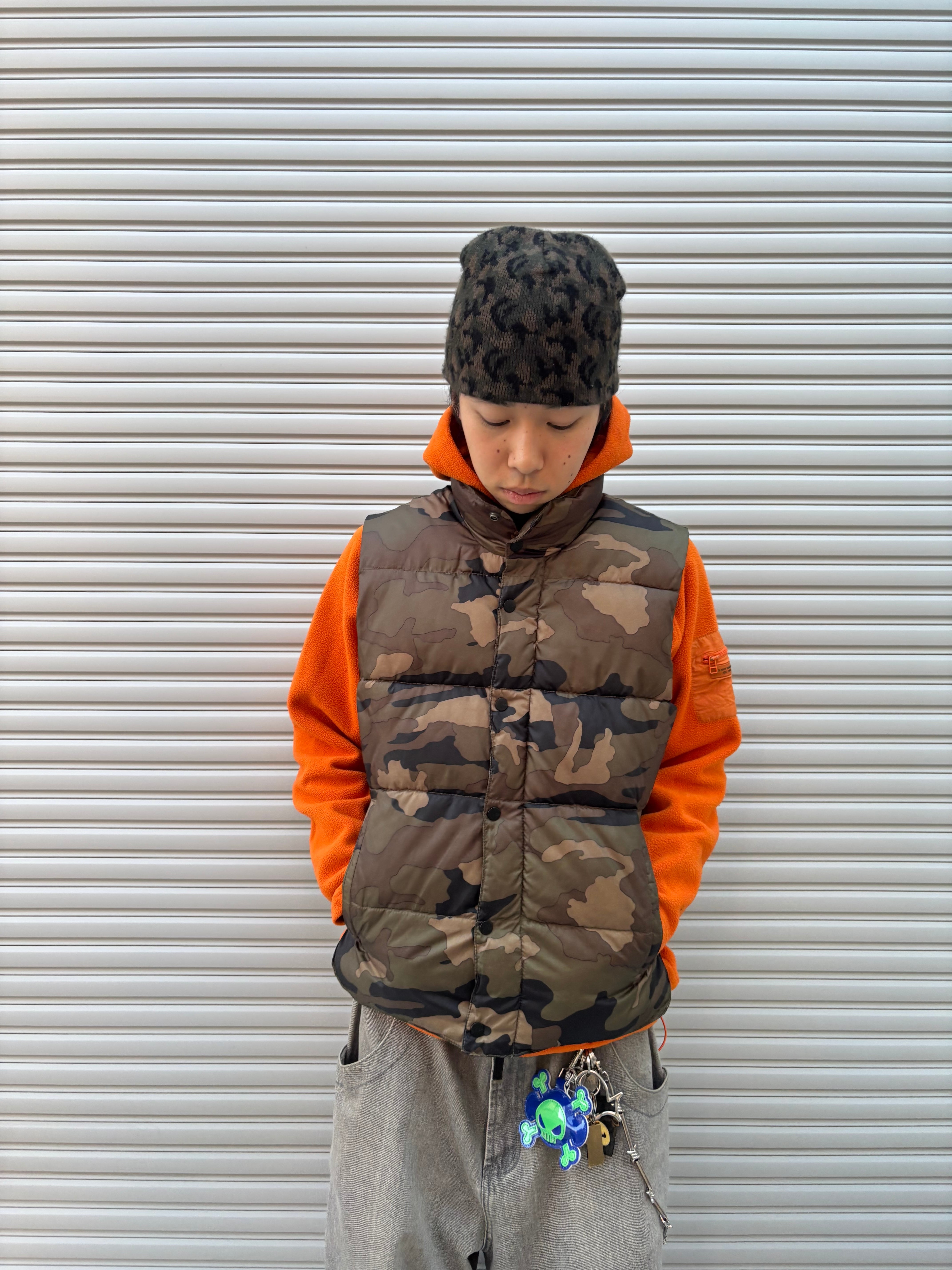 ちょっと古めのドネのカモパフベスト。カモの色味が大人びてて、近年モノと比べるとかなり着やすく、落ち着いたコーデになりやすい秋冬にオシャレにカモを取り入れられる神アイテム。サイズ感もゆるっとめなSなのでどなたでもいいフィットできちゃいます。