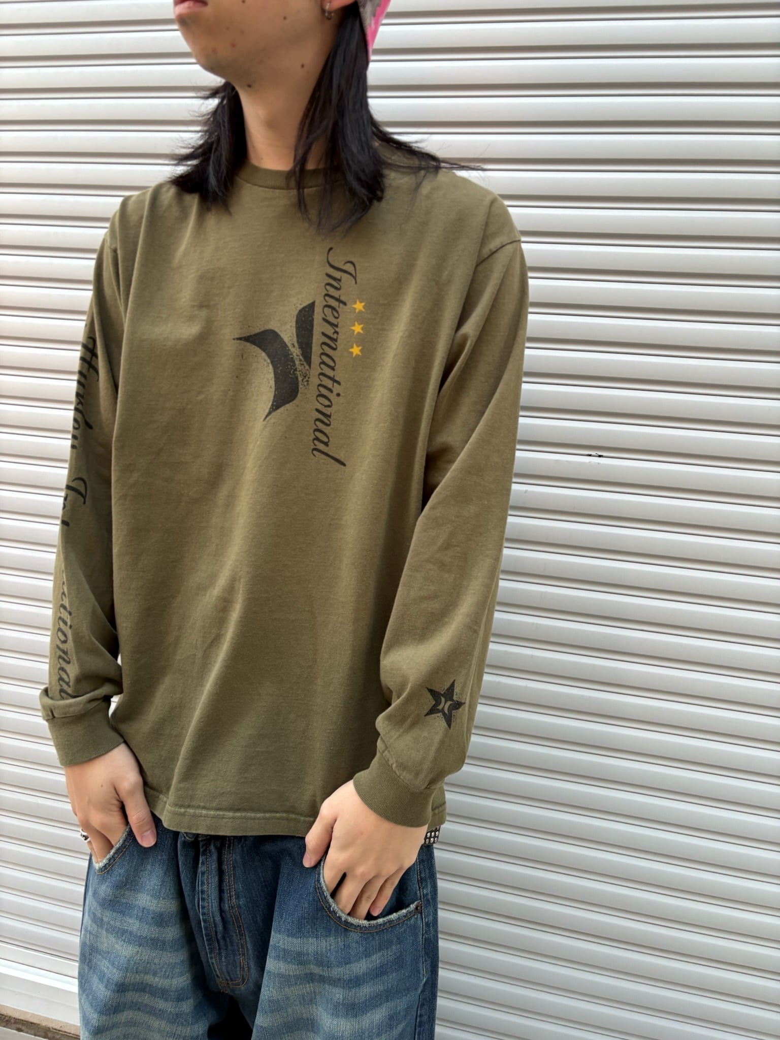 00年代頃のサーフブランドの雰囲気が感じられるカッコよすぎるロゴプリントに当たり前のように入った袖プリ、ボディの色味とサイズ感、全てが整っているありがたすぎるロンT。インナーでもめちゃくちゃ活躍しそうです。