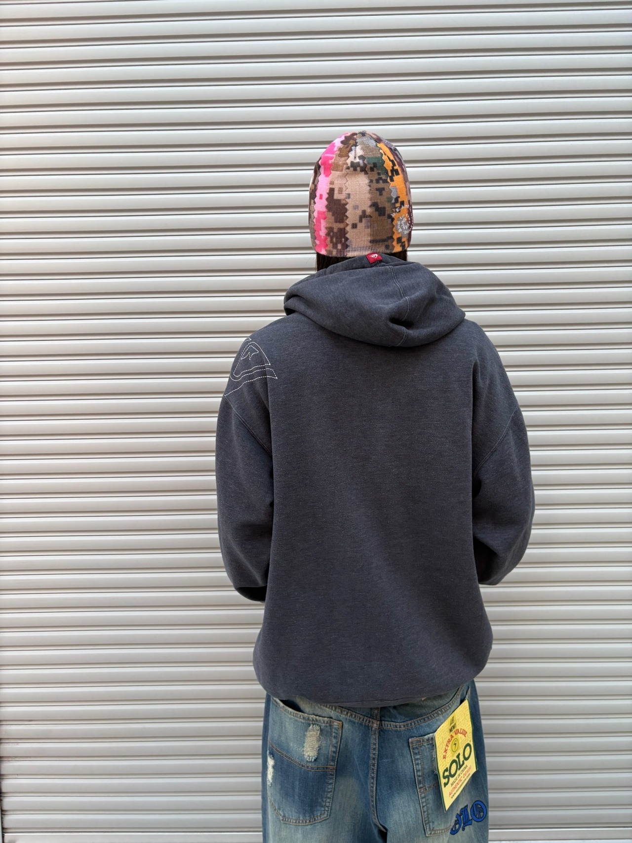 安心と信頼のカッコ良さのフロントロゴ、肩口の刺繍ロゴ、さらにはフェード感ともうやり尽くされている完全体のクイックシルバーのフーディ。堀内工房により裾の絞りも付いているのでギュッと絞ってお楽しみください。