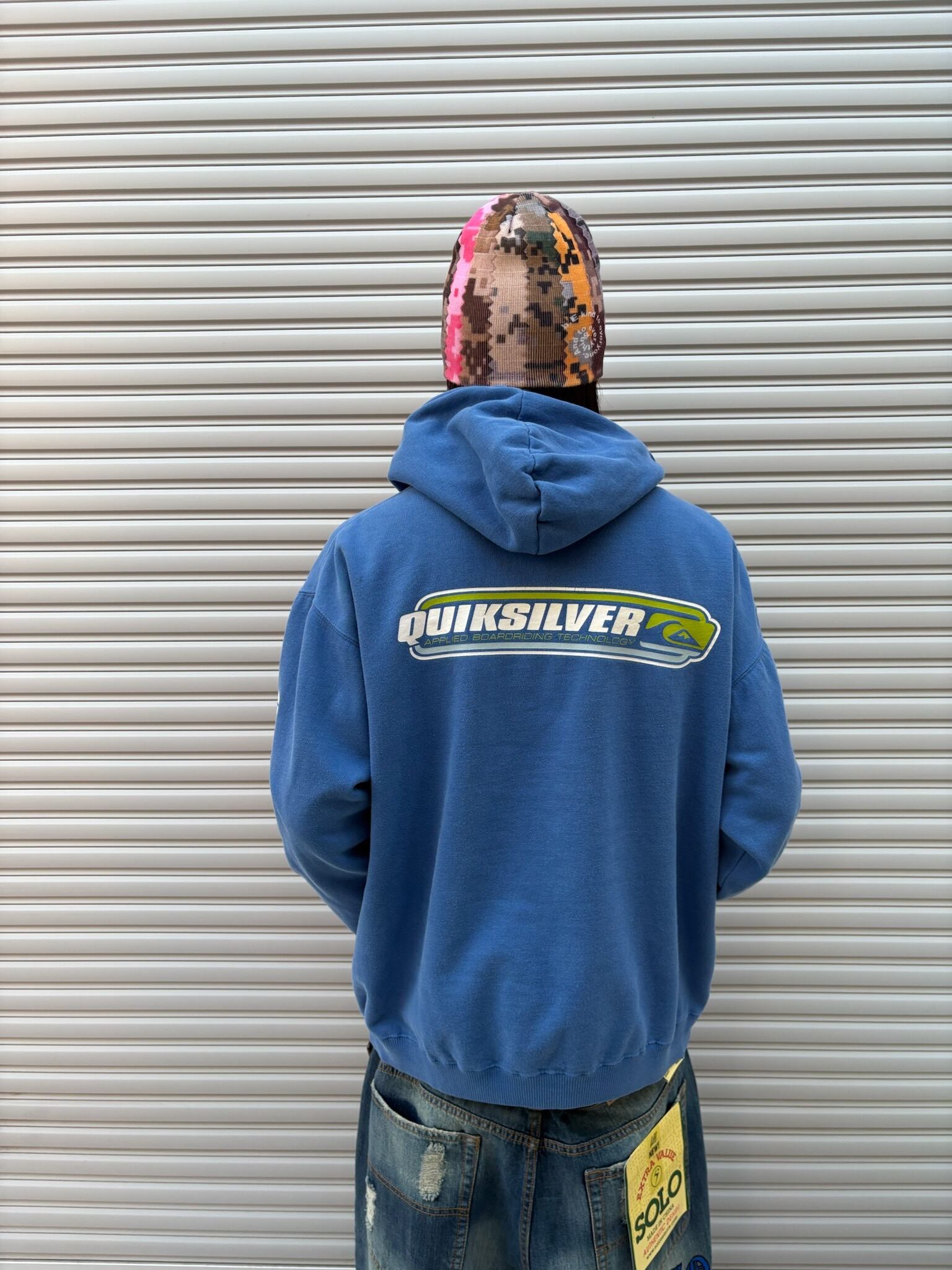 クイックらしいサーフ感溢れる透き通る海のようなボディ、そこに映えるホワイトとイエローのフロント、袖のロゴがカッコよすぎるフーディ。しかもサイズ感もM~Lくらい、リブも生きてるので即一軍の1着です。