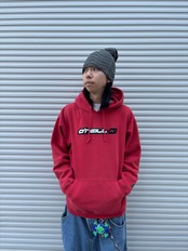 まさに今着たい赤って感じのフェードした赤ボディに流石のデザインセンスのロゴと超絶ボックスシルエットでサーフ系フーディの模範解答のような1枚。フェード赤はデニムとの相性が桁違いに良いのでお好きなデニムと合わせてどうぞ。