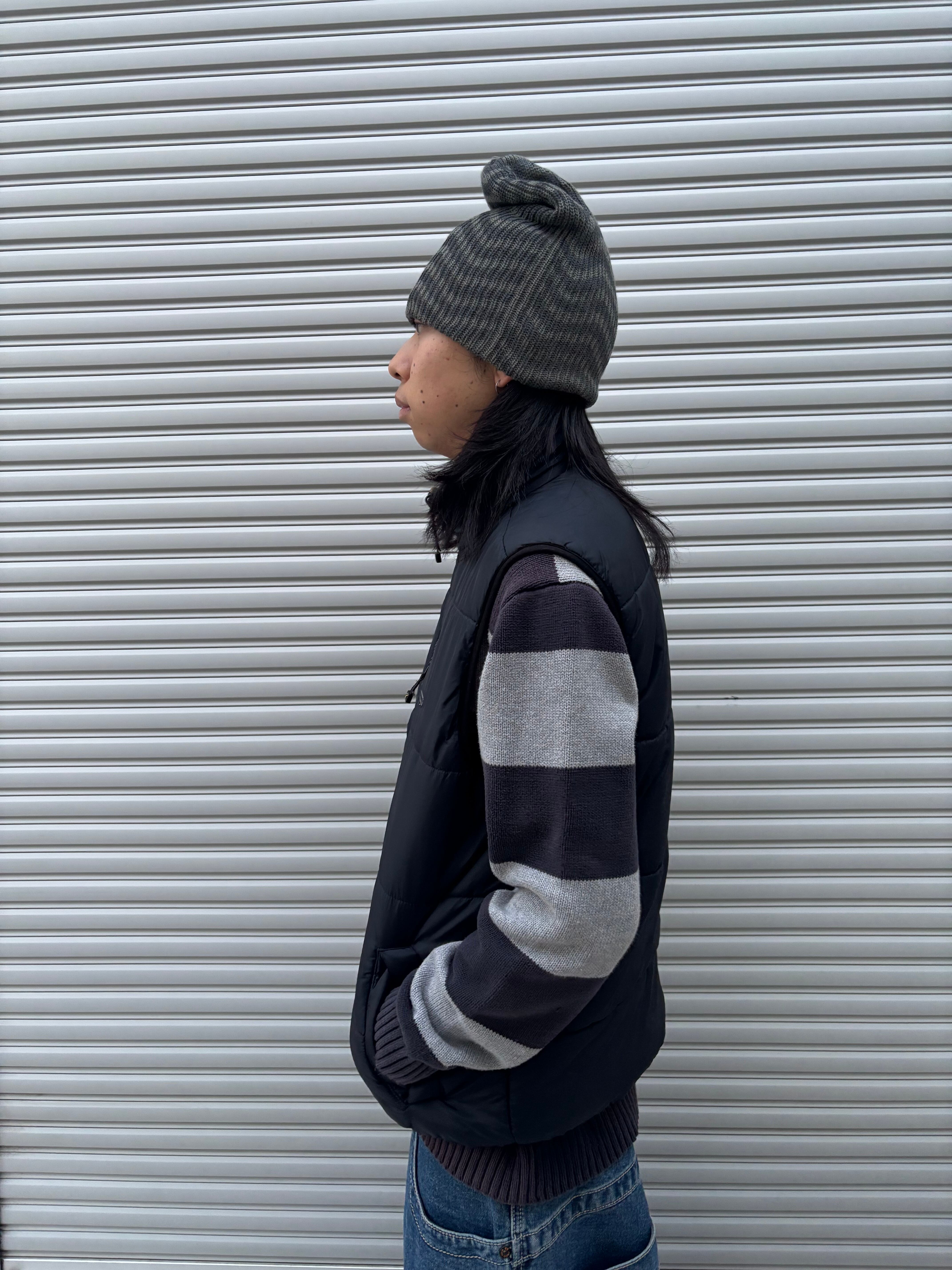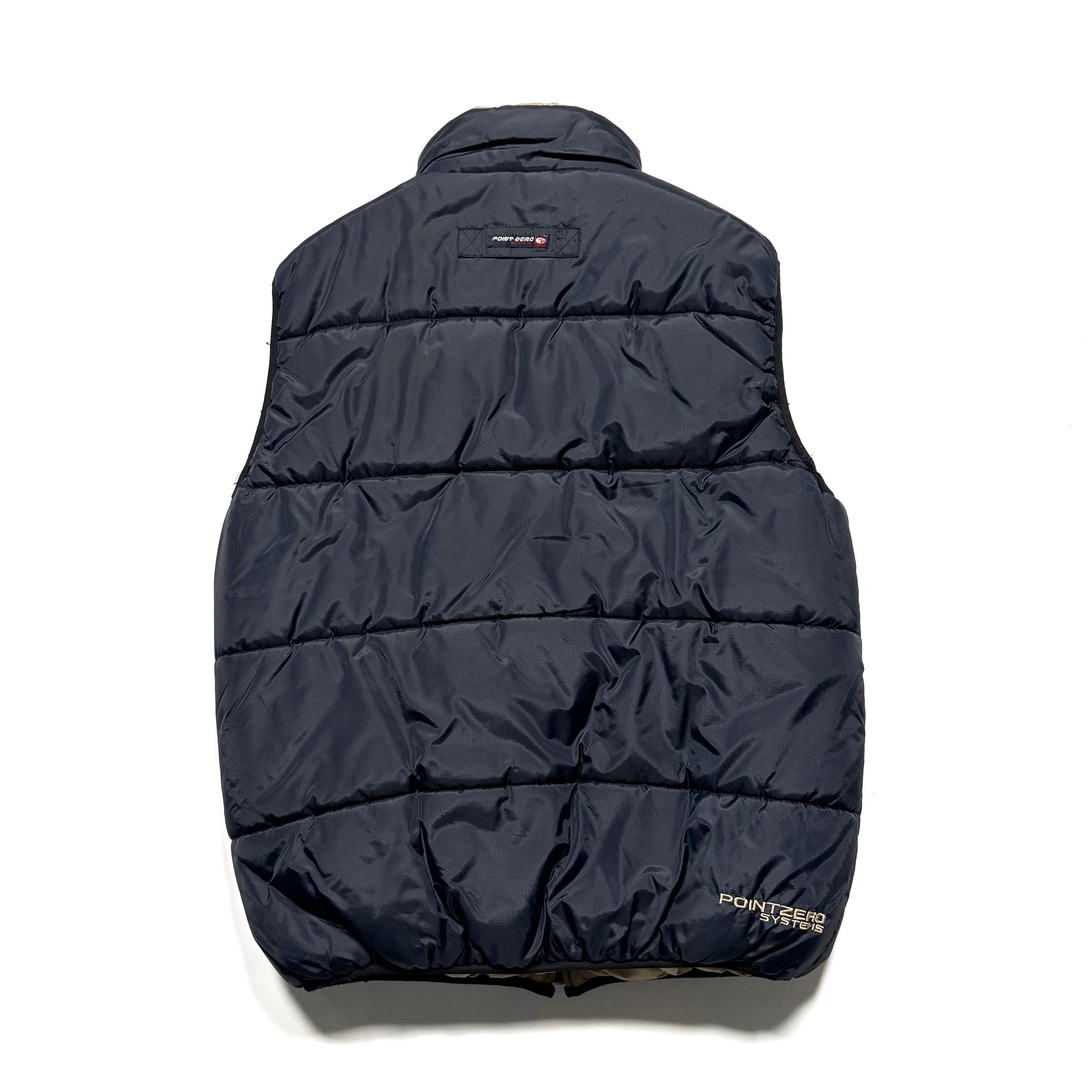 ラインニットといえばのPOINTZEROからまさかのパフベスト。しかもリバーシブルでネイビー、ベージュの両A面仕様。シンプルながらもZIPの持ち手やバックの刺繍などでらしさがあって超クール。サイズ感も完璧で、アメリカ古着らしい書き込みもあって最高です。