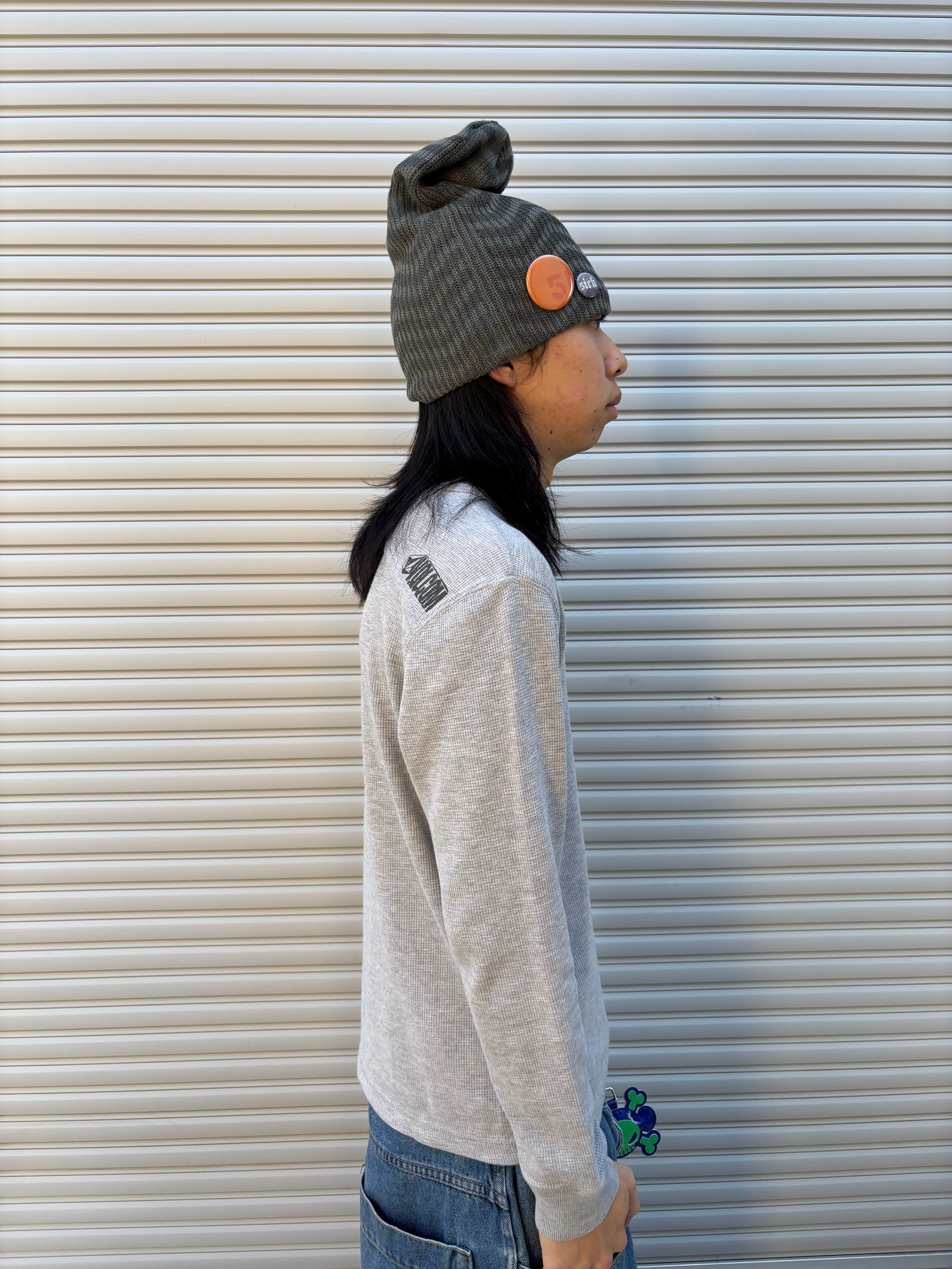 いつも通りのバックの変なステッチ(褒めてる)は相変わらずで、この1枚はシンプルなグレー、サイズ感もMでストレスなく着られるピタッとめで使いやすさ◎。1枚でももちろんめちゃくちゃカッコイイです。
