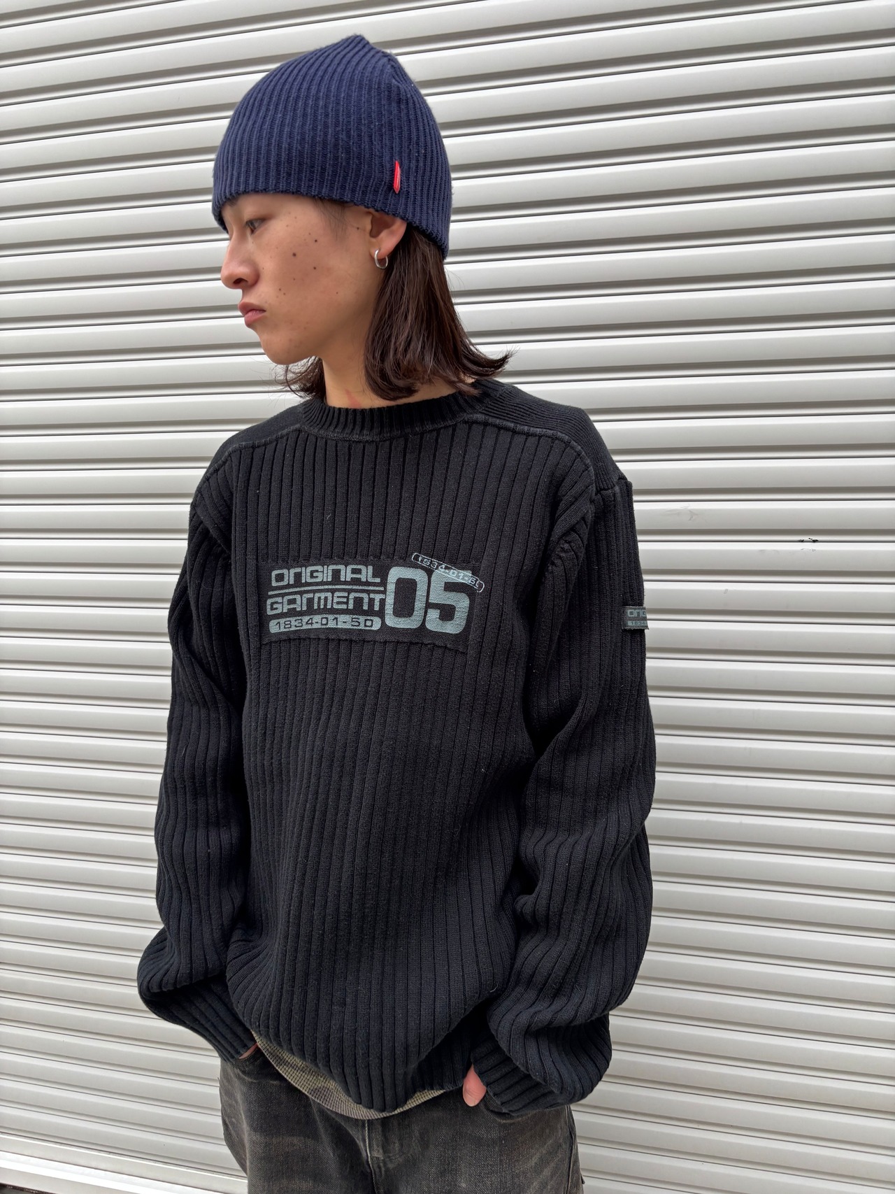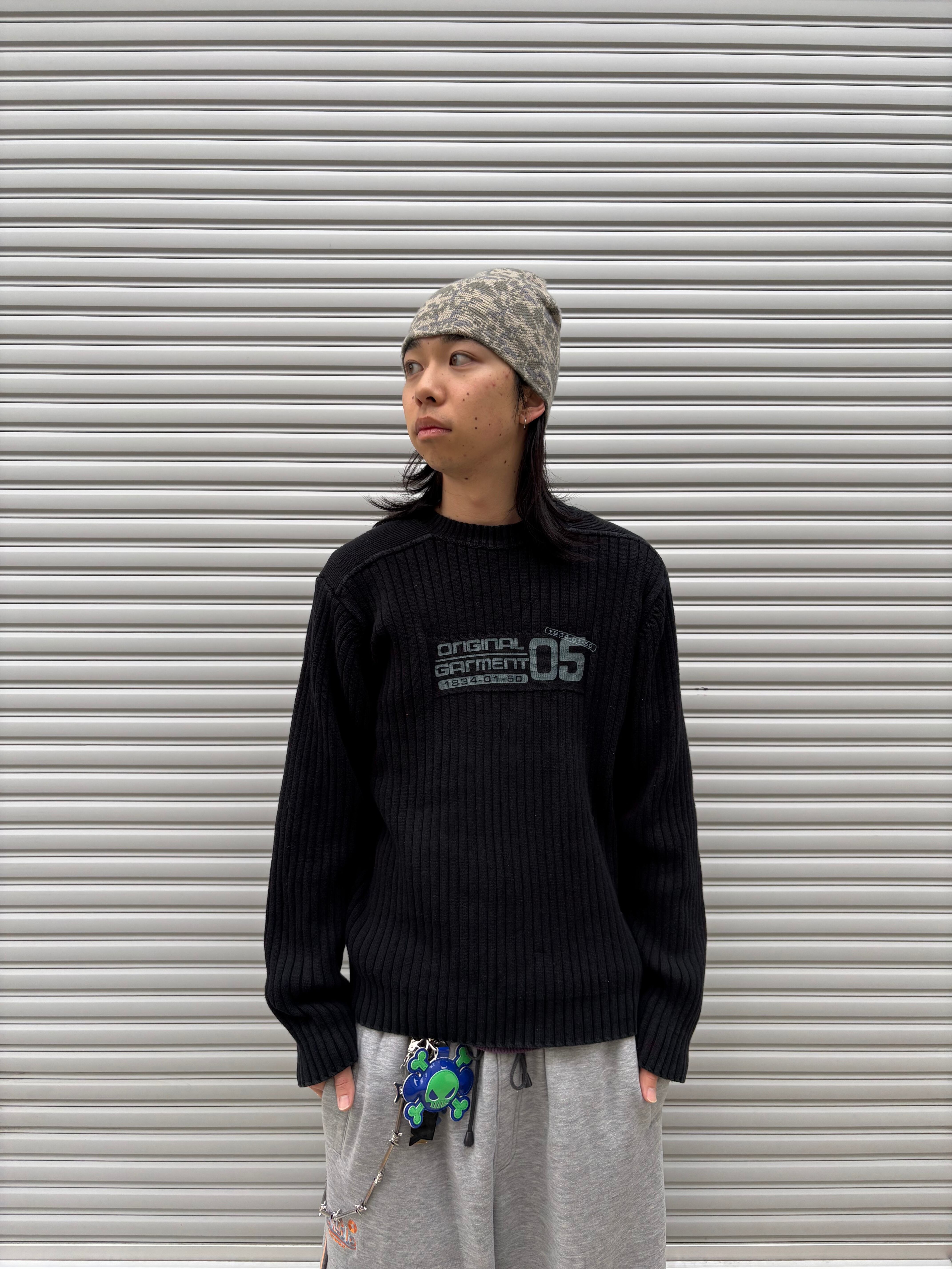 ユーロらしき雰囲気を感じるJulesのコットンニット。ナンバリングやフォントがいかにもY2K、縦編みの落ち感も綺麗でブラックのボディとの相性も抜群です。こういう服にバギーパンツ合わせる時めちゃくちゃファッション楽しいです。