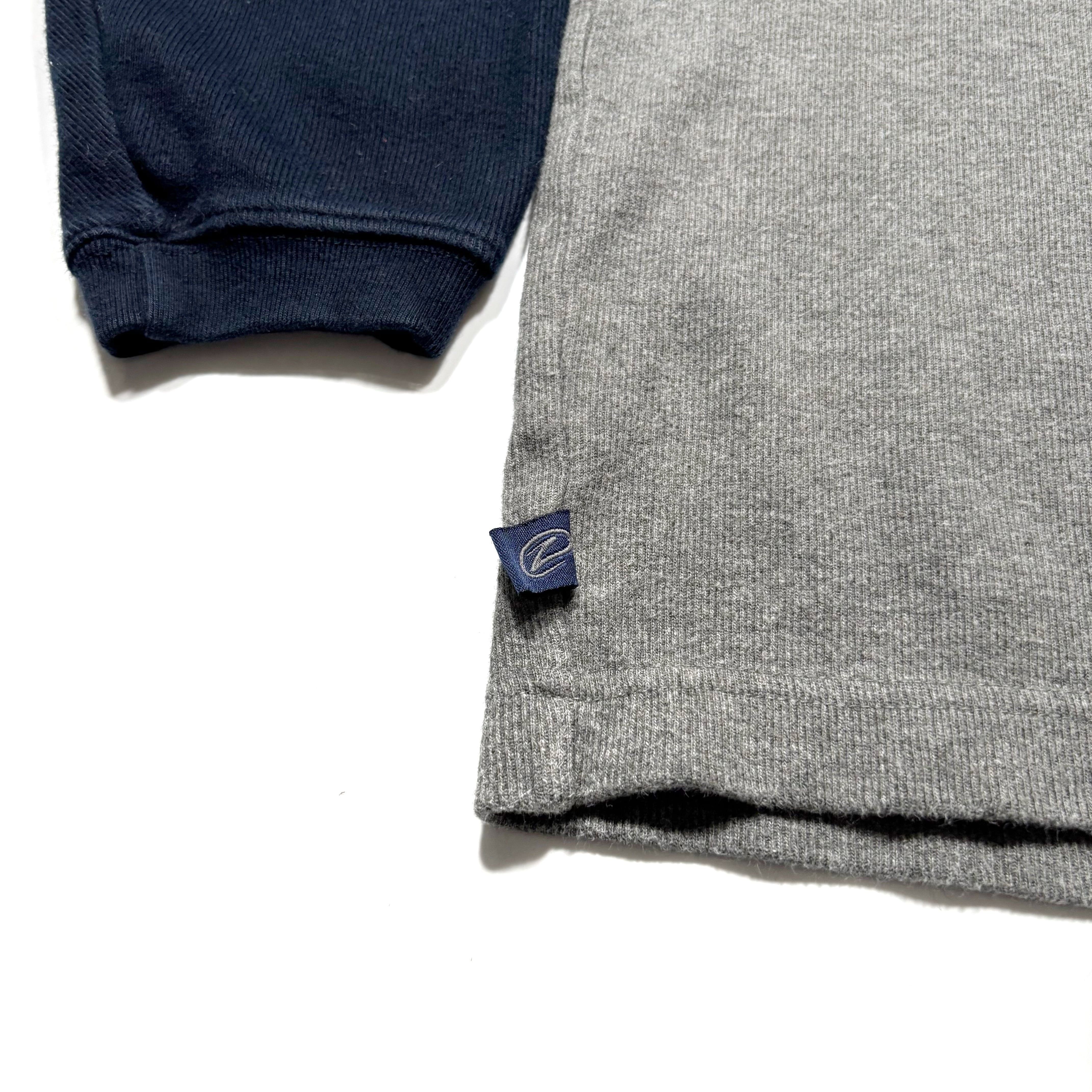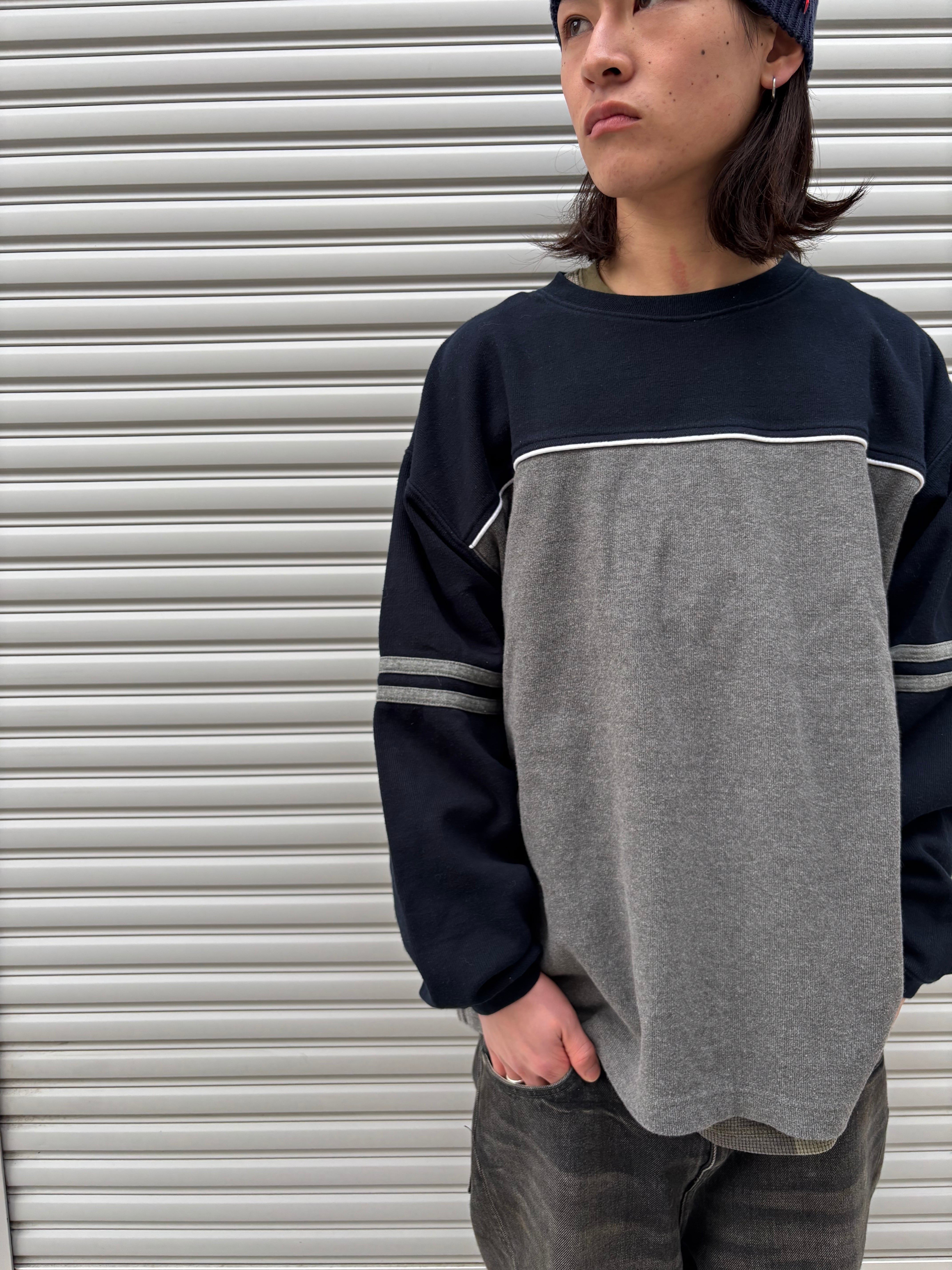 POINTZEROの別ライン?であろうZERO TOLERANCEのラインニット。ネイビーグレーの間違いないツートンとさすがのサイジング、ロンT感覚でサラッと着られるので使い勝手が本当にいい便利すぎる1枚です。