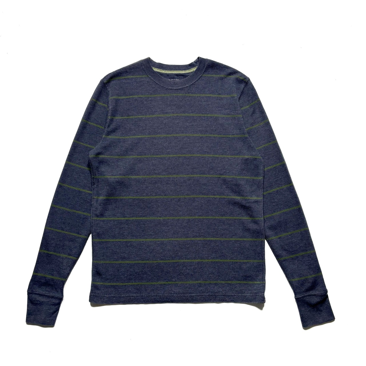ネイビーベースのかなり使える色味のボーダーサーマル。コットンポリなのでモチっと感もあり着心地もバツグン。秋冬もTeeを着たい我々ファッションオタクにはピッタリのアイテム。
