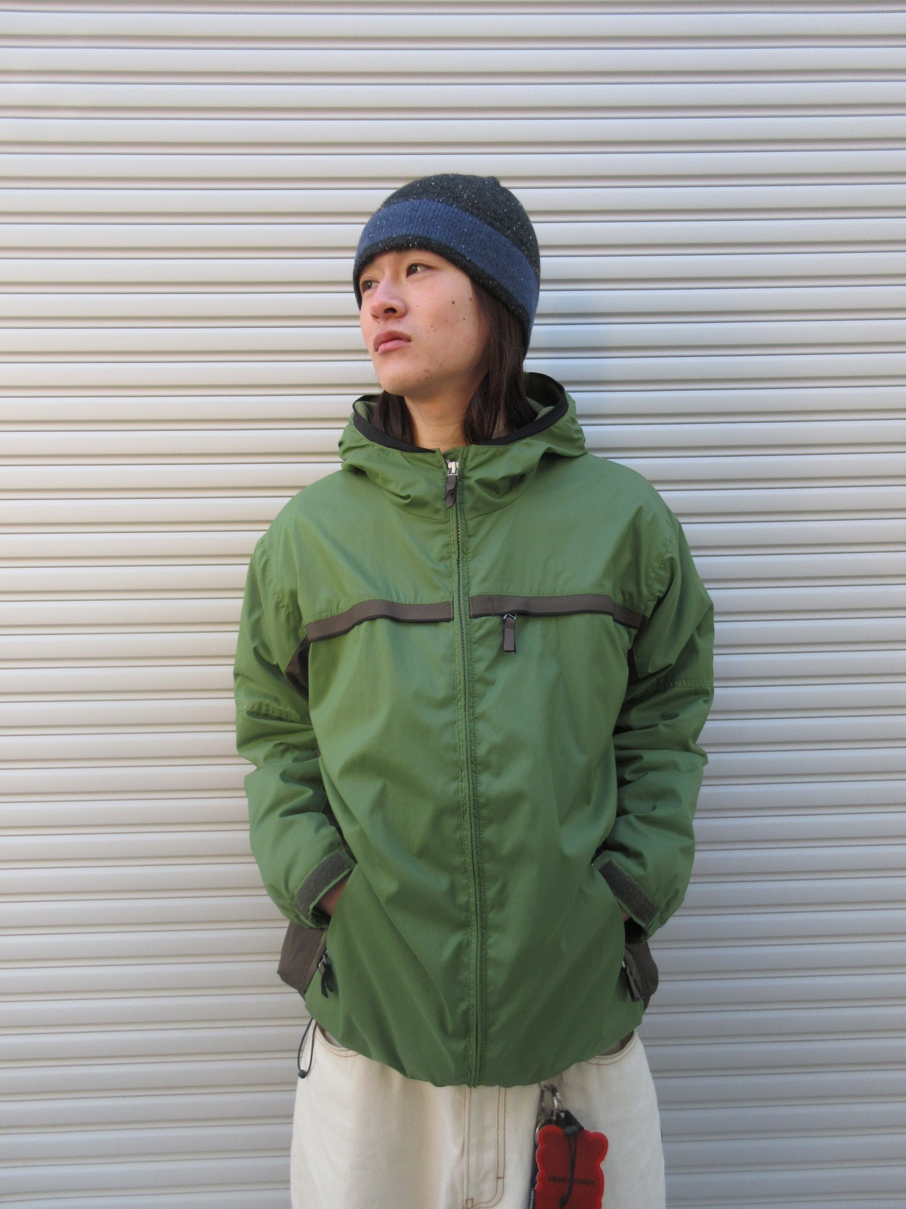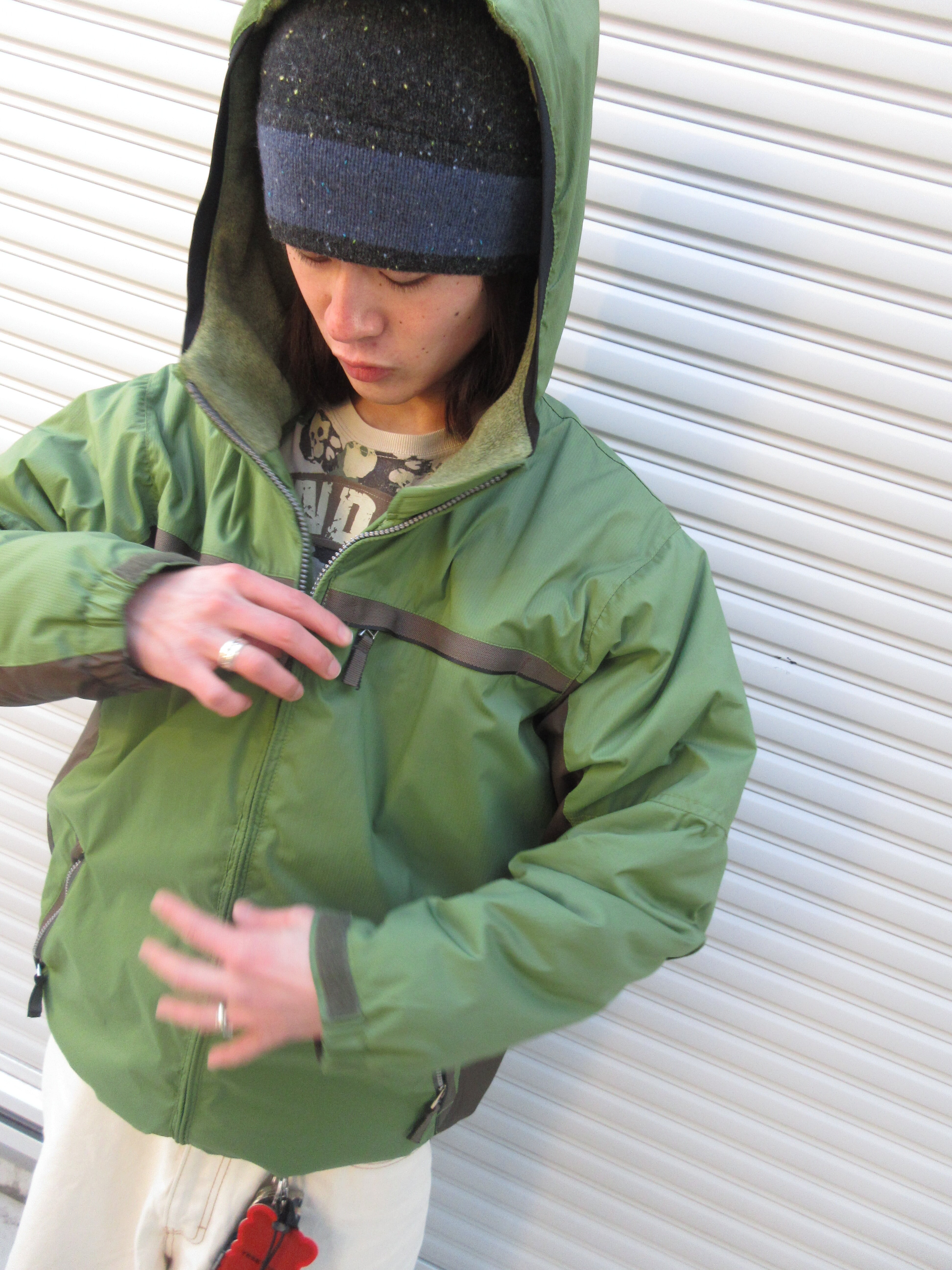 アメリカのキッズの大きさを思い知らされることになったジャケット。普通にメンズLサイズくらいのサイズ感で、尚且つ大人っぽいグリーンの色使いとデザイン、しっかりフードも付いていて裏ボア使用で温かさも抜群。童心を忘れない大人にピッタリの1着です。