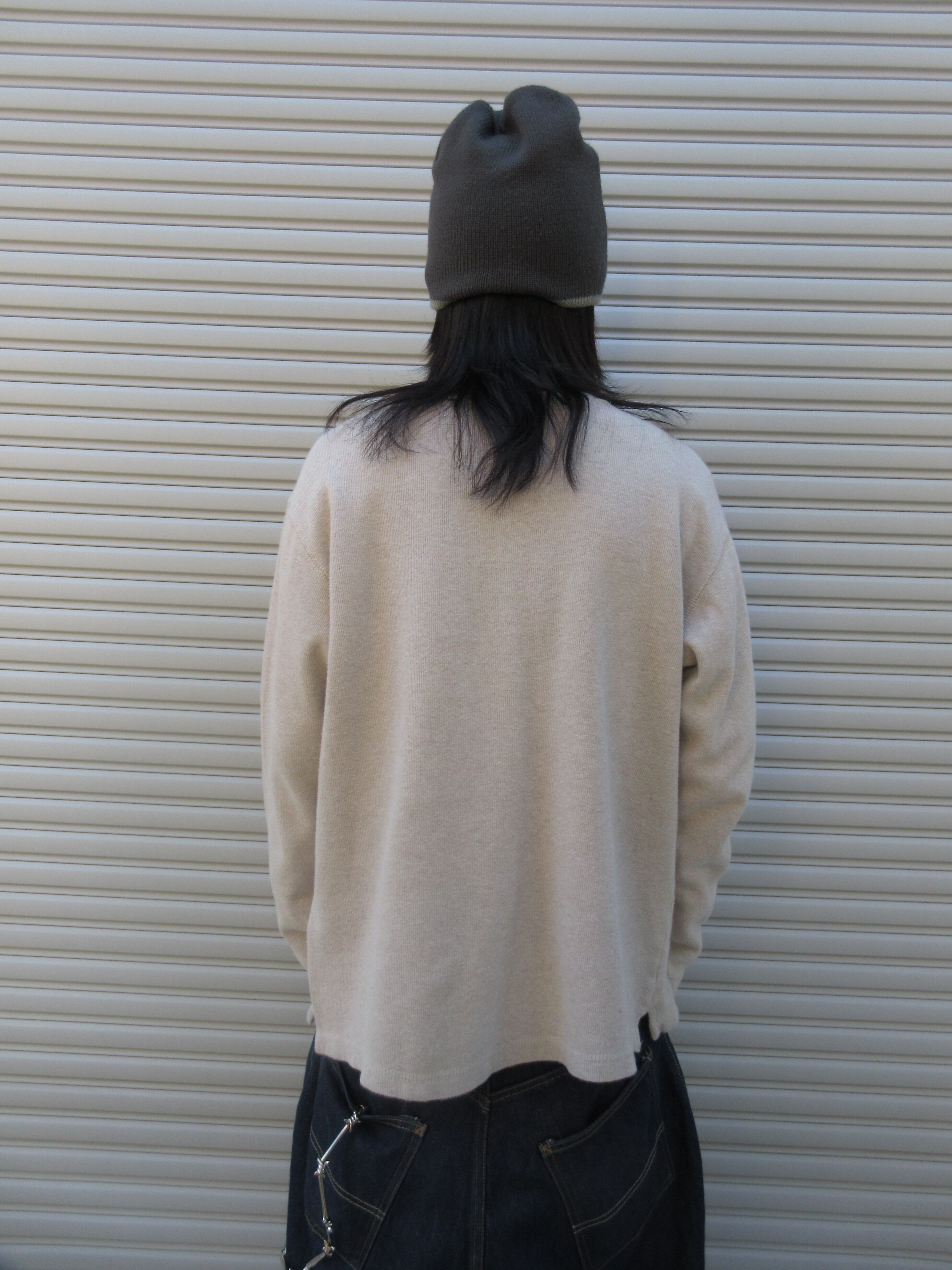 BASIC EDITIONらしい正にベーシックな色使いがかなり気分なニット。モチモチなコットンとゆるっとボックスなサイジングの相性が最高、大人カジュアルに着こなせる便利な1枚です。
