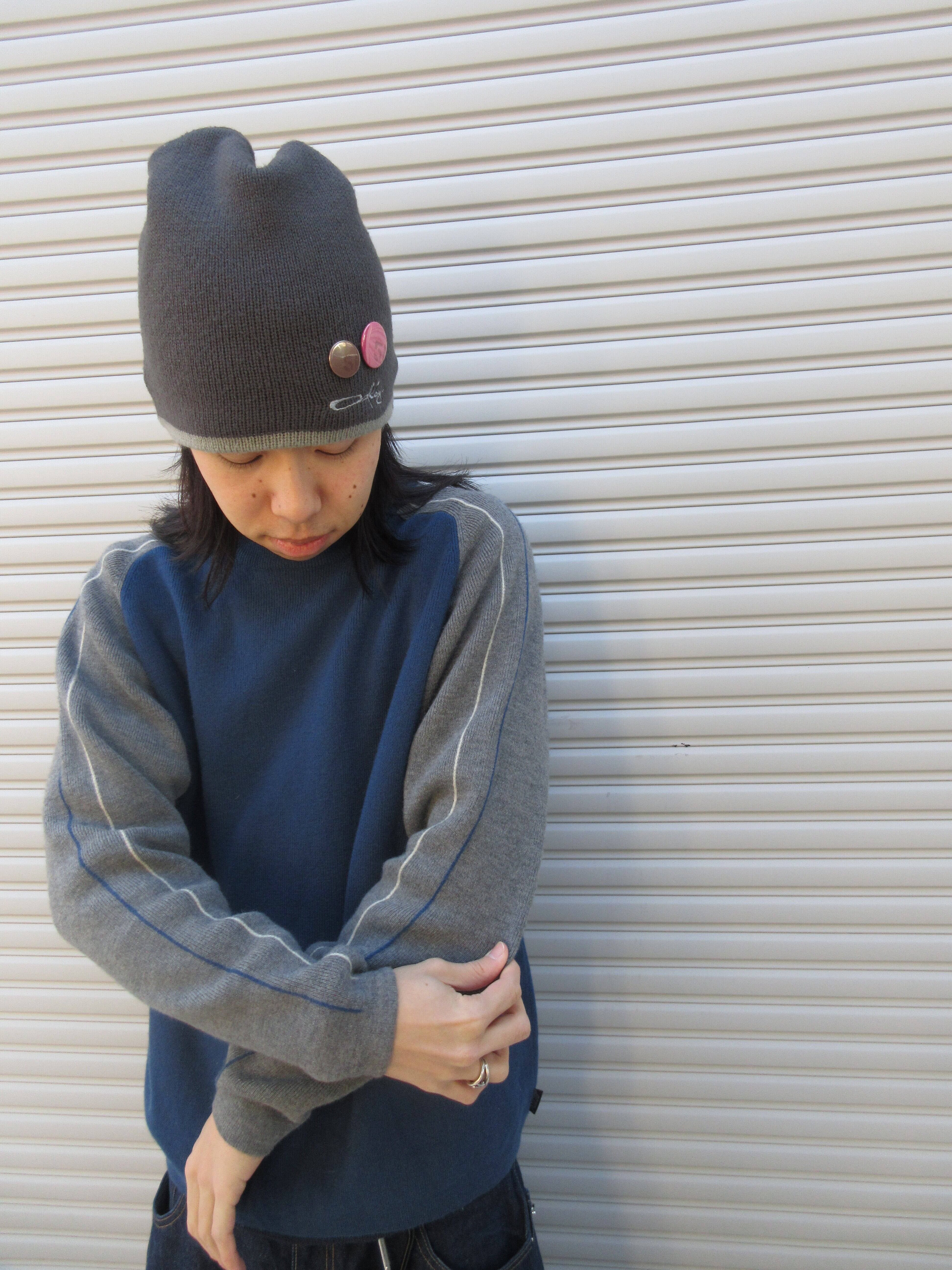 わたくしこの年代のAEの大ファンですが、このニットはその中でも頭ひとつ抜けた存在かと思います。ネイビー×グレーの間違いない配色とこのデザインセンス、サイズ感も完璧でウールもモチモチ。残ったら間違いなく私物行き確定でしょう。