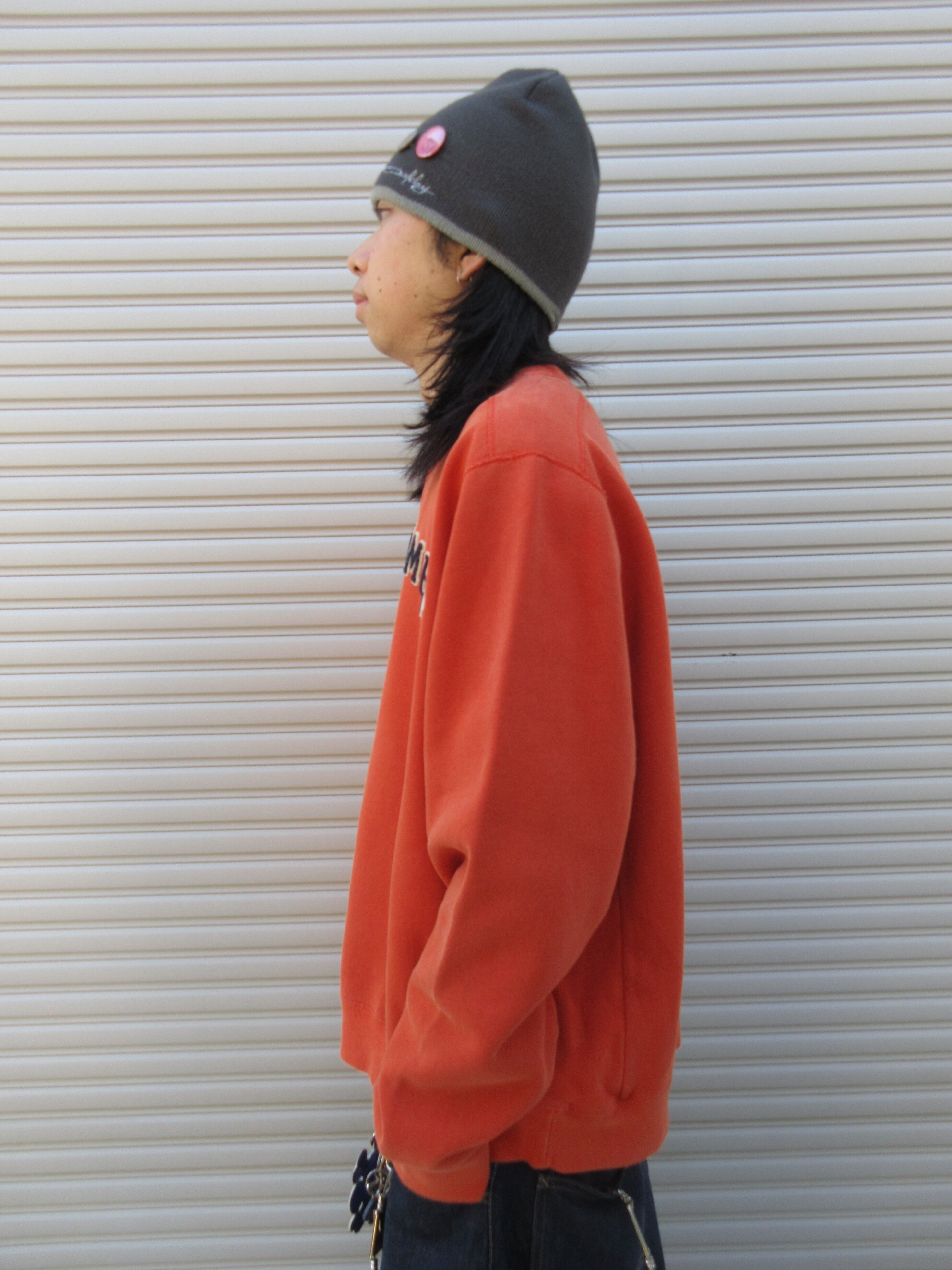 目の覚めるようなオレンジボディに映えるアバクロの大きなロゴが可愛すぎるスウェット。1枚ではもちろん、インナーとしてチラ見せしてもちゃんと存在感があり、サイズ感も最高です。