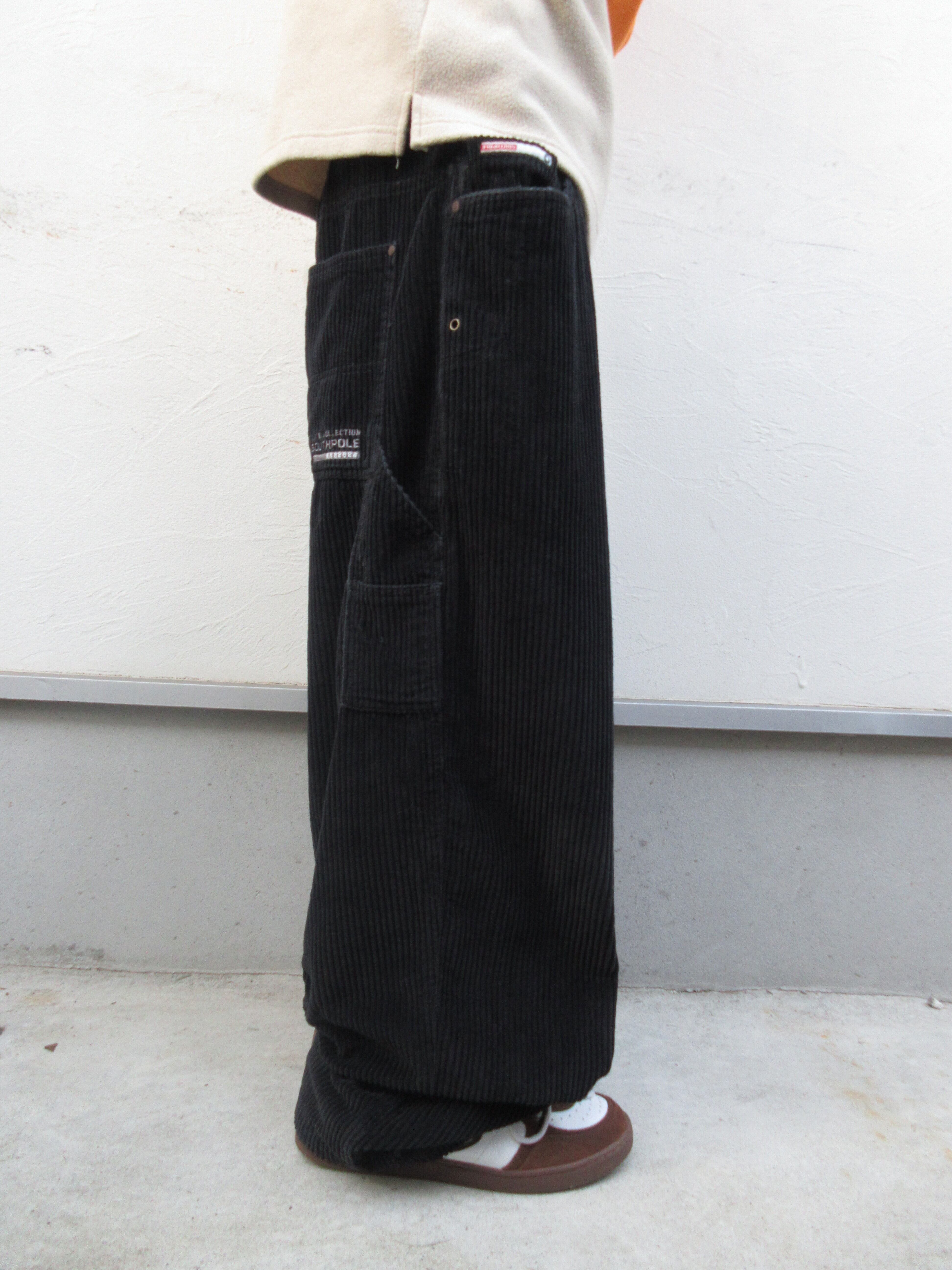 僕ら的にはかなり珍しいコーデュロイパンツ。とはいえSOUTHPOLEのありがたい設計により超絶バギー×ワイドな造り、しかもブラックで使いやすさしかない最強の1本に。総丈も長めで足元にしっかり溜まってくれるのも最高です。